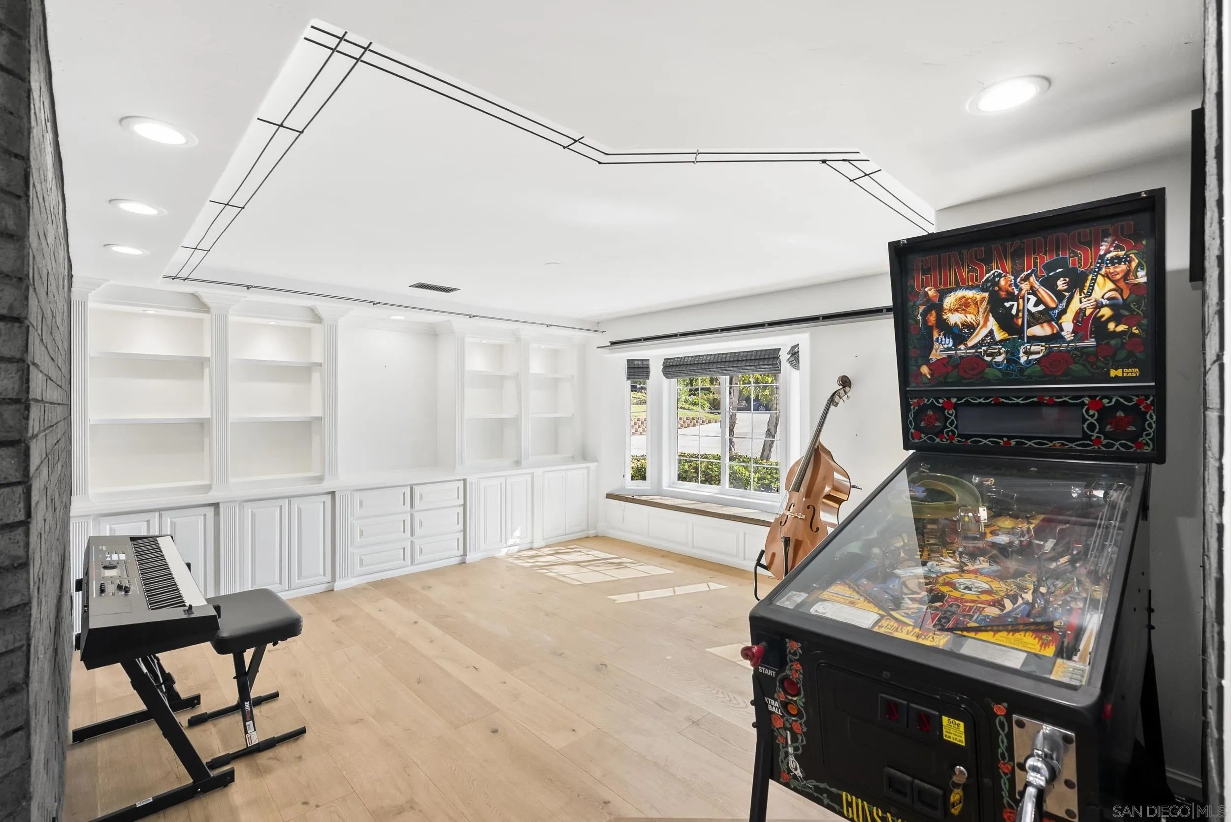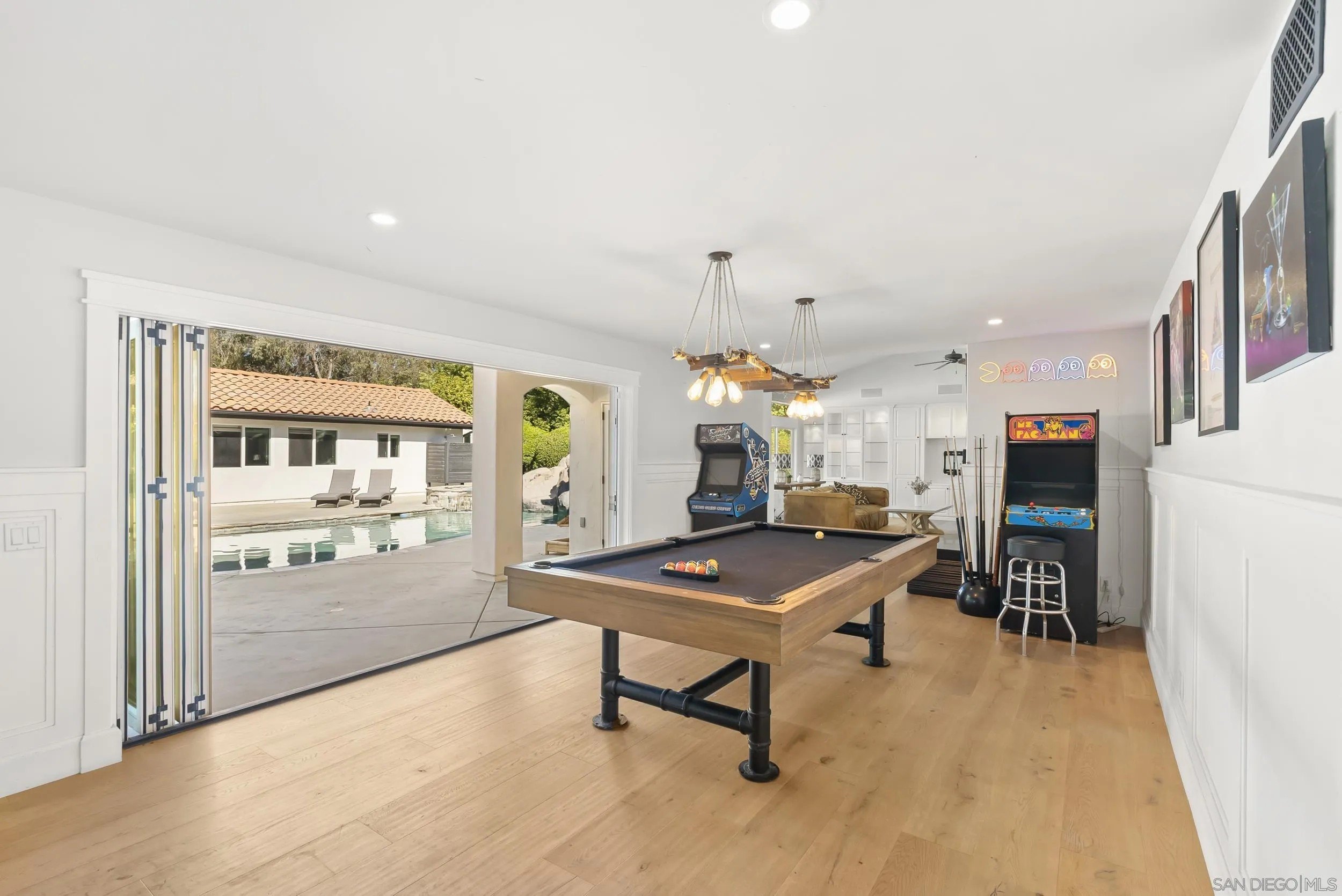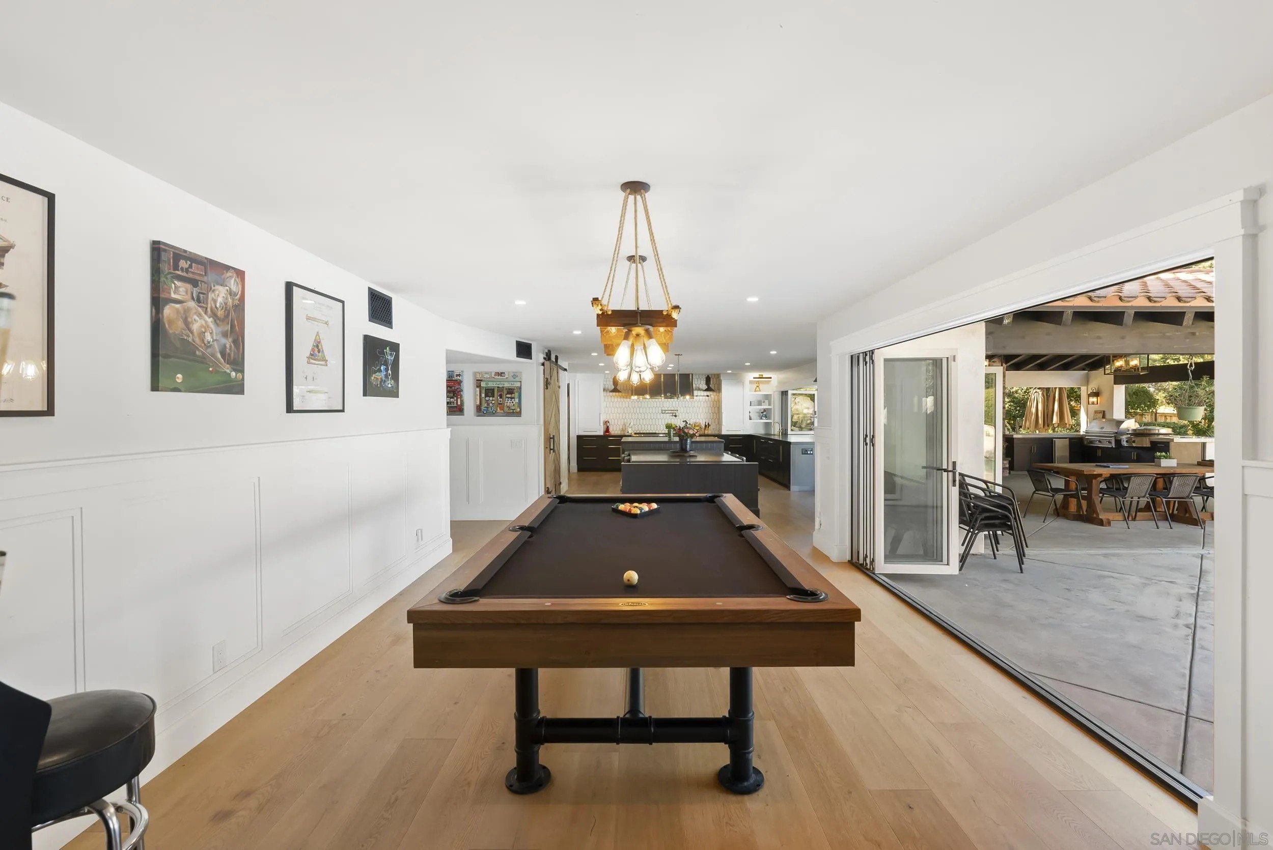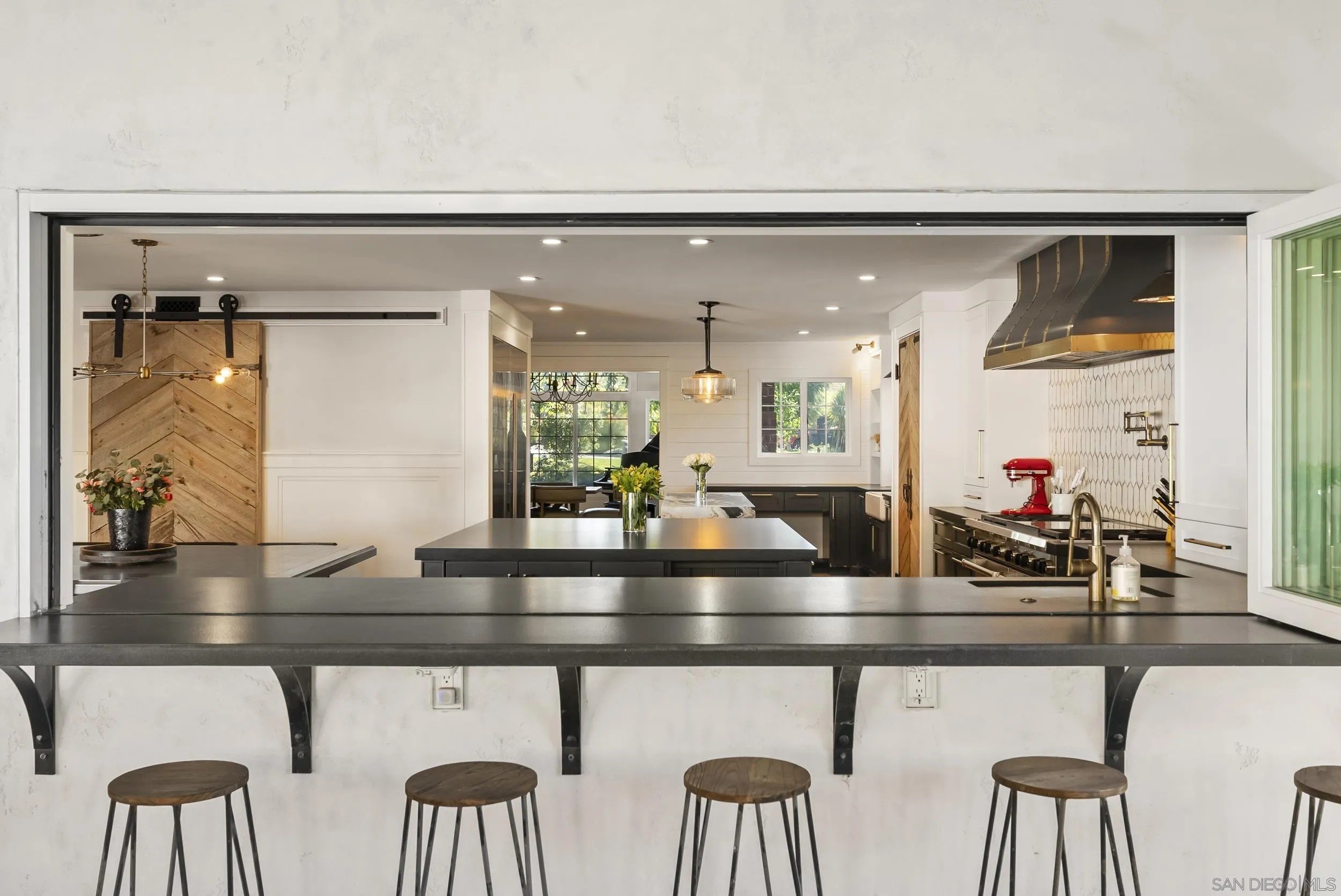 Welcome to one of Poway's most distinguished estates, quietly set at the end of a cul-de-sac in the prestigious gated community of The Grove. Blending timeless design with exceptional craftsmanship, this residence offers more than 5,300 sq. ft. of elegant living with 4 bedrooms plus an office / den, grand vaulted ceilings, French doors, custom millwork, and light-filled living spaces. The gourmet kitchen is designed for everyday luxury with custom cabinetry, a spacious center island, premium appliances, ice machine, built-in espresso machine, wine fridge, pot filler, and walk-in pantry. Formal living and dining rooms feature a marble fireplace and crown molding, while the family room offers built-ins and views of the resort-style backyard. The primary suite includes dual walk-in closets and a spa-inspired bath with soaking tub and oversized shower. Outdoors, enjoy a true Southern California retreat with a PebbleTec pool & spa with slide and waterfall, pool bathroom, outdoor shower, and a fully equipped outdoor kitchen with bar seating, beverage fridges, ice maker, grill station, and sink. A lighted tennis/basketball court, batting area, play space, garden beds, fruit trees, and RV/boat parking complete the grounds. Additional highlights include owned solar and a private irrigation well. A detached guest house offers a living room, kitchen, bedroom, and laundry, ideal for guests or multigenerational living. Located across from Poway High in a private, gated enclave, this estate delivers luxury, convenience, and a rare lifestyle opportunity.