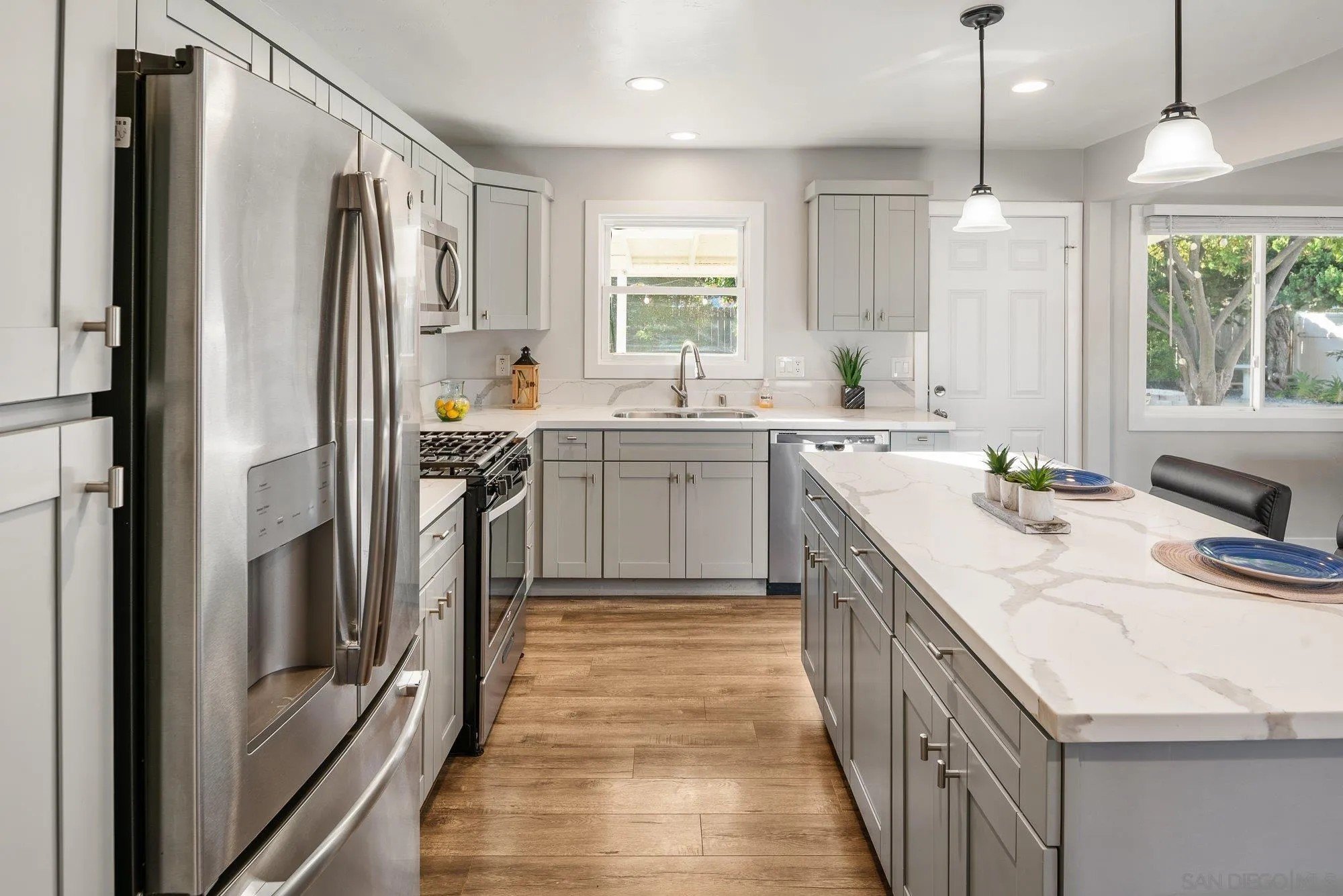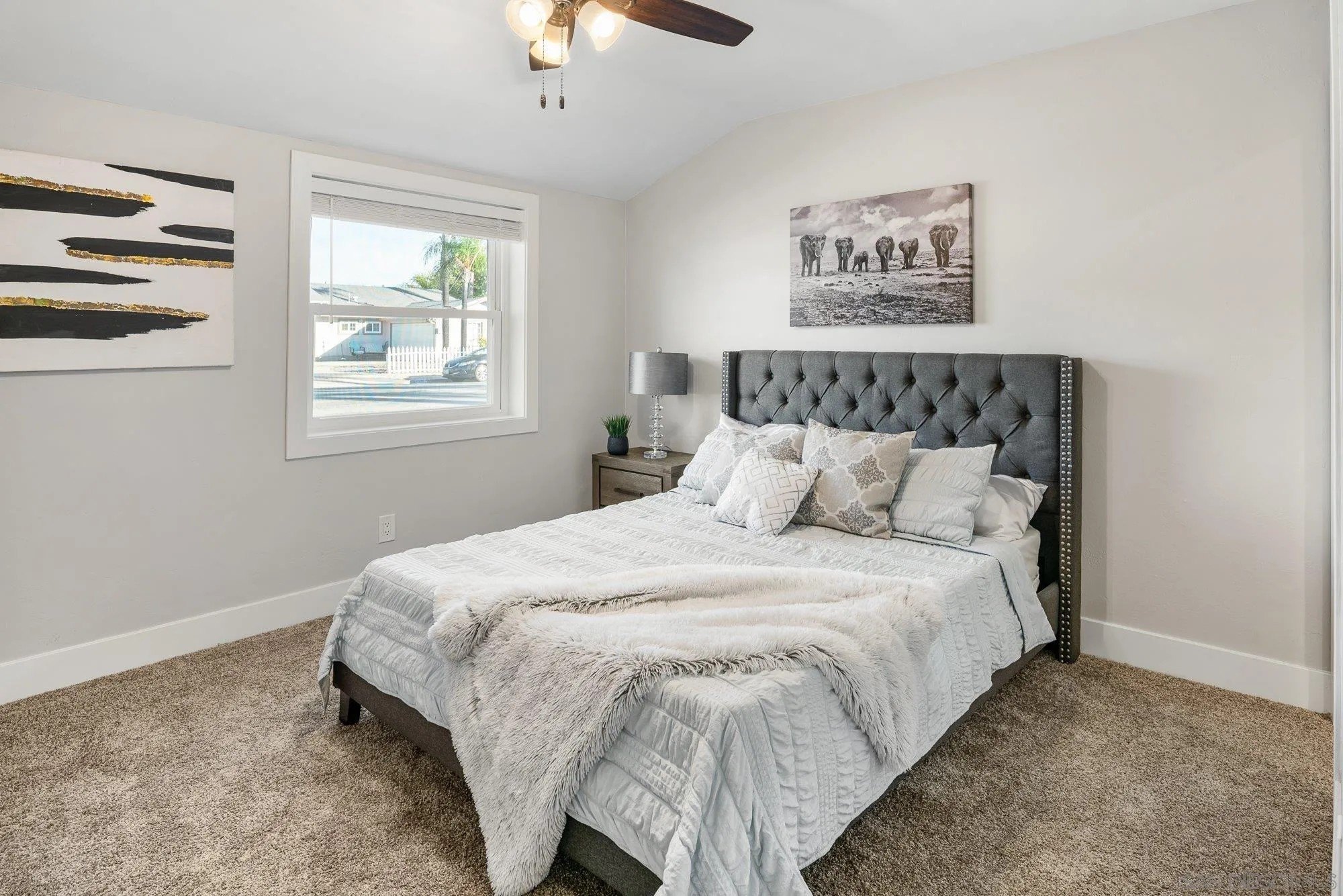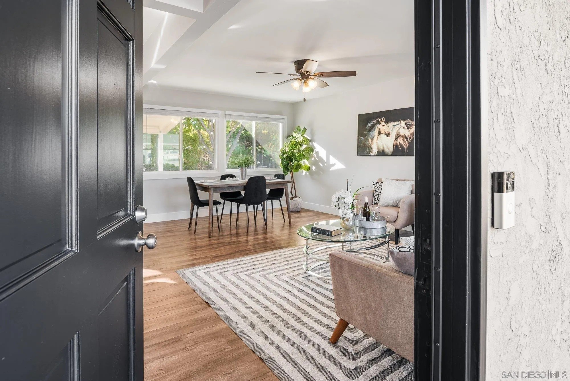 Welcome to this beautiful, move-in-ready 3-bedroom, 2-bath home. Step inside to a bright, open-concept living area that flows seamlessly into the updated kitchen featuring quartz countertops, pendant lighting, and stainless-steel appliances. The interior has been freshly painted throughout and includes carpet in the bedrooms along with modern, tastefully upgraded bathrooms. Enjoy the convenience of in-home laundry and a 2 car garage. The spacious backyard offers the perfect setting for relaxation or entertaining with a fire pit, covered patio, mature fruit trees, and low-maintenance landscaping in both the front and back yards. Centrally located near Kennedy Park, Montgomery Middle School, and Granite Hills High School, this home provides easy access to tennis courts, racquetball, and a skate park-ideal for an active lifestyle. This home combines comfort, functionality, and modern style-ready for its new owners to move right in!