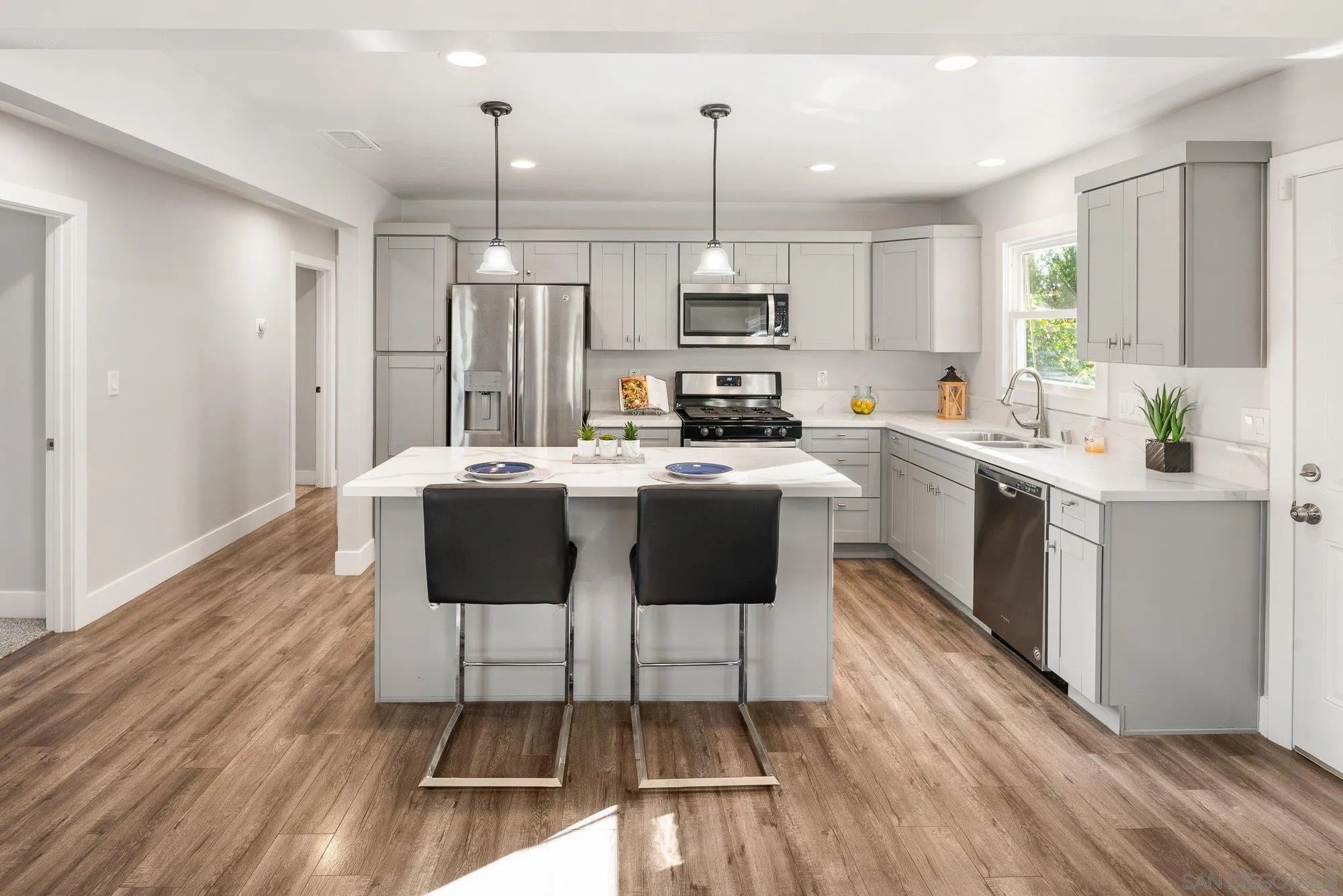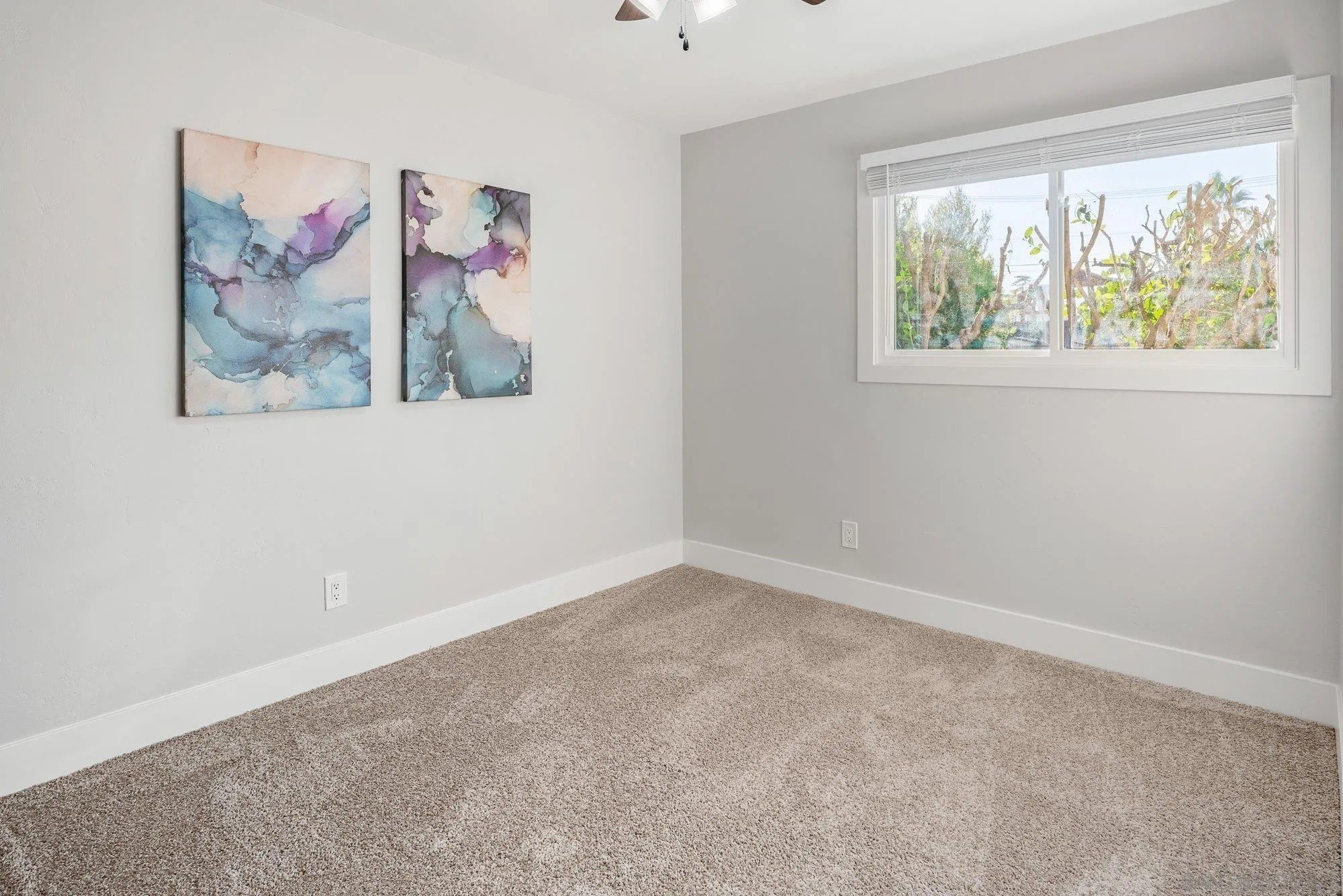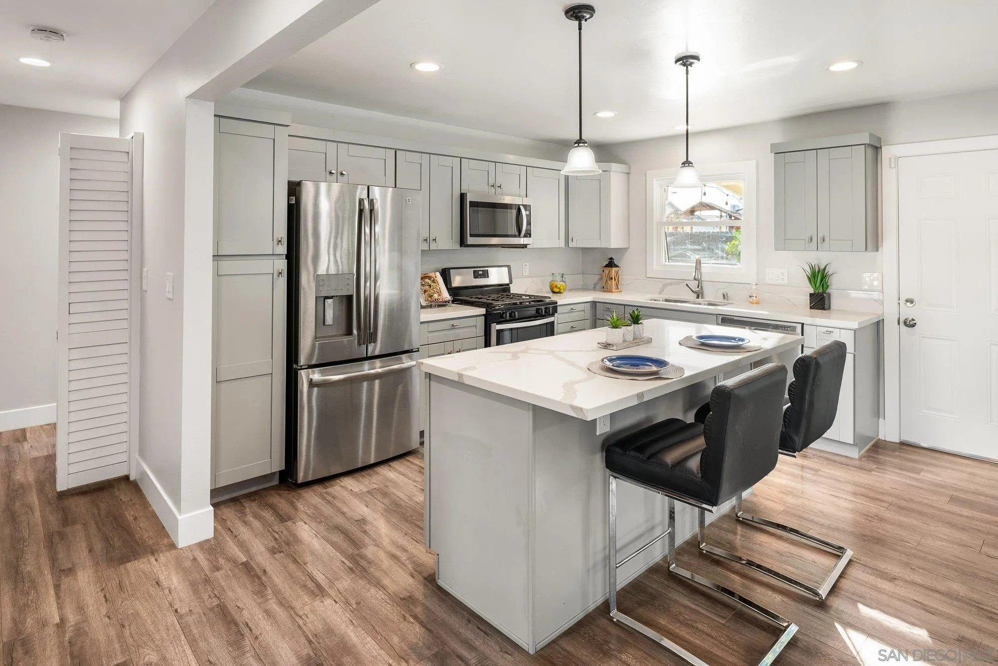 Welcome to this beautiful, move-in-ready 3-bedroom, 2-bath home. Step inside to a bright, open-concept living area that flows seamlessly into the updated kitchen featuring quartz countertops, pendant lighting, and stainless-steel appliances. The interior has been freshly painted throughout and includes carpet in the bedrooms along with modern, tastefully upgraded bathrooms. Enjoy the convenience of in-home laundry and a 2 car garage. The spacious backyard offers the perfect setting for relaxation or entertaining with a fire pit, covered patio, mature fruit trees, and low-maintenance landscaping in both the front and back yards. Centrally located near Kennedy Park, Montgomery Middle School, and Granite Hills High School, this home provides easy access to tennis courts, racquetball, and a skate park-ideal for an active lifestyle. This home combines comfort, functionality, and modern style-ready for its new owners to move right in!