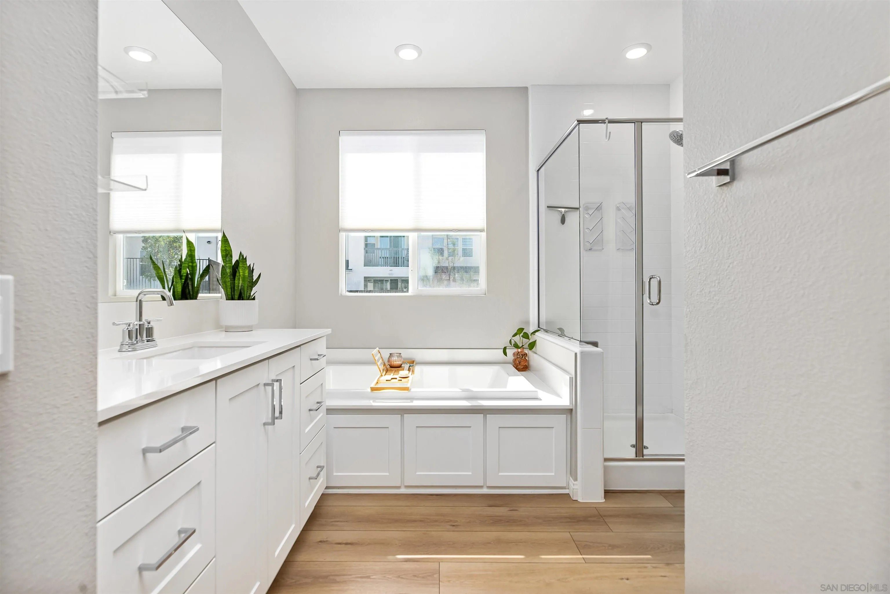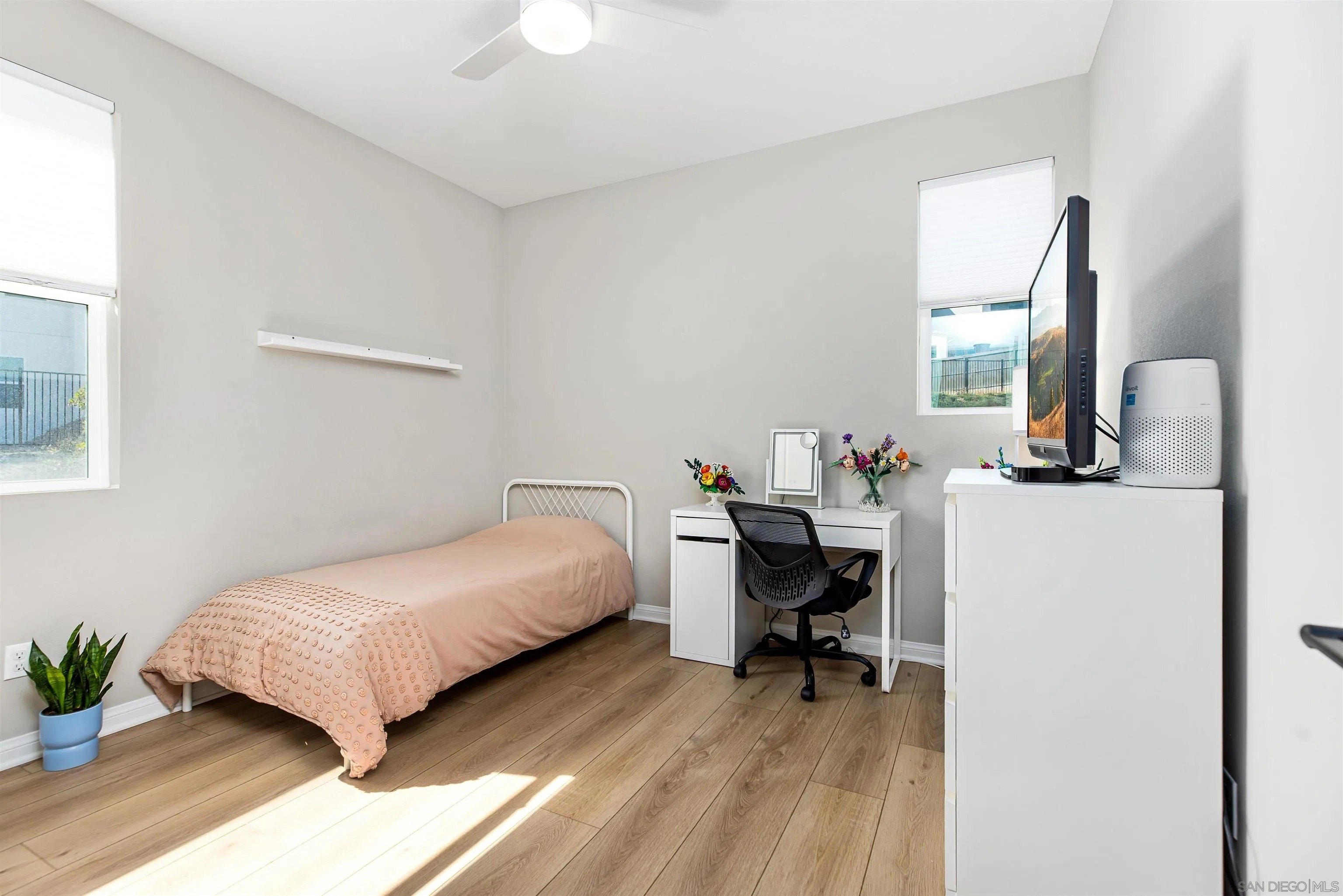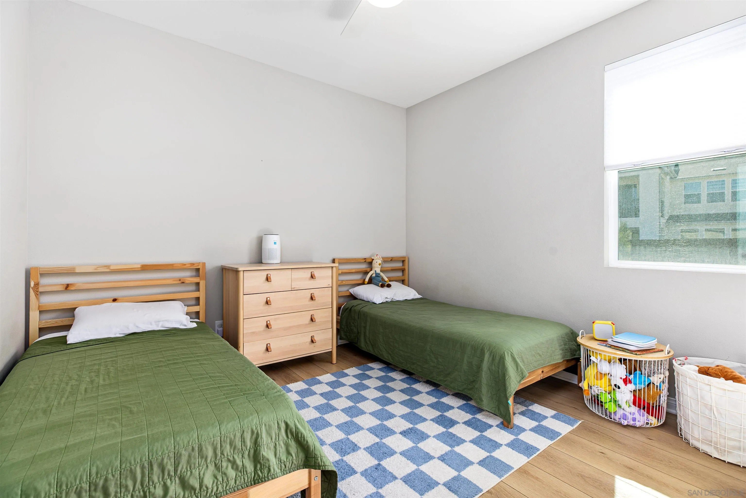 Welcome to 1776 Whitmore Loop - a beautifully upgraded 4-bedroom, 3-bath home located in the vibrant master-planned community of Cota Vera. This residence stands out for its premium corner lot and expansive yard, offering far more outdoor space than most homes in the neighborhood. The open-concept living area flows seamlessly into a modern kitchen with quartz countertops and upgraded flooring throughout. A downstairs bedroom adds flexibility for guests or a home office, while sliding doors from the main living space open directly to a hardscaped patio, perfect for outdoor dining and relaxation. Upstairs, a versatile loft complements the spacious primary suite with its spa-inspired bath, plus two additional bedrooms. Additional features include a paid off solar system, overhead garage storage racks providing extra storage, a reverse osmosis system for drinking water, Culligan whole home water filtration/softener system and 3 guest parking spaces right outside the home - other homes in the neighborhood do not have this. Enjoy the newly opened Lido Swim Club featuring a resort-style pool, jacuzzi, kiddie pool, and gathering spaces just a short stroll away. Ideally located near parks, schools, shopping, and Otay Lakes, this home blends modern comfort with the best of Chula Vista living.