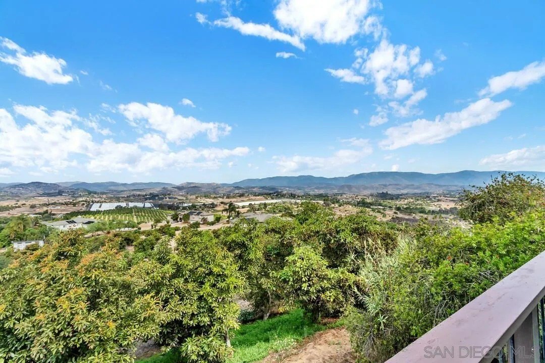 Sunset or Sunrise? Why Choose-Enjoy Both! A rare opportunity to own 5 acres with stunning 360 degrees views in west Valley Center-just minutes east of I-15. This expansive 3,177 sq. ft. custom home features 5 bedrooms, 3 baths, and an attached 3-car garage. Move in now and remodel over time, or redesign to fit your vision-perhaps adding an ADU. Highlights include built-in cabinetry, walk-in closets & pantry, and charming wood-beam ceilings. Spacious patios capture breezes and panoramic views-even to the ocean on clear days. Additional features: ample parking for oversized vehicles, A70 zoning, city water, septic system serviced in 2020, newer roof (approx. 6 years old), income-producing avocado grove, and an owned propane tank (mostly full). Make this one-of-a-kind property your dream home!
