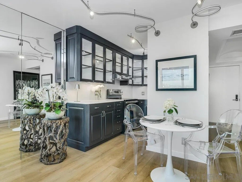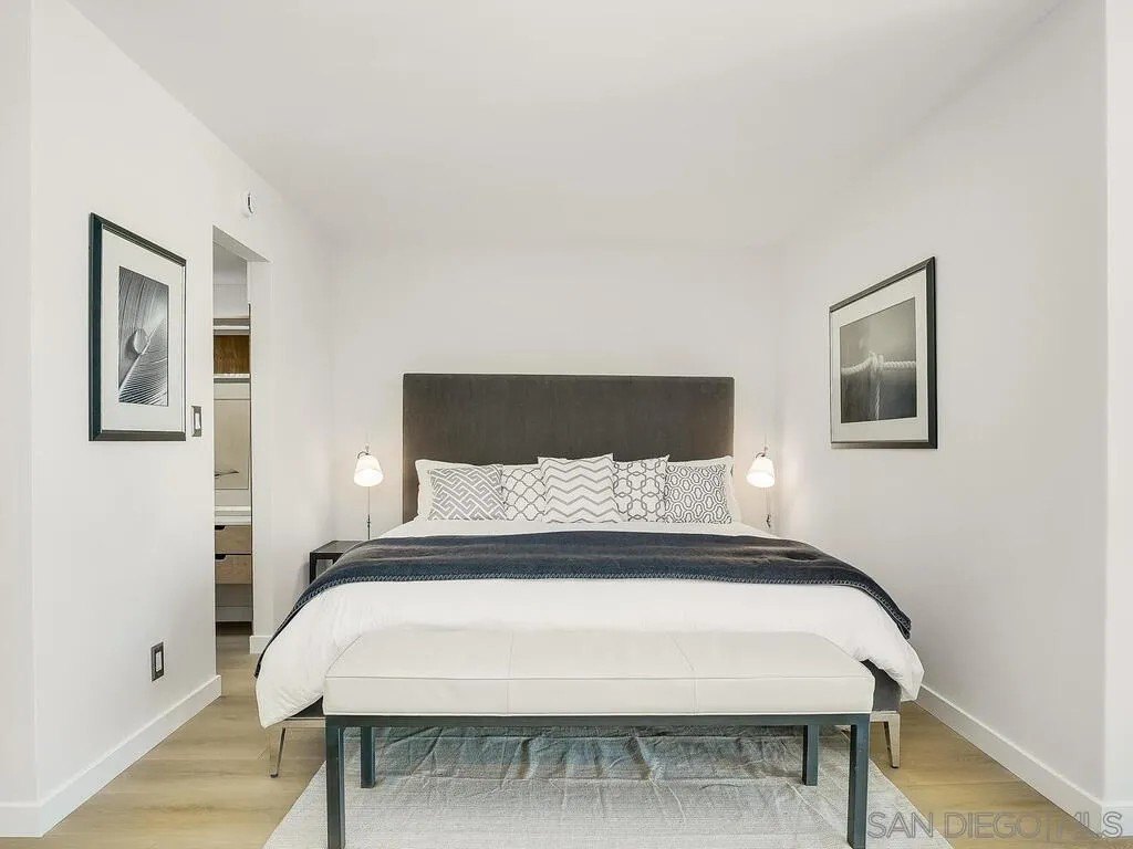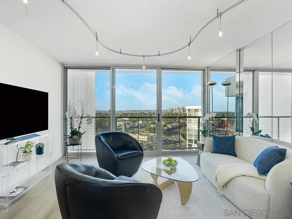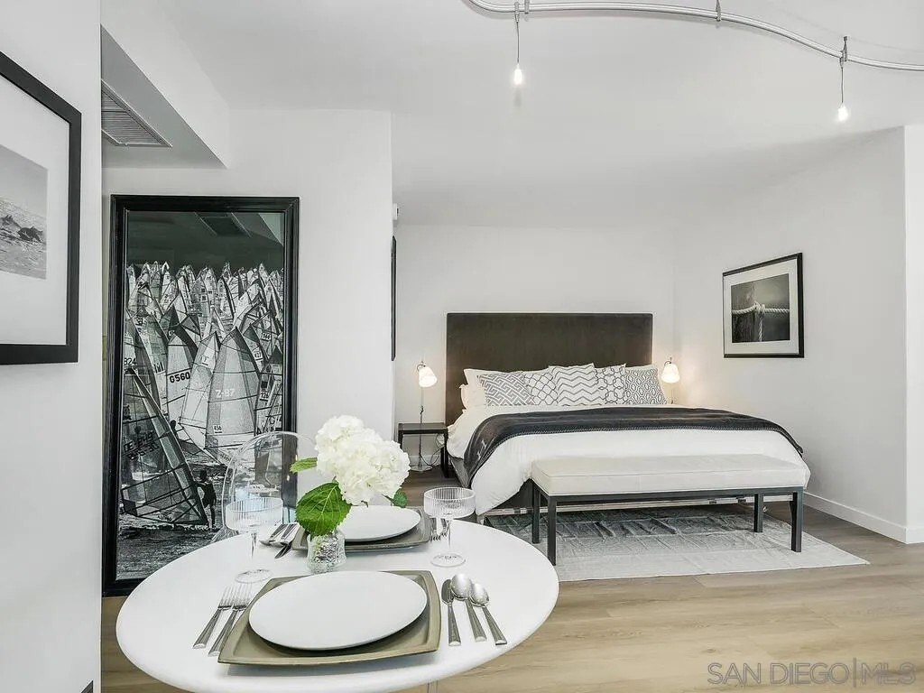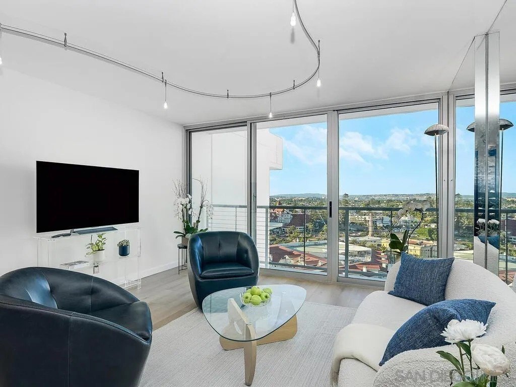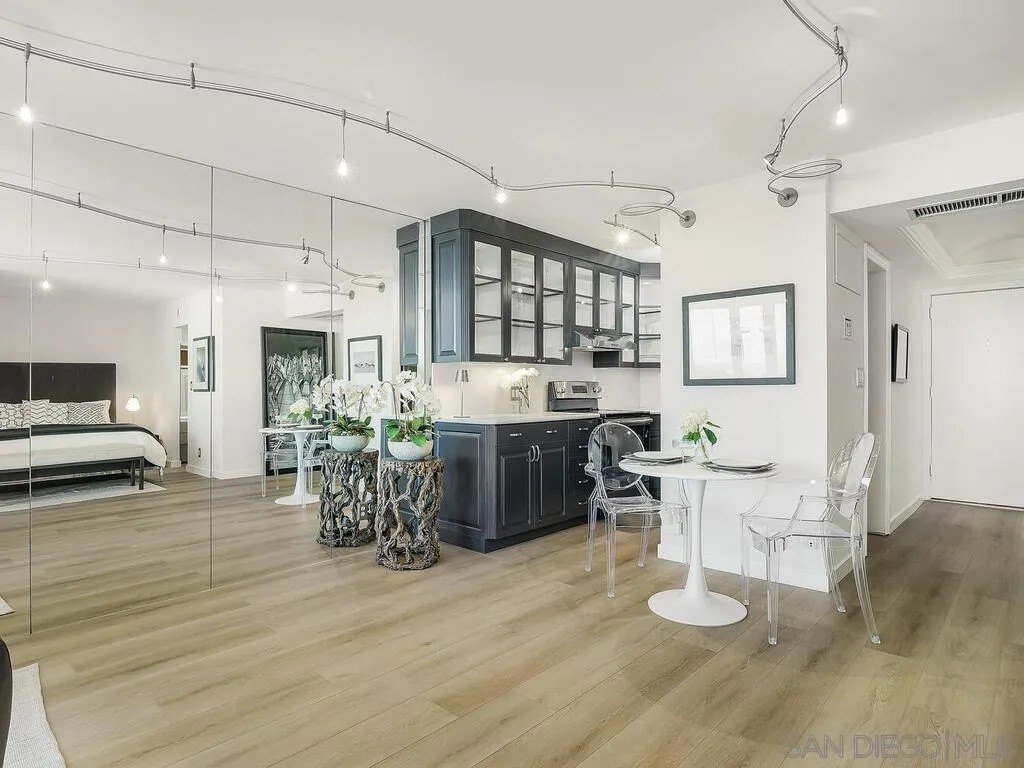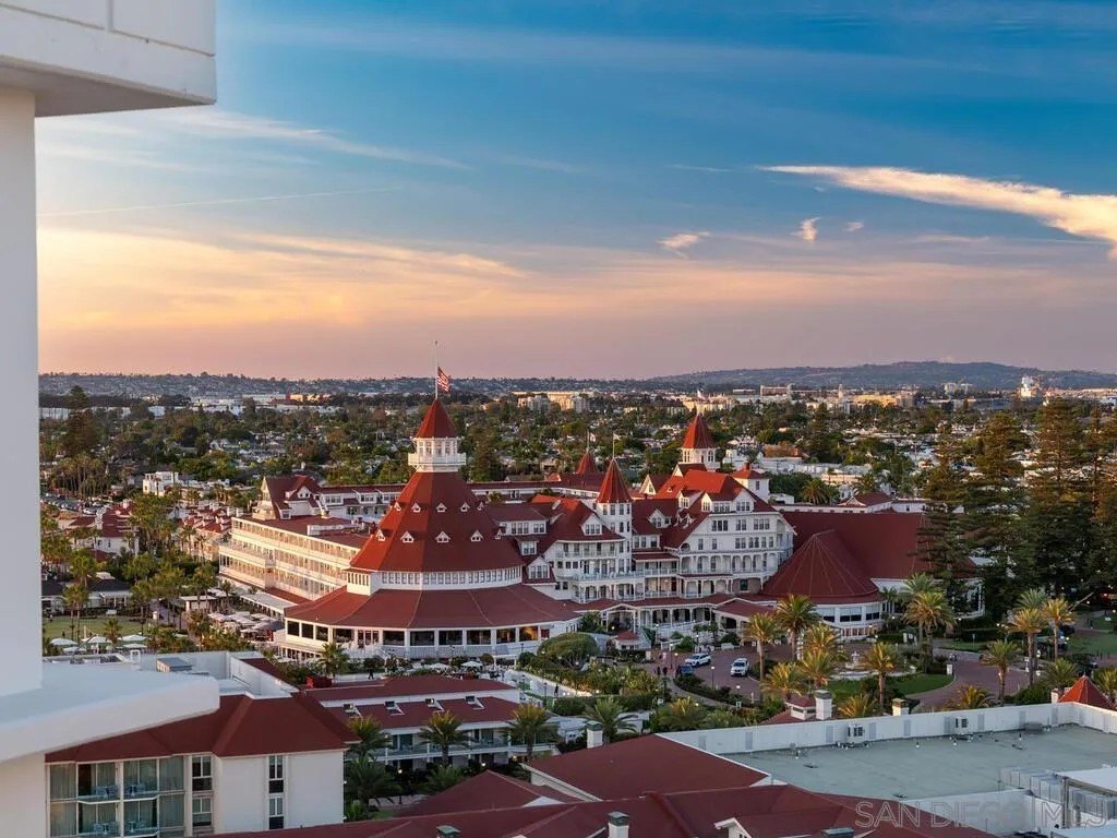 Penthouse Living with Iconic Hotel del Coronado & City Views You'll feel like you're on top of the world in this penthouse-level studio at Coronado Shores, perched high on the 16th floor with breathtaking views of the San Diego skyline and the world-famous Hotel del Coronado. By day, the historic red rooftops of the Del anchor your view; by night, the twinkling city skyline creates a dramatic backdrop. The residence has just been refreshed with new paint, luxury vinyl plank flooring, and updated lighting - creating a brighter, more inviting atmosphere. Completed remodel plans and a full stack analysis for washer/dryer installation are included, saving months of planning and giving the next owner a clear path to transform this space into a custom retreat. Floor-to-ceiling windows flood the home with natural light, while the open layout offers flexibility for full-time living, a second home, or an investment. As part of Coronado Shores, residents enjoy resort-style amenities: oceanfront pools, tennis, pickleball, a fitness center, and the Beach Club - featuring live music, line dancing, bingo, and a vibrant calendar of activities. All of this, just steps from the sand and a short stroll to the Del. An extraordinary opportunity to own a penthouse with postcard-perfect views of the city and the iconic Hotel del Coronado.