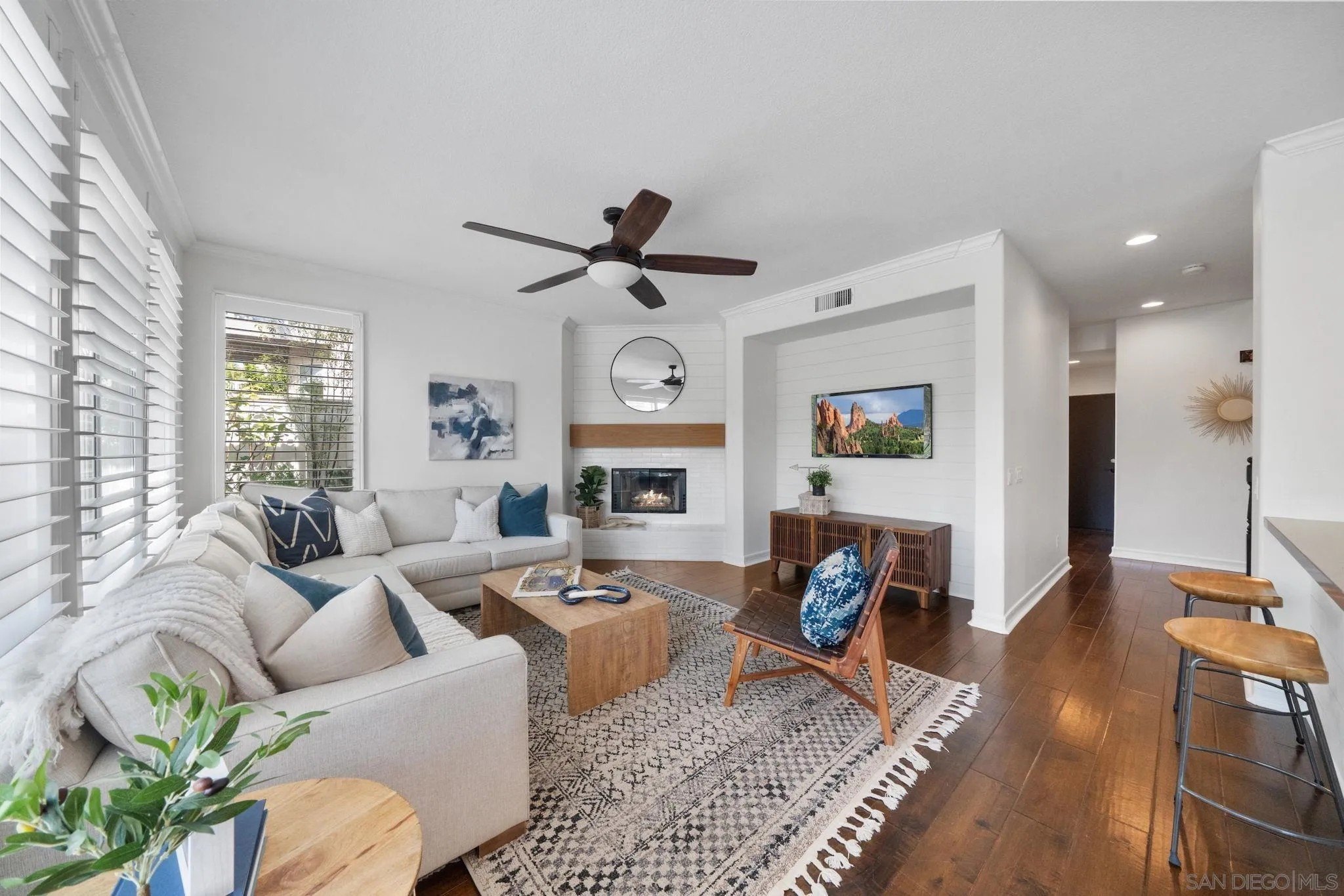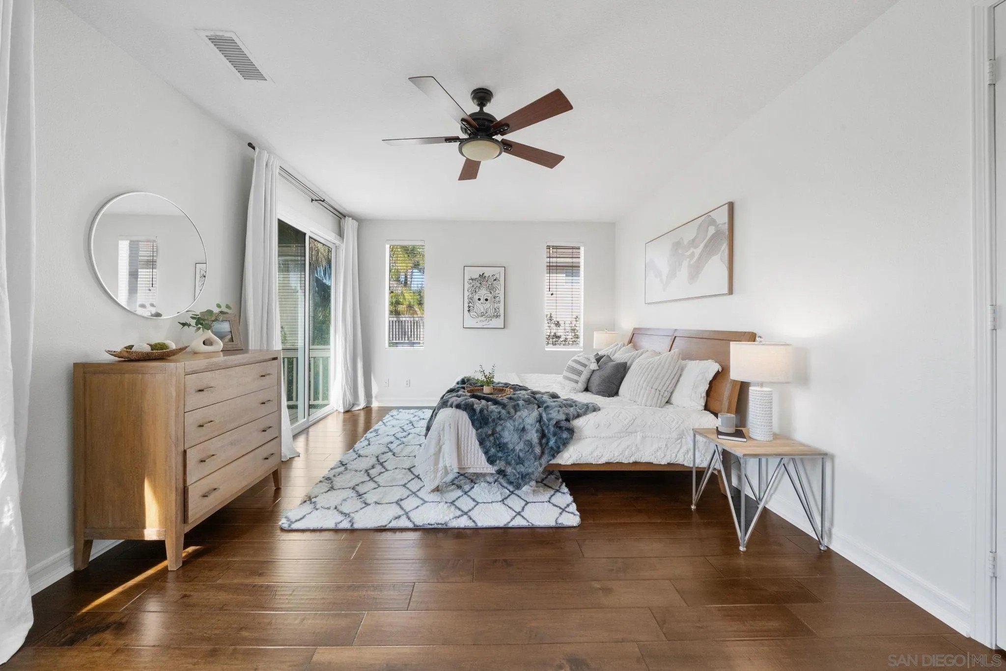 Welcome to 2364 Summerwind Place, a stunning 5-bedroom, 3-bath home nestled in Carlsbad's highly sought-after Hidden Ridge neighborhood. This beautifully maintained residence blends timeless elegance with modern upgrades, offering an open and inviting floor plan perfect for both entertaining and everyday living. Step inside to find newly installed hardwood floors, plantation shutters, and abundant natural light throughout. The spacious kitchen features sleek quartz countertops, white cabinetry, a designer tile backsplash, and stainless steel appliances, all opening to the cozy family room for seamless indoor-outdoor flow. Enjoy the convenience of a full bedroom and bath on the main floor, ideal for guests or a home office. Upstairs, the large primary suite boasts a private balcony with peaceful views and a luxuriously remodeled walk-in shower. A spacious loft provides the perfect bonus area for a playroom, media space, or gym. The tranquil backyard offers the perfect retreat with lush landscaping and serene views-ideal for relaxing or entertaining. Residents of Hidden Ridge enjoy access to scenic walking trails, grassy open spaces, and a community sand volleyball court, plus HOA amenities including RV and boat parking. Located just minutes from Carlsbad Village, beaches, Legoland, and the Carlsbad Flower Fields, this home also feeds into top-rated Carlsbad schools-Kelly Elementary, Valley Middle, and Carlsbad or Sage Creek High. Experience the best of coastal living in one of Carlsbad's most desirable communities!