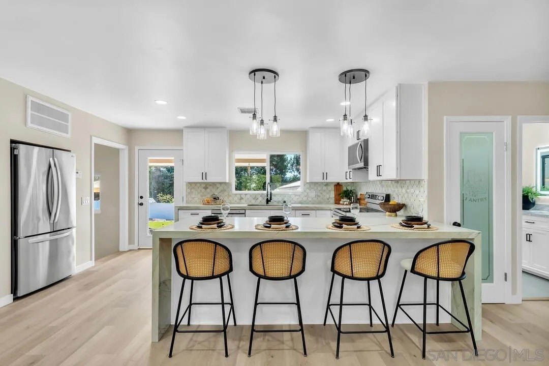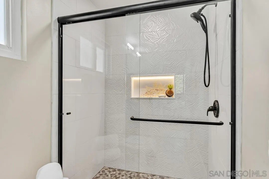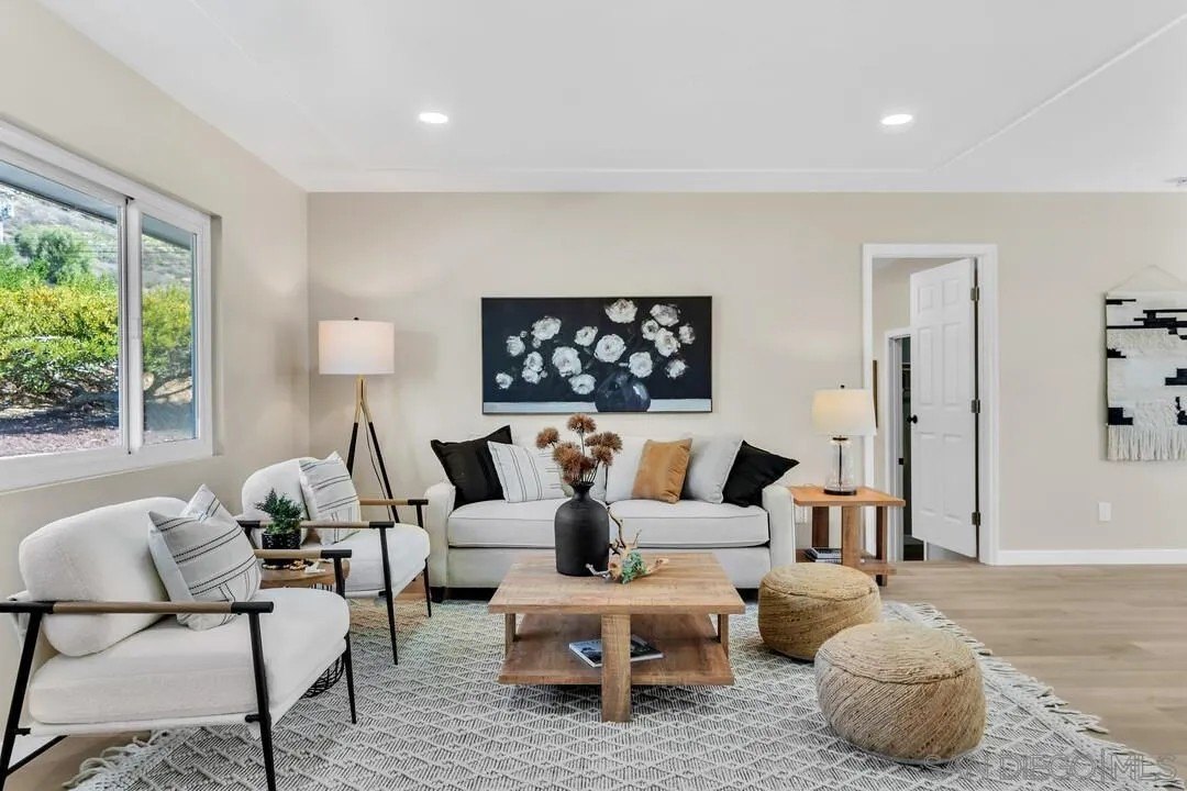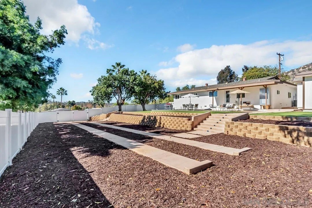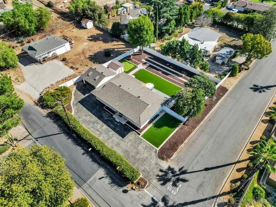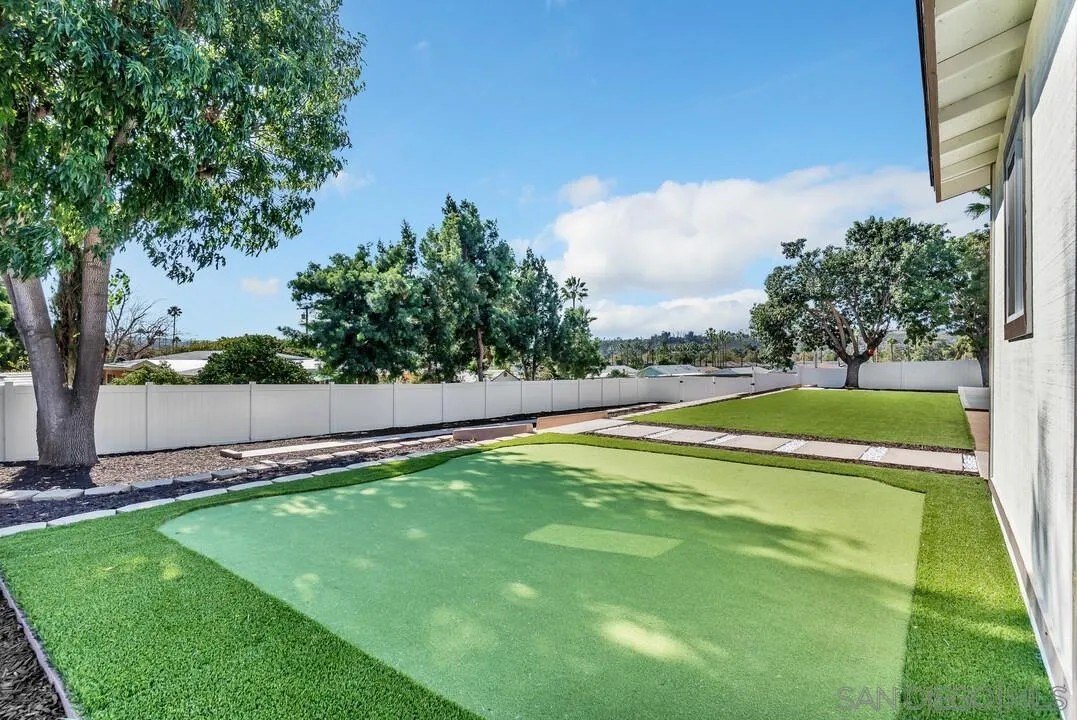 Welcome to your new home in the heart of Poway! Drive down the expansive private driveway to this stunning single-story, fully remodeled 3-bedroom, 2-bathroom residence. Situated on a spacious 13,000+ sq. ft. corner lot in one of Poway's most desirable neighborhoods, this home offers both privacy and modern luxury. Step inside to discover a bright, open floor plan featuring a brand-new kitchen with LG stainless steel appliances, quartzite countertops, a waterfall island, and a marble backsplash. Every detail has been thoughtfully updated with new flooring, custom cabinetry, and contemporary light fixtures throughout. Enjoy the perfect indoor-outdoor lifestyle with a large backyard designed for entertaining, complete with Trex-style decking, vinyl fencing, artificial turf, and your very own putting green. Expansive level yard space presents possible opportunity to add an ADU! A detached office/flex space offers endless possibilities for a home office, gym or studio. This property also includes a gated entry with ample parking for your RV, trailer, or boat, plus a 2-car detached garage for extra storage and security. Located within walking distance to Old Poway Park, weekly famous farmer's market, local restaurants, and shops, you'll love the convenience and small-town charm of this sought after community. Plus, it's in the top-rated Poway Unified School District-one of the best in San Diego County!