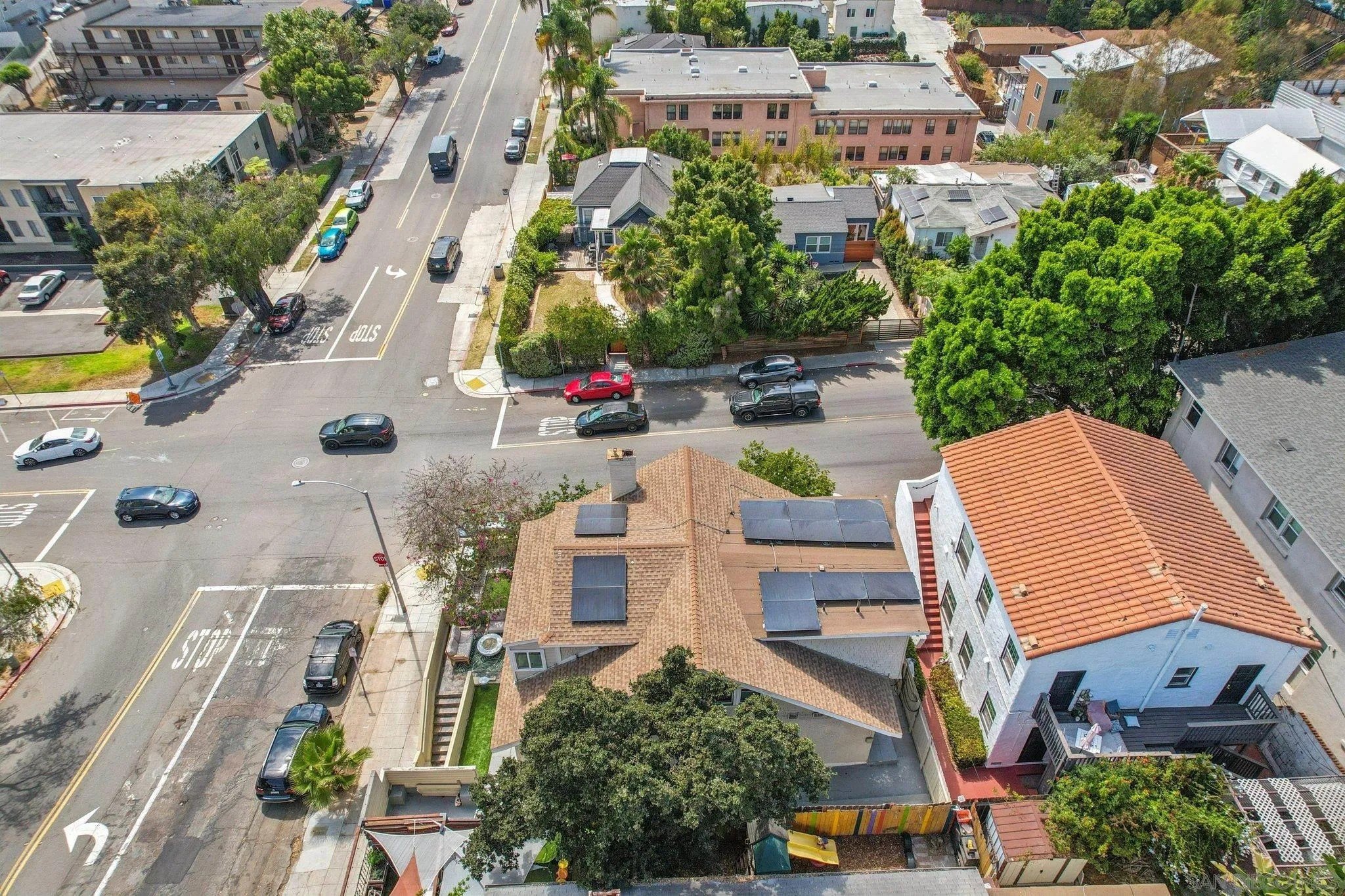 Corner lot home in one of San Diego's most desirable neighborhoods. This 1,884 square foot residence offers refined living with strong investment potential. Golden Hill and South Park feature tree lined streets, boutique shops, eateries, and proximity to Balboa Park, Little Italy and downtown, with excellent freeway connections. Bright interiors include an updated kitchen with quartz surfaces and premium appliances, new flooring, and fresh paint. The primary suite offers stunning views, and a downstairs bedroom adds flexibility. A new roof (2022) and numerous upgrades enhance peace of mind.Generous yard, ample parking, R4 zoning, and successful Airbnb provide immediate income and future opportunity. Minutes from beaches and downtown, this home blends luxury, versatility, and long term value.