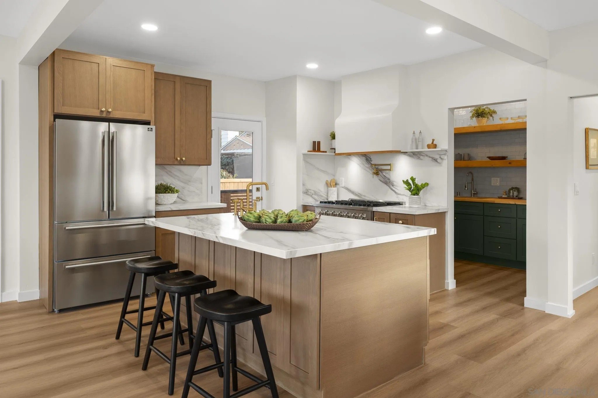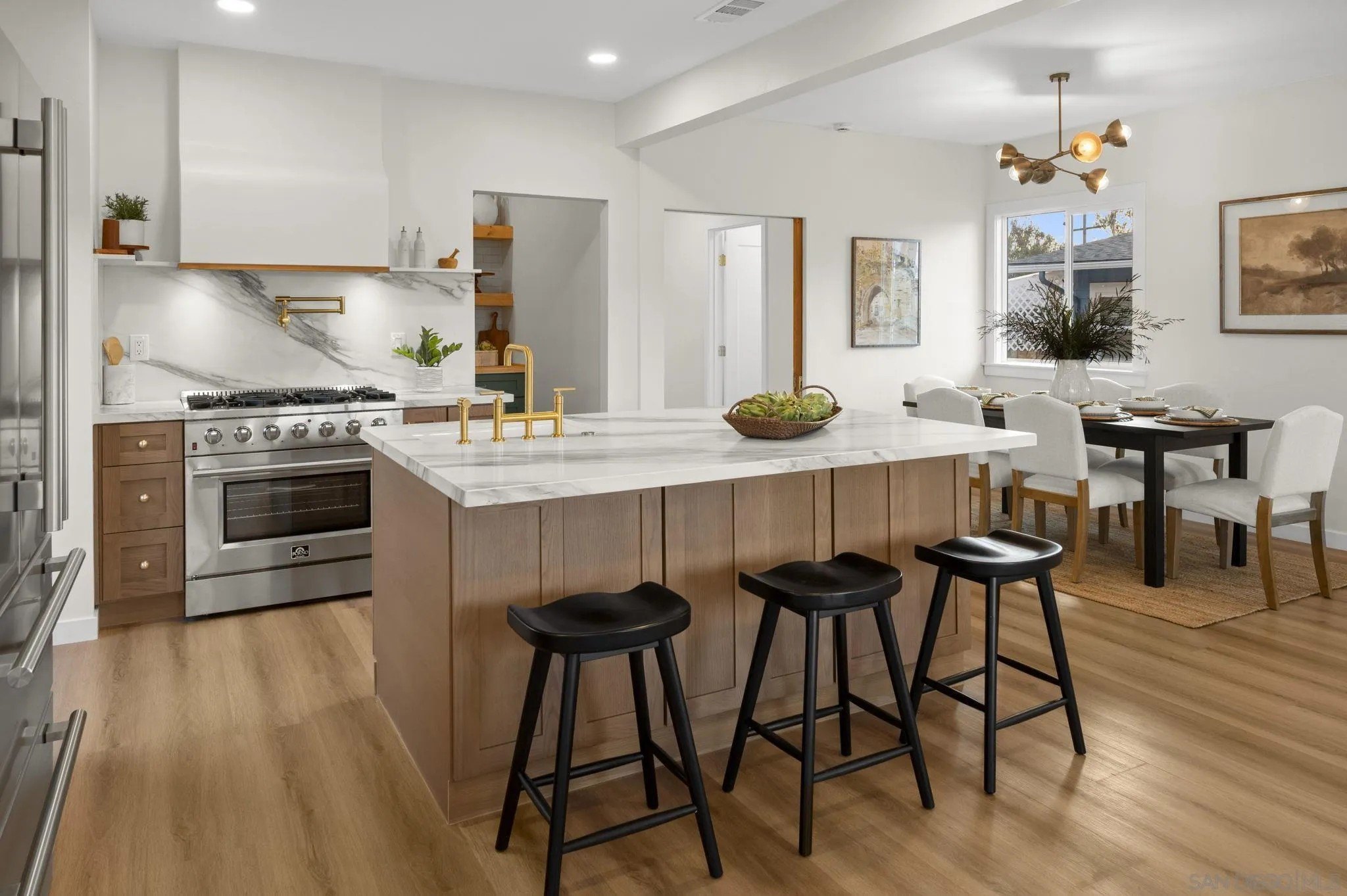 Fully remodeled Craftsman-style home in the heart of University Heights! Single-level with an open concept design that perfectly blends charm, character, and modern comfort. Tucked away on a peaceful cul-de-sac with a wide street, this home features inviting spaces and timeless details. The stunning kitchen boasts quartz countertops, pot filler, dual sinks, and a working butler's pantry, ideal for cooking, hosting, and everyday living. Cozy up by the original wood-burning fireplace or unwind in the spacious primary suite, complete with thoughtful designer touches. Every update has been made with care, including new HVAC, tankless water heater, plumbing, electrical, stucco, siding, and durable LVP flooring. Sitting on a large lot, the backyard offers fresh turf landscaping and new fencing, with turf leading to a detached garage featuring alley access for added convenience. Located just minutes from the freeway and a short stroll to Trader Joe's, local cafes, and Hillcrest's best restaurants, this home offers unbeatable convenience.