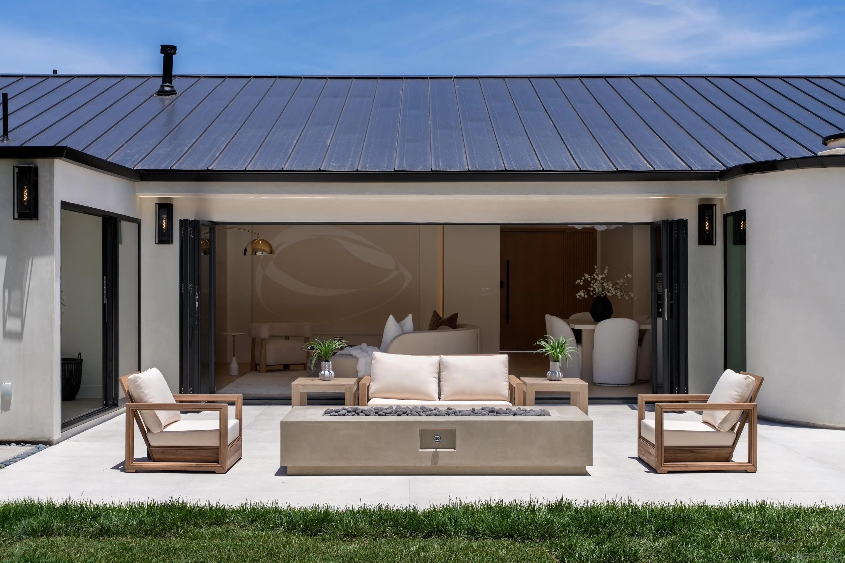 This one-of-a-kind, fully remodeled home offers a seamless blend of luxury, comfort, and indoor-outdoor living. The chef's kitchen is a true showstopper, featuring top-of-the-line Miele and Wolf appliances, including a 60-inch range, a statement kitchen island, and a spacious walk-in pantry. A custom-built breakfast nook and rich Duchateau Italian carpentry throughout the home bring warmth, elegance, and craftsmanship to every detail. The open-concept living space flows effortlessly to the outdoors through massive bifold doors, connecting to a spacious backyard with a custom outdoor BBQ and full privacy hedge trees that surround the property - offering peaceful seclusion. Inside, enjoy engineered hardwood floors and ceilings, LED accent lighting throughout, and a striking water vapor fireplace. The luxurious primary suite includes a huge walk-in closet, luxurious exterior bathtub, and thoughtfully curated finishes. The home is fully equipped with smart living features, including Sonos speakers, Lutron smart switches, and a layout ideal for entertaining. As an added touch of sophistication, the property showcases curated art installations by L&G Projects, available for purchase separately to complete the aesthetic vision. This is a rare opportunity to own a meticulously designed modern sanctuary that blends form, function, and beauty.