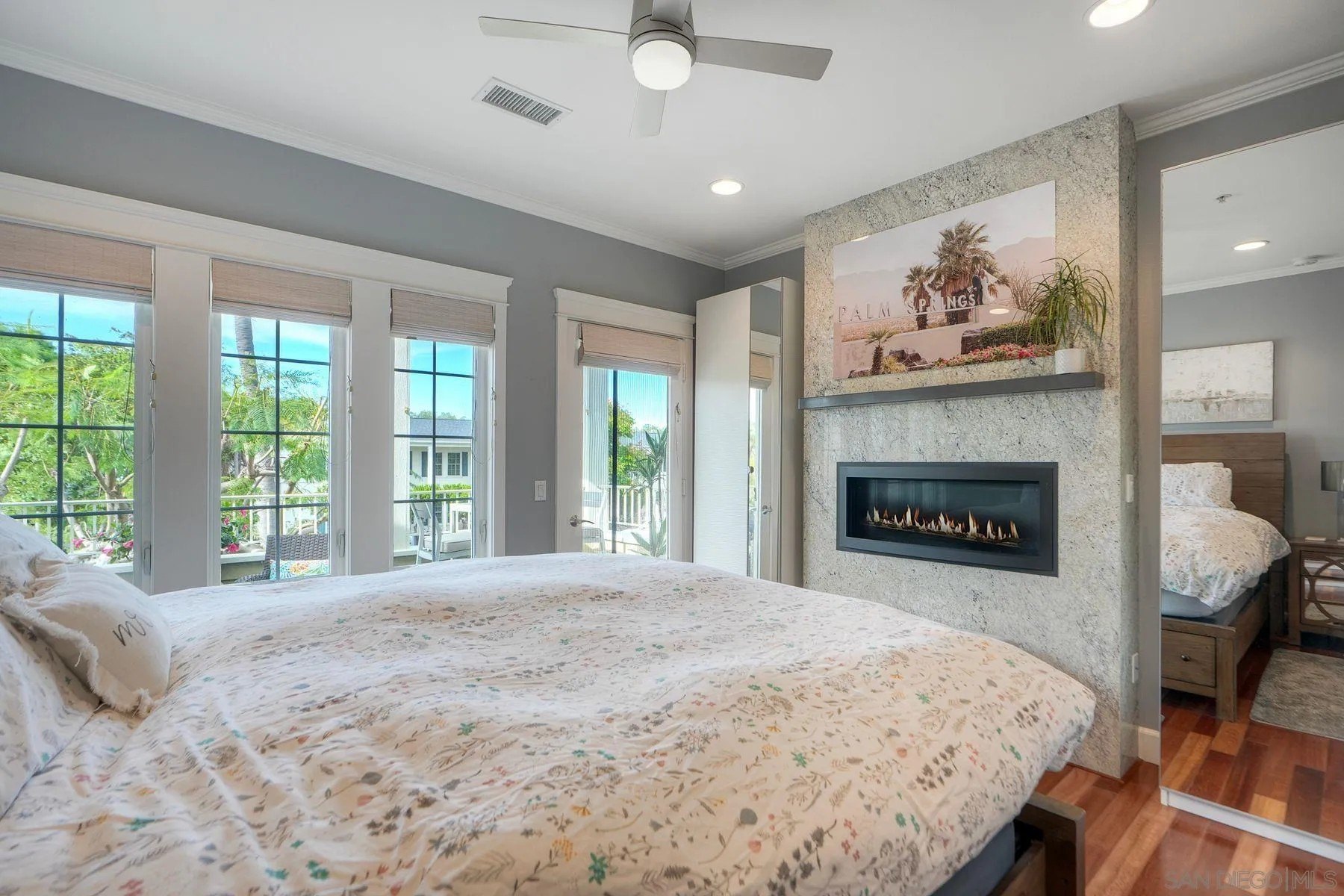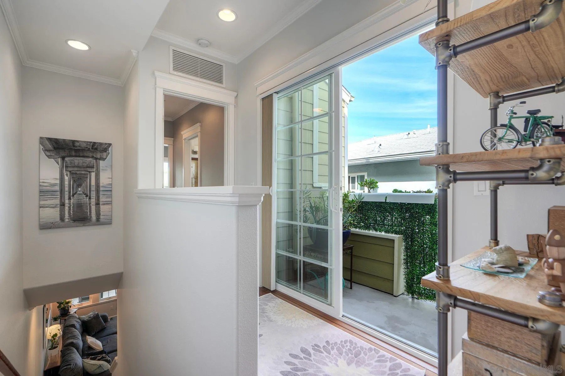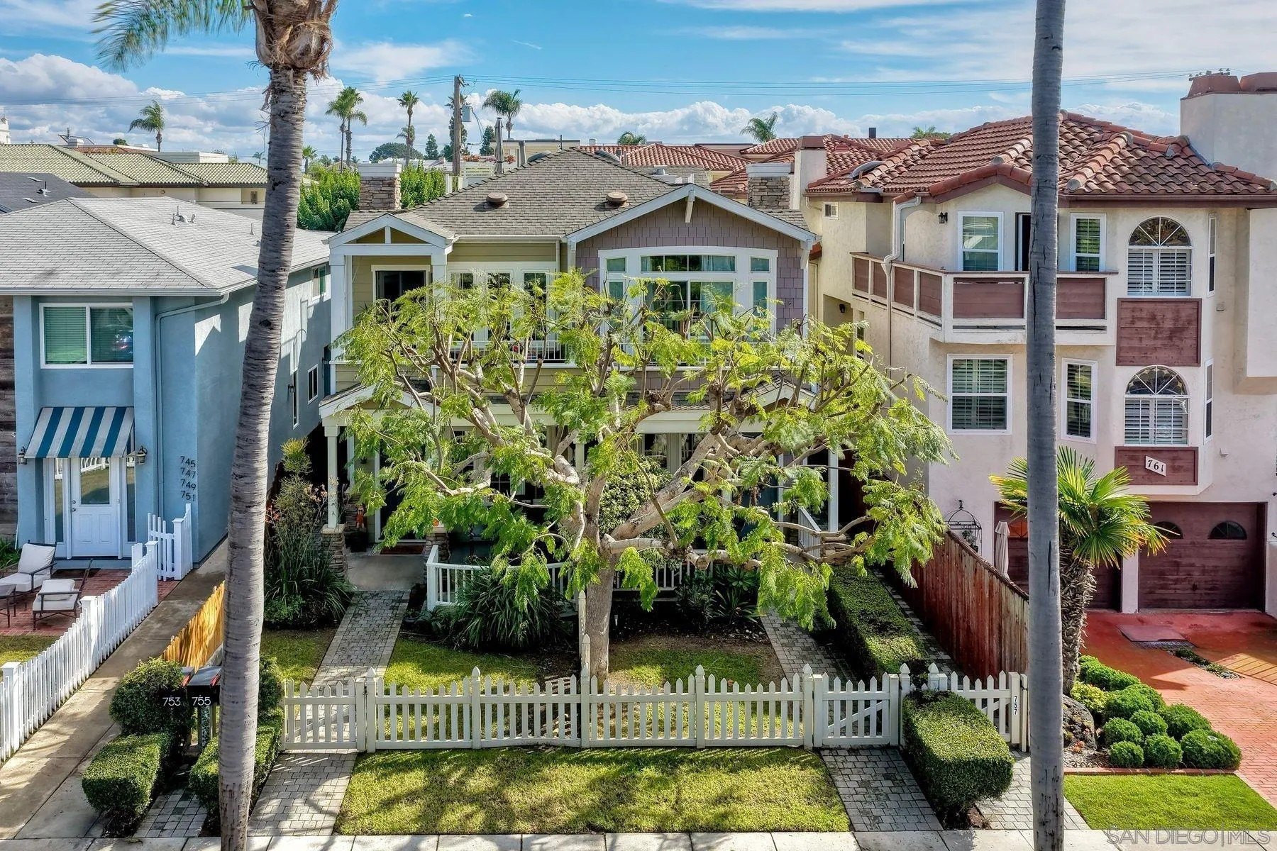 Quintessential Coronado Craftsman home. Located in the Village center, walkable to coffee, movie theater, gym, stores and parks. Classic details with all the modern comforts. Artfully designed with natural flow, natural materials and maximum beauty. Hardwood floors, solid wood doors, abundant storage that is maximized for simplicity and accessibility. Enter from a shaded veranda into an inviting living room with a fireplace. you are drawn through the open feel to the expanded and recently renovated kitchen. Stainless steel Bosch, Meile appliances are all placed for sufficient prep space and thoughtful storage options. The custom kitchen cupboard features are a must see! pullouts, an appliance garage, pull-out pantry, undersink storage, electric trash & recycling bin and more. Multiple patios and balconies - including one off the primary bedroom and one leading to the rooftop deck. The garage has multiple ways to use the tandem space; cars, gym, storage - all options are available. Each room has features that are both beautiful and useful. All windows, doors and sliders throughout are insulated and top quality.