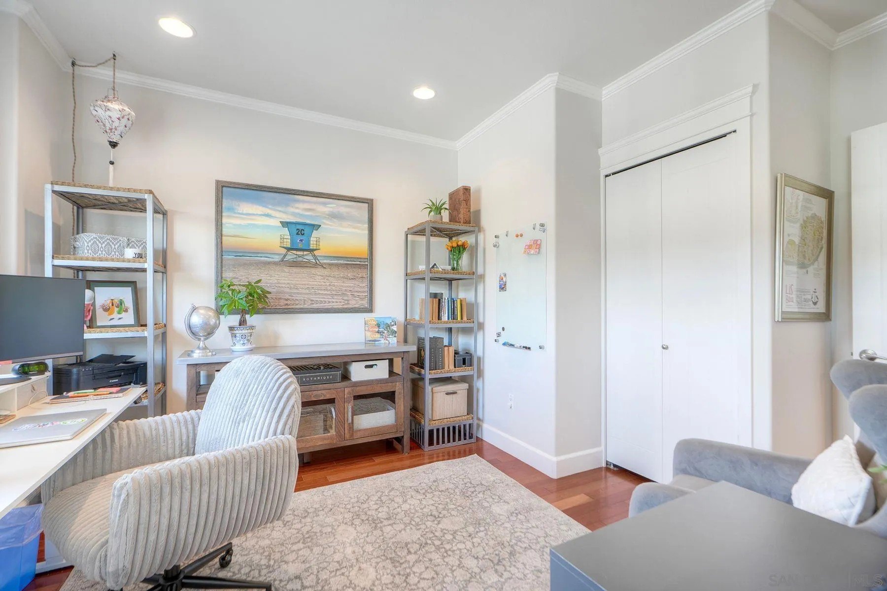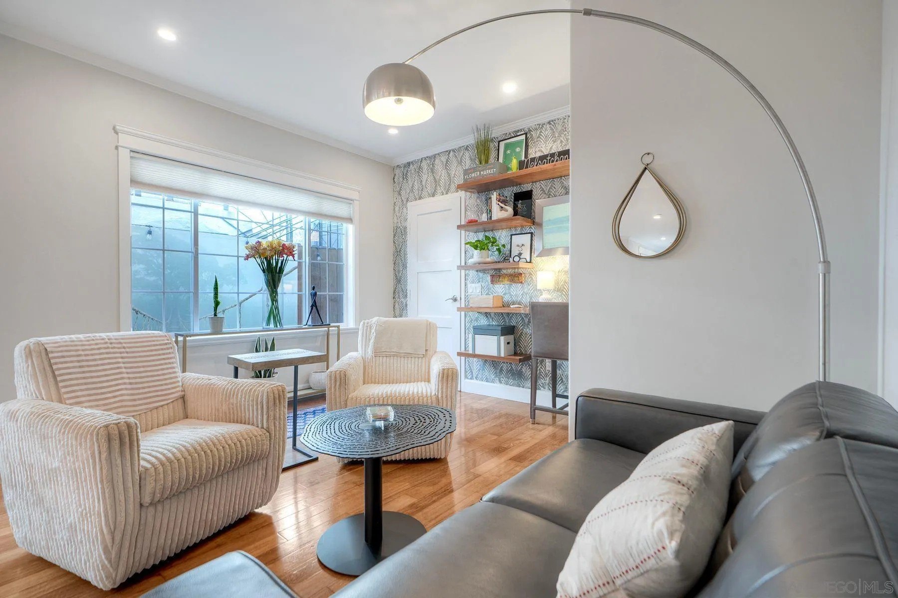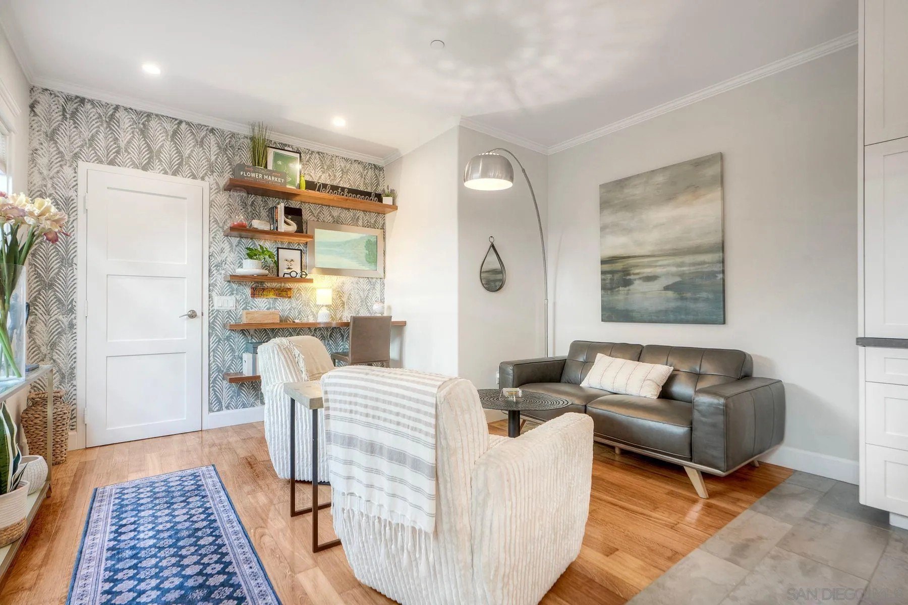 Quintessential Coronado Craftsman home. Located in the Village center, walkable to coffee, movie theater, gym, stores and parks. Classic details with all the modern comforts. Artfully designed with natural flow, natural materials and maximum beauty. Hardwood floors, solid wood doors, abundant storage that is maximized for simplicity and accessibility. Enter from a shaded veranda into an inviting living room with a fireplace. you are drawn through the open feel to the expanded and recently renovated kitchen. Stainless steel Bosch, Meile appliances are all placed for sufficient prep space and thoughtful storage options. The custom kitchen cupboard features are a must see! pullouts, an appliance garage, pull-out pantry, undersink storage, electric trash & recycling bin and more. Multiple patios and balconies - including one off the primary bedroom and one leading to the rooftop deck. The garage has multiple ways to use the tandem space; cars, gym, storage - all options are available. Each room has features that are both beautiful and useful. All windows, doors and sliders throughout are insulated and top quality.