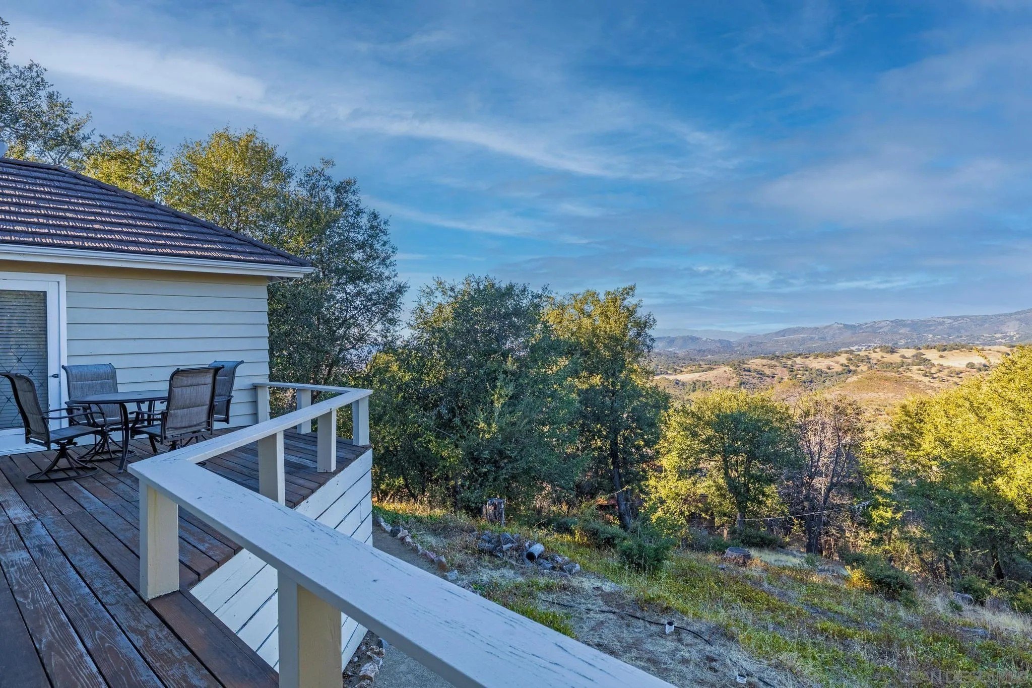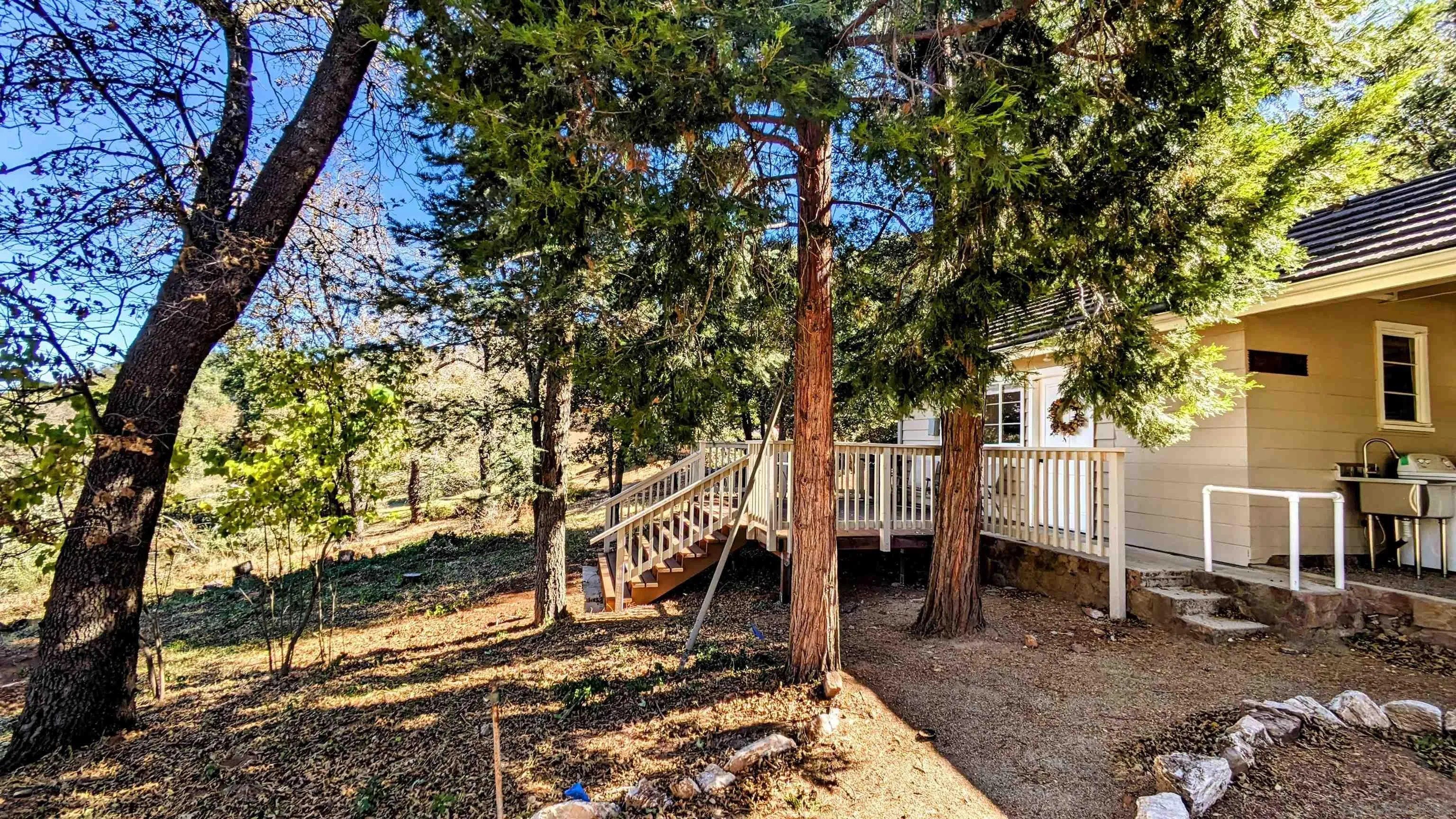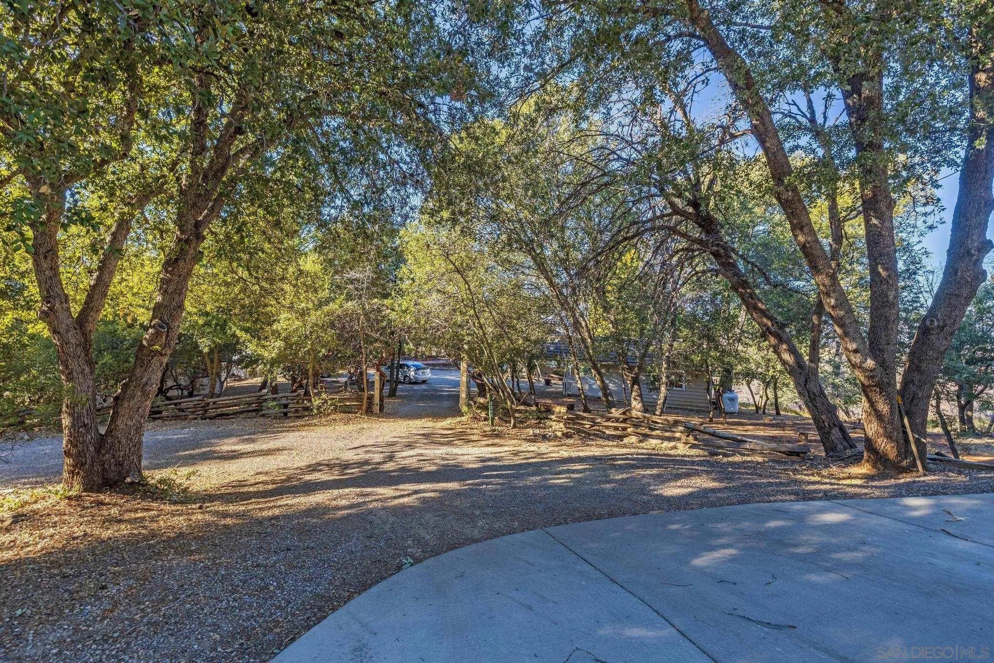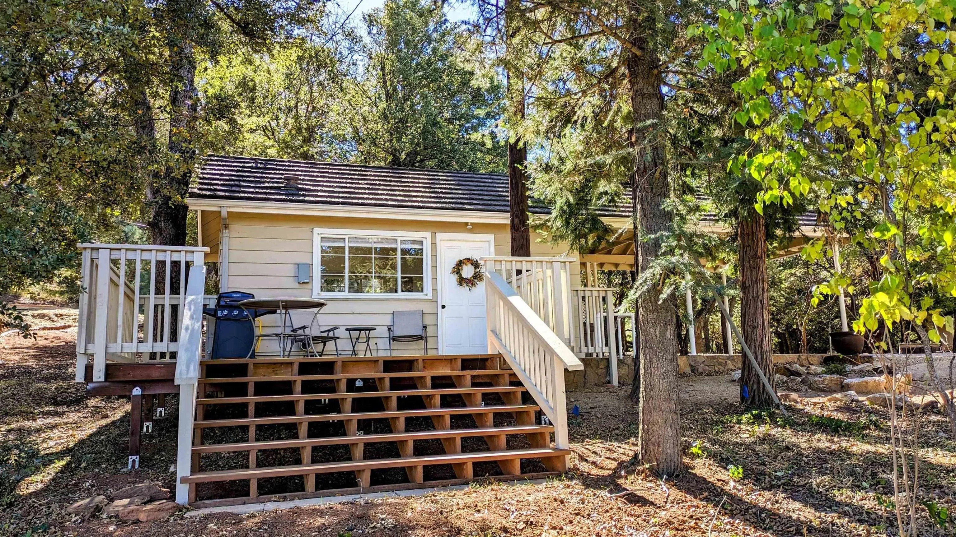 AMAZING VIEWS! Nestled at the top of a scenic hill in Julian's highly sought-after Pine Hills neighborhood, this captivating 1949 home exudes timeless mountain charm and privacy. With only three part-time owners, this remarkable property offers 1.16 acres of serene natural beauty, with old oaks, towering pines, and manzanita. A highlight of the property is the detached guest studio with a deck, and the flagstone courtyard, with its natural stone-lined pathways, providing a tranquil escape for relaxation and outdoor enjoyment. The panoramic views of the Volcan Mountain range will take your breath away. This is an ideal setting for birdwatching and observing the local wildlife, including herds of deer, turkeys, and the occasional fox. The home is in charming original condition, reflecting the thoughtful design of its first owner-an engineer and designer. The classic vintage tile, fixtures, fireplace, and wood floors create a nostalgic allure. The exterior is crafted with hard old-grove redwood siding, known for durability and beauty. The home features zoned area heating and air conditioning mini-splits for efficient performance, two water heaters (including one for the separate studio), and a large Elvira wood-burning insert for cozy warmth on cooler days. This home blends comfort with character. The property includes an attached and detached garage, a carport, and ample parking for guests. The land is cleared and meticulously maintained, ensuring easy access and usability. With a metal-tiled roof and pest-resistant old grove redwood siding.Move in ready!