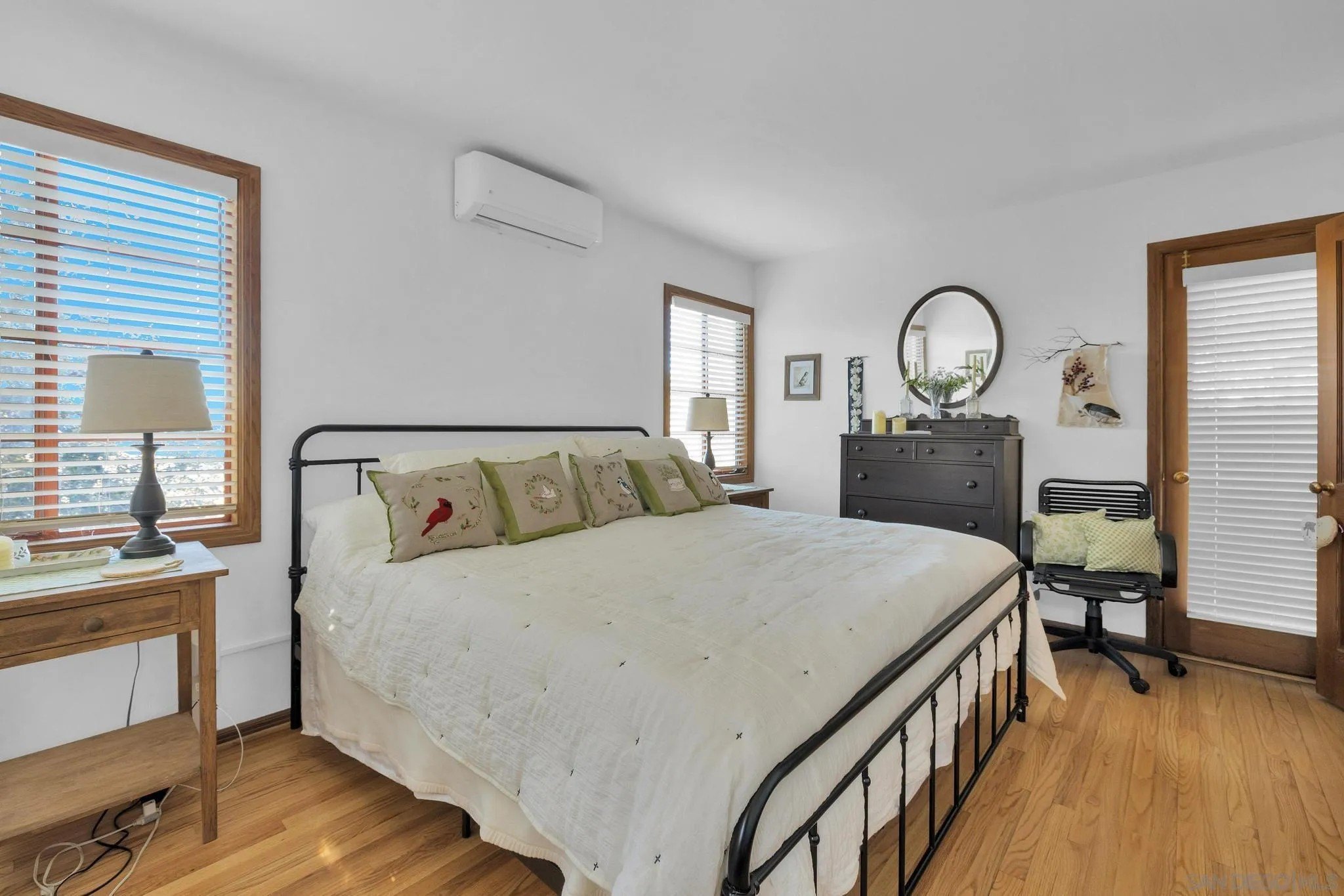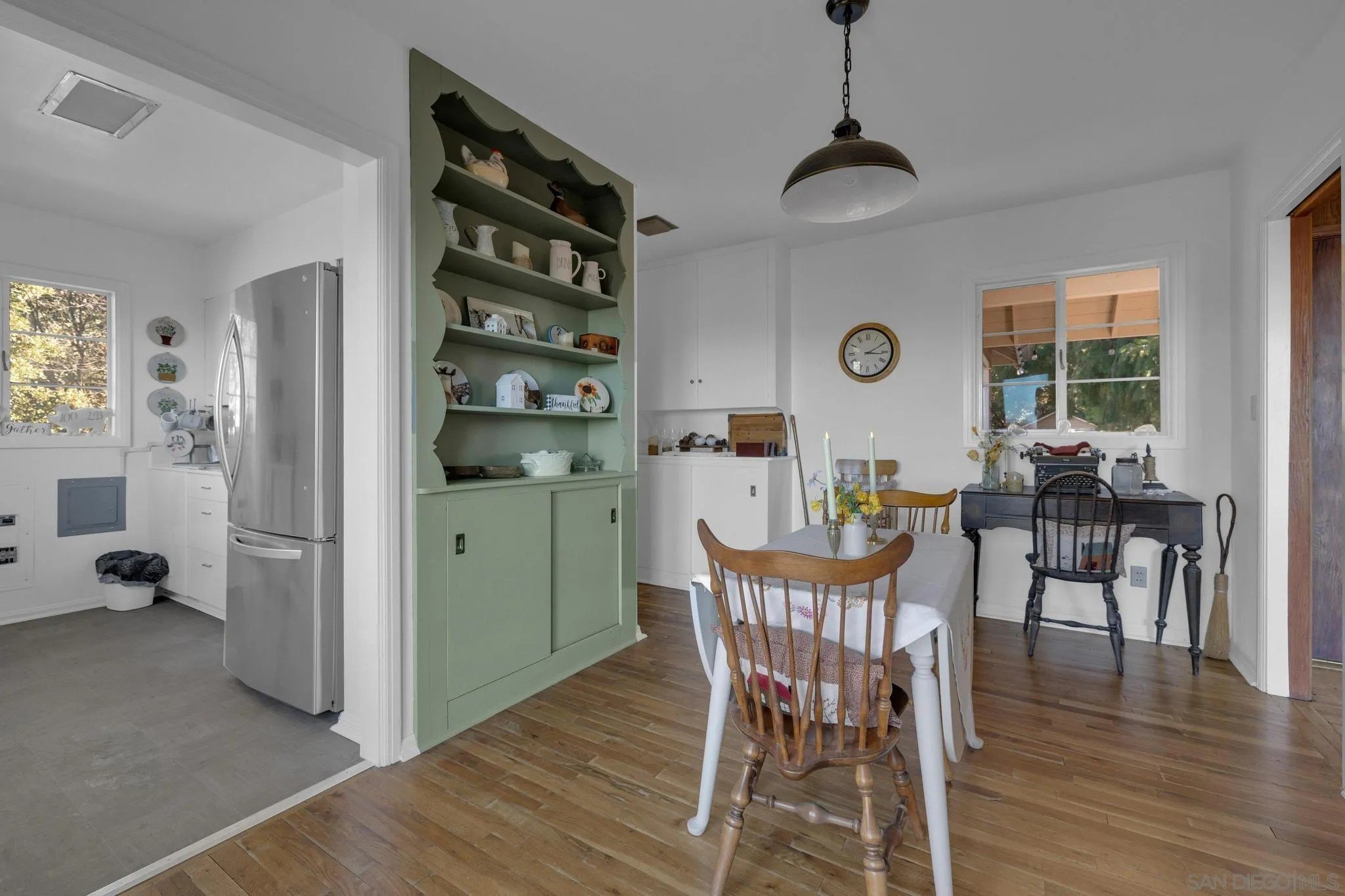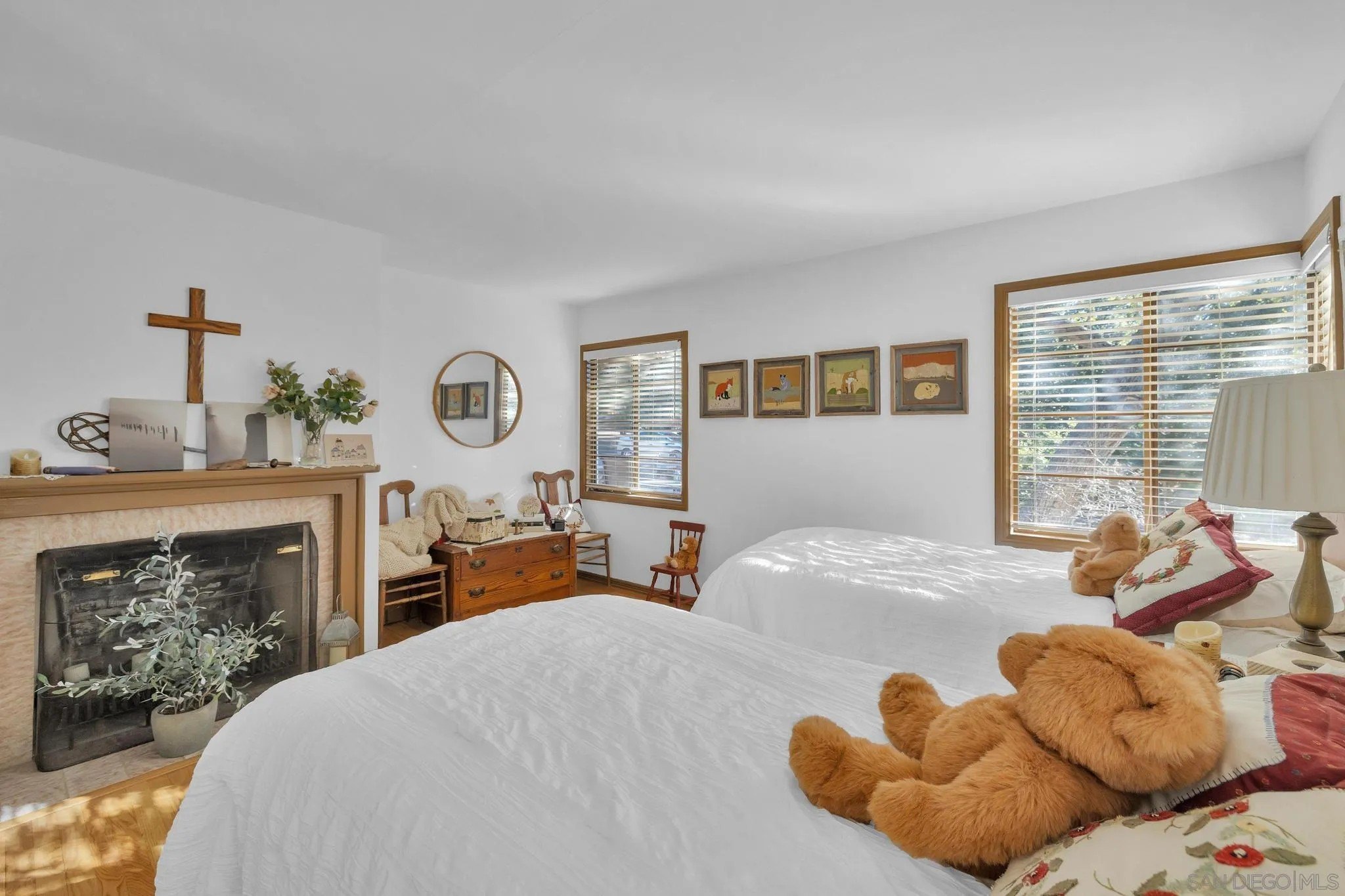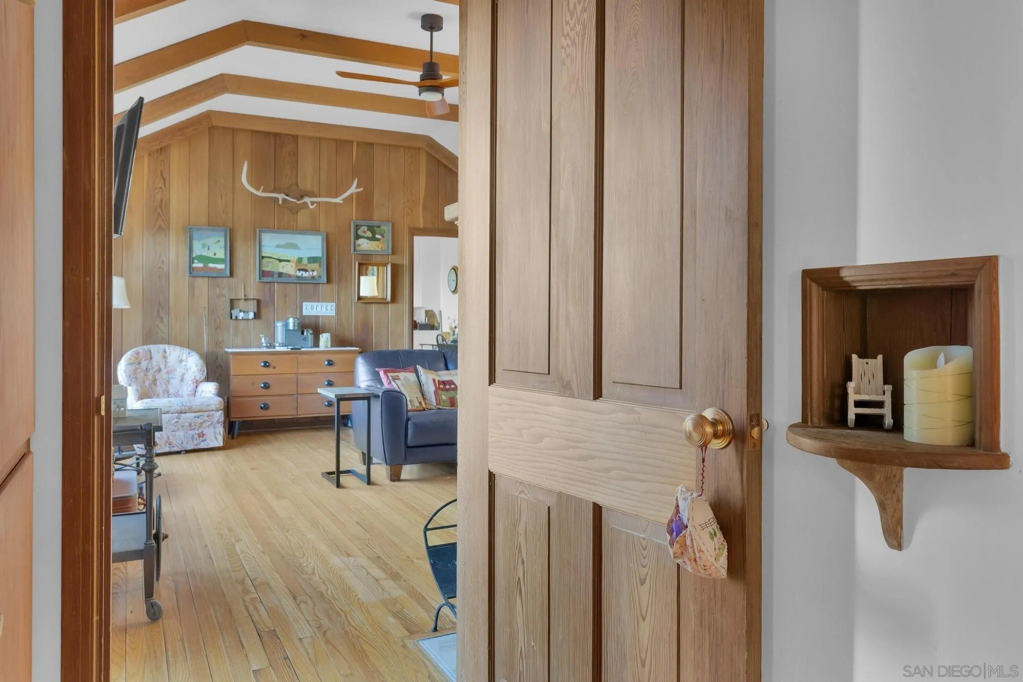 AMAZING VIEWS! Nestled at the top of a scenic hill in Julian's highly sought-after Pine Hills neighborhood, this captivating 1949 home exudes timeless mountain charm and privacy. With only three part-time owners, this remarkable property offers 1.16 acres of serene natural beauty, with old oaks, towering pines, and manzanita. A highlight of the property is the detached guest studio with a deck, and the flagstone courtyard, with its natural stone-lined pathways, providing a tranquil escape for relaxation and outdoor enjoyment. The panoramic views of the Volcan Mountain range will take your breath away. This is an ideal setting for birdwatching and observing the local wildlife, including herds of deer, turkeys, and the occasional fox. The home is in charming original condition, reflecting the thoughtful design of its first owner-an engineer and designer. The classic vintage tile, fixtures, fireplace, and wood floors create a nostalgic allure. The exterior is crafted with hard old-grove redwood siding, known for durability and beauty. The home features zoned area heating and air conditioning mini-splits for efficient performance, two water heaters (including one for the separate studio), and a large Elvira wood-burning insert for cozy warmth on cooler days. This home blends comfort with character. The property includes an attached and detached garage, a carport, and ample parking for guests. The land is cleared and meticulously maintained, ensuring easy access and usability. With a metal-tiled roof and pest-resistant old grove redwood siding.Move in ready!
