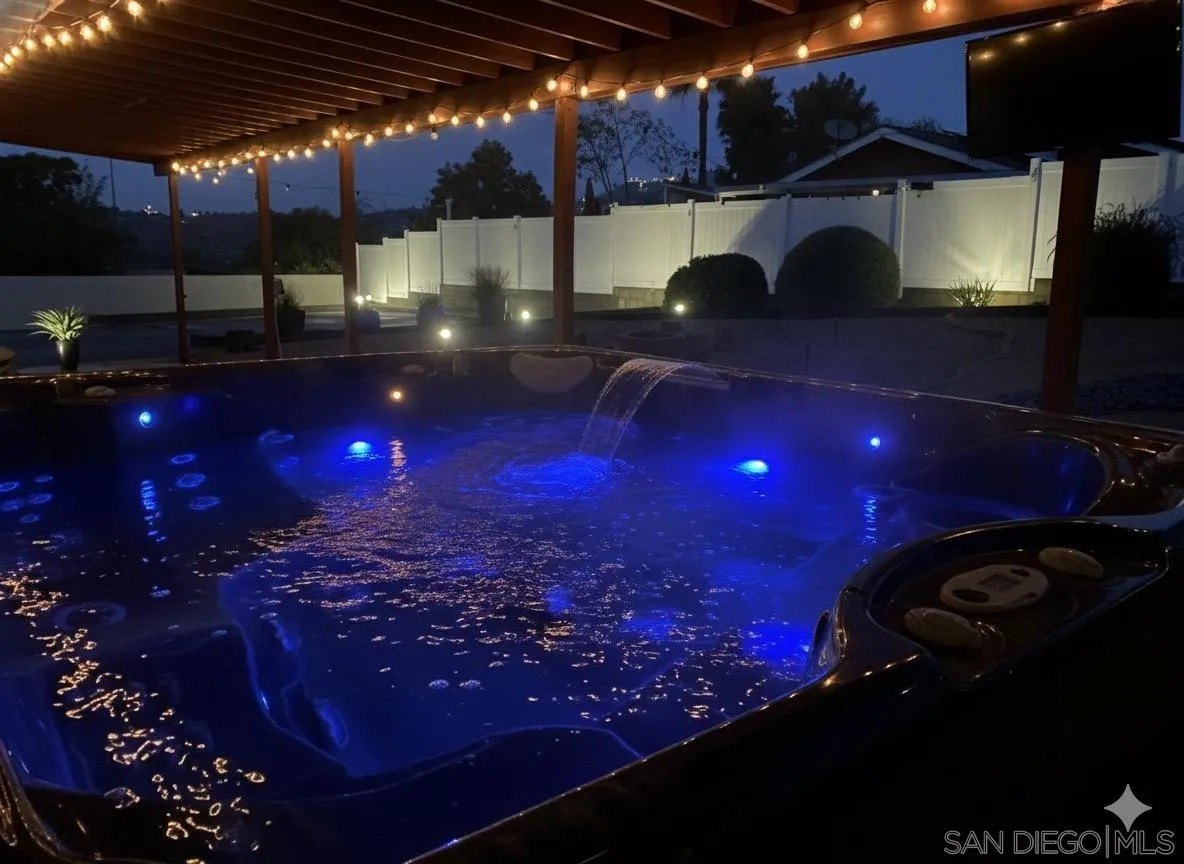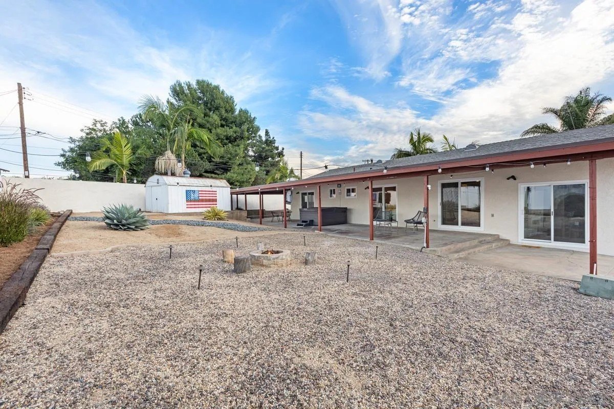 This home blends comfort, functionality, and style. You'll appreciate the abundant amount of parking, featuring a huge RV space wired for a 30-amp hookup, a circular driveway, and a two-car garage equipped with dual 220V outlets-ideal for car enthusiasts, RV owners, or anyone needing extra space. Step into the spacious backyard, thoughtfully designed for entertaining and relaxation. Enjoy evenings around the fire pit, unwind in the hot tub with an outdoor TV, and take advantage of a well-placed storage unit for added convenience. Inside, the home features a cozy fireplace in the living room and an additional dining area that offers space for entertaining or everyday living. The kitchen features sleek black granite countertops, a large matching island, and a built-in hutch/bar area, perfect for cooking family dinners or entertaining guests. This home also offers key system upgrades for peace of mind: a new HVAC, all windows less than a year old with a transferable warranty, and enjoy major savings with 26 solar panels.. Centrally located in a quiet neighborhood with easy access to Hwy 94 and I-125, this property is just minutes from local shopping, restaurants, schools, and nearby parks. Don't miss the ideal combination of comfort, convenience, and California living.