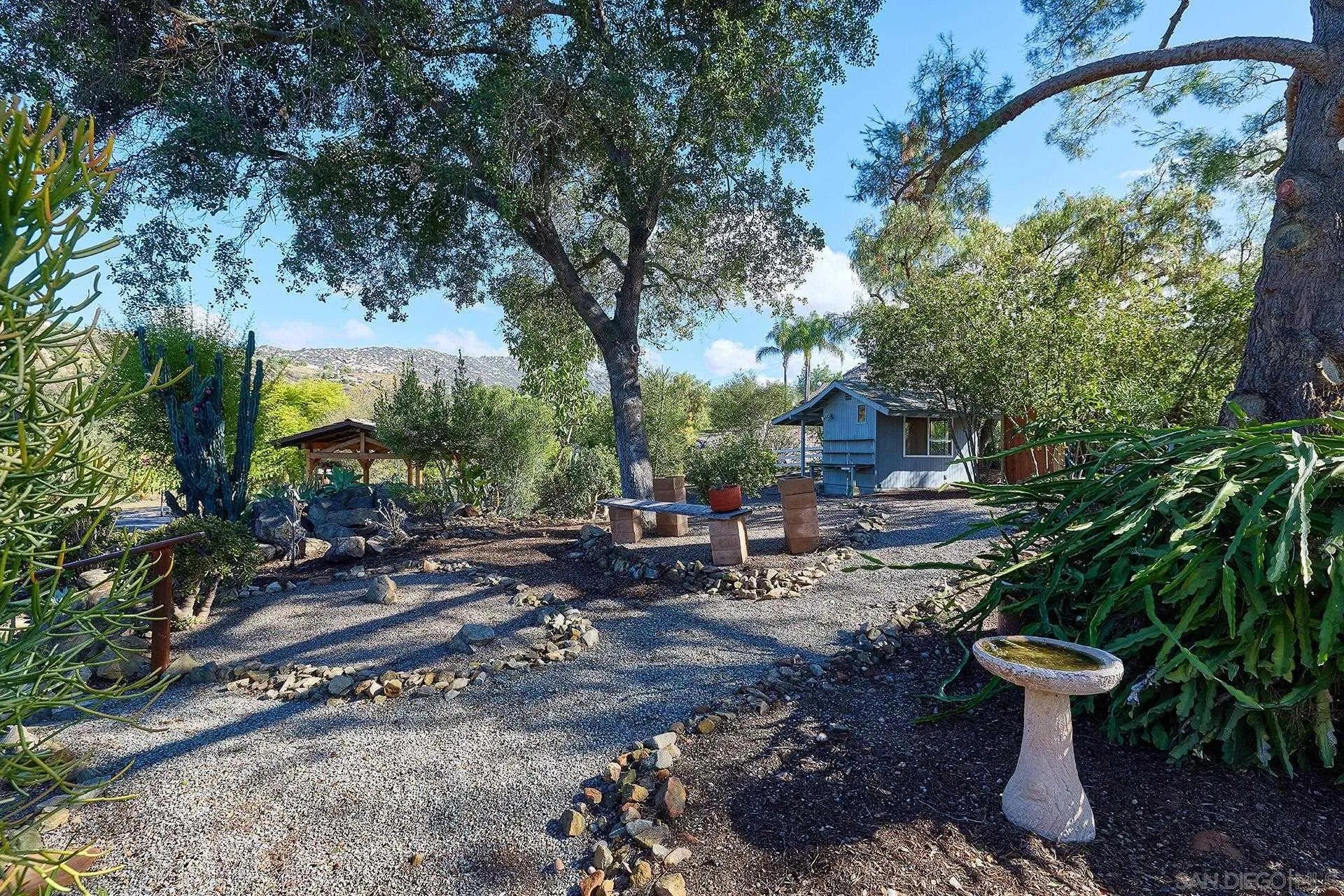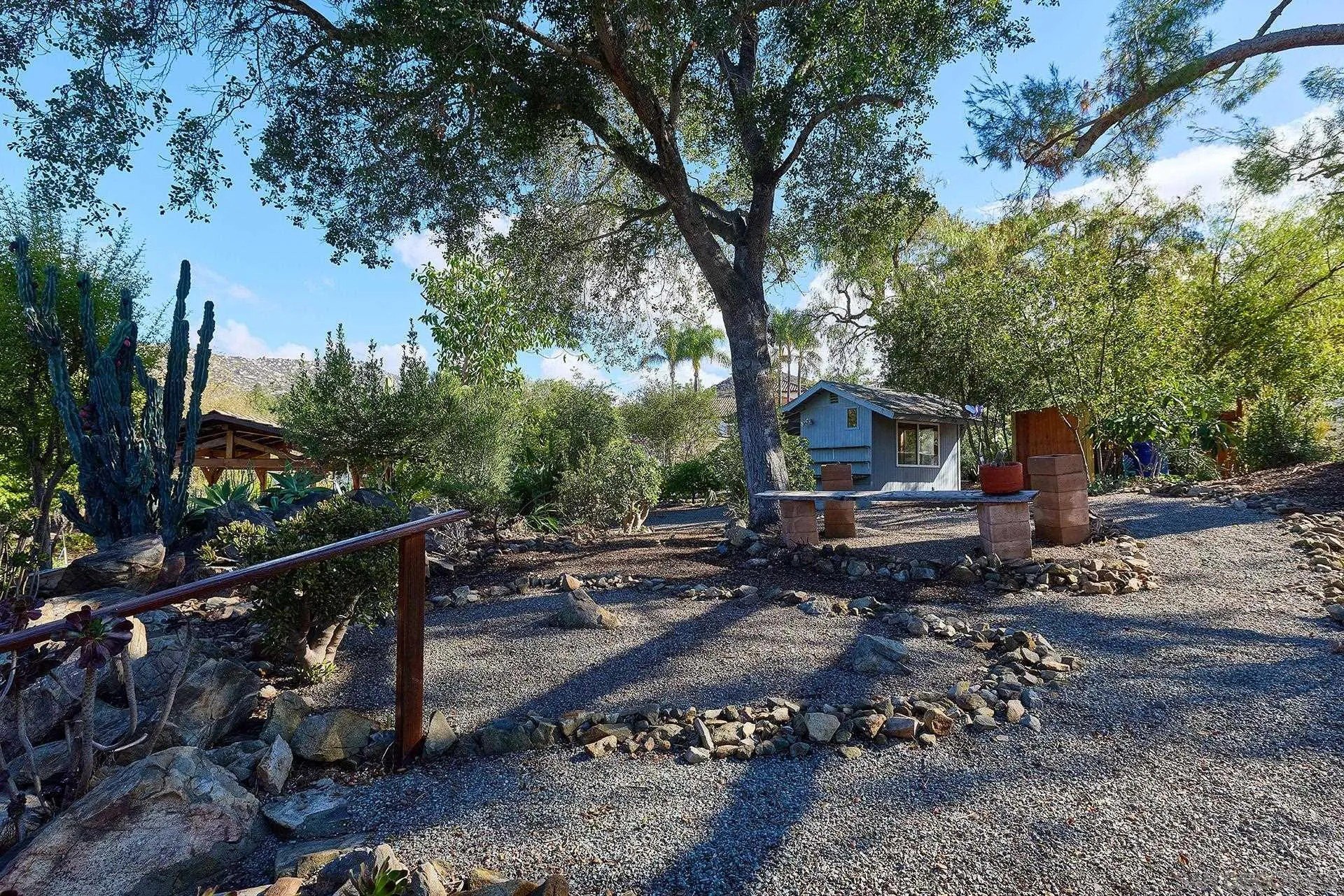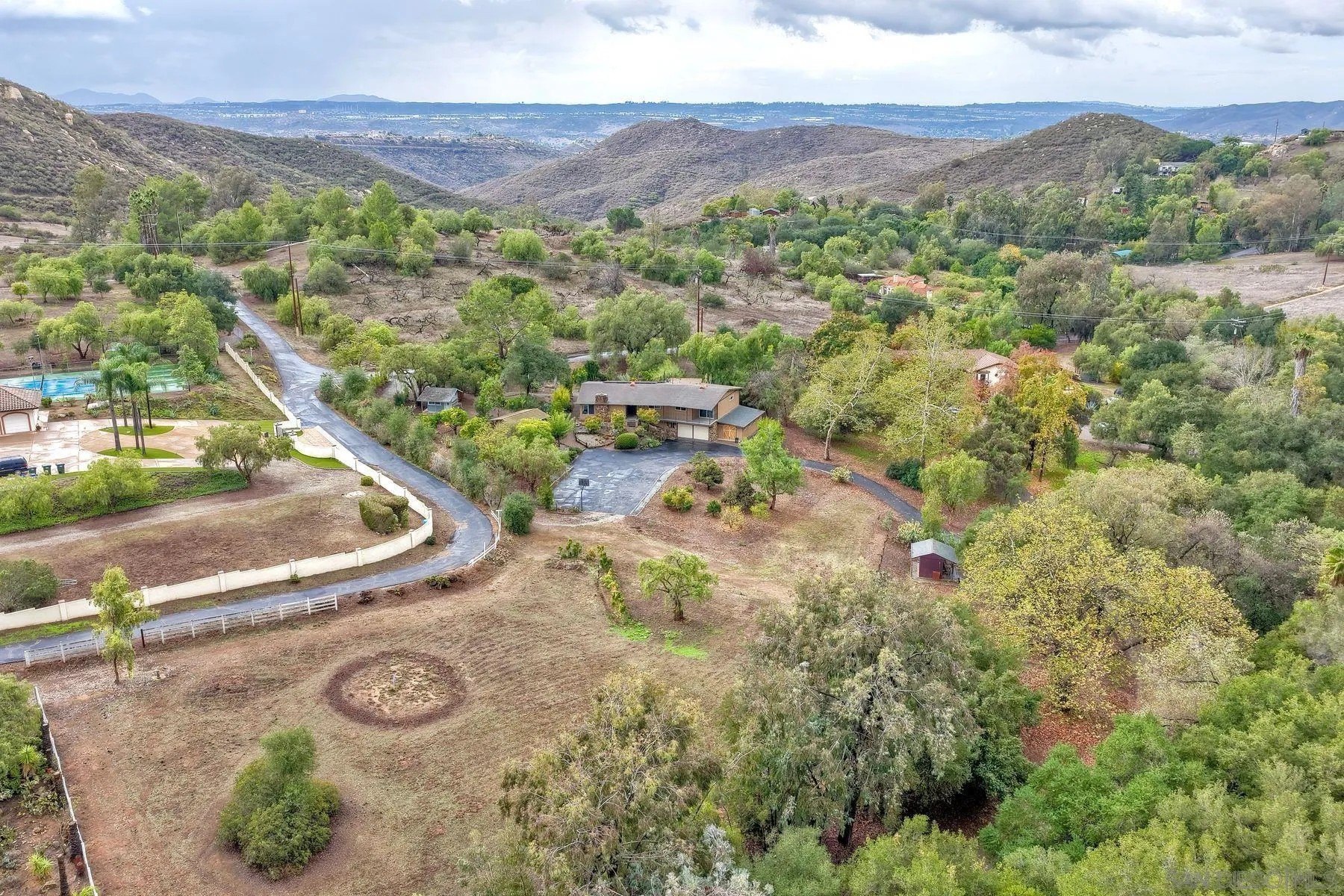 Nestled in the coveted High Valley area of Poway, this exceptional property offers over 2.3 acres of usable land and a lifestyle rarely available in today's market. Private, secluded, and surrounded by mature trees, the well-maintained main residence features 4 bedrooms, 3 bathrooms, and just over 2,500 square feet of inviting living space-an ideal canvas for both everyday comfort and inspired future possibilities for an elaborate estate. The home sits elevated among the trees, blending seamlessly into its surroundings while offering peaceful views. Inside, the layout is warm and functional, highlighted by generous living areas, abundant natural light, and a spacious deck that extends the living space outdoors, surrounded by mature trees, perfect for morning coffee, evening gatherings, or simply relaxing in the quiet serenity of nature. With just over 2.3 very usable acres, a new septic tank and 5kw solar system are important featured amenities. Several existing sitting and utility structures such as two handcrafted pergolas, a large potting shed, an antique tack room that all provide unique experiences within the property. The land opens the door to nearly limitless potential. Create the outdoor lifestyle you've always envisioned, add a sport court, tennis court, or pickleball court; build a guest house/ADU, design an equestrian facility, or craft the ultimate family compound with multiple multi-generational living, a private retreat, a hobby farm, or the freedom to design a custom expansion, truly a rare offering. High Valley is known for its rural charm and proximity.