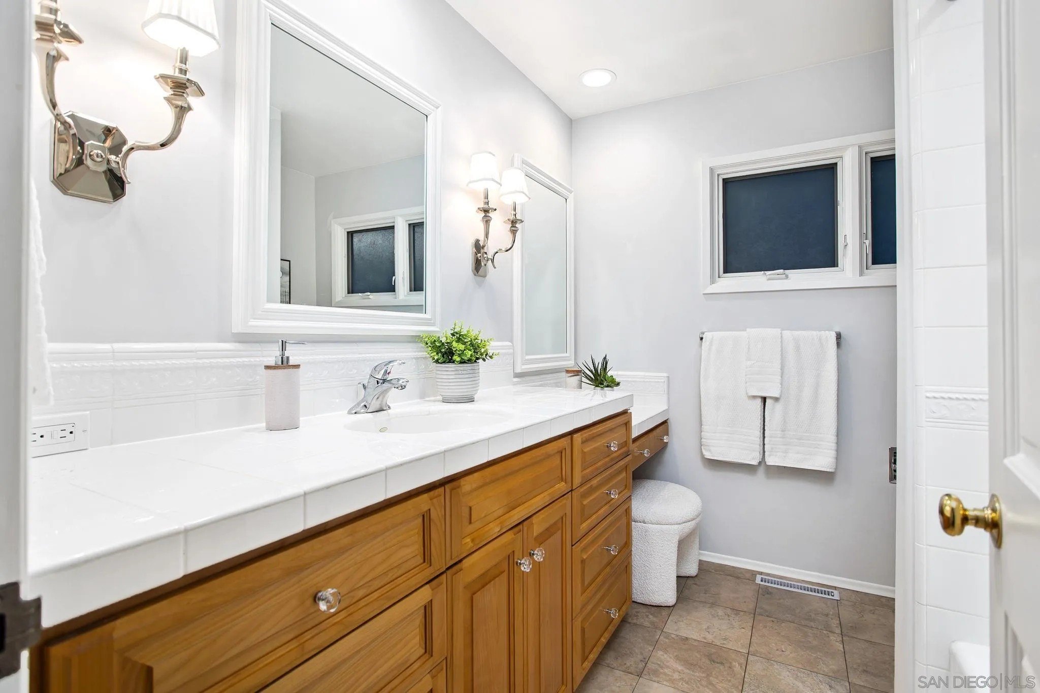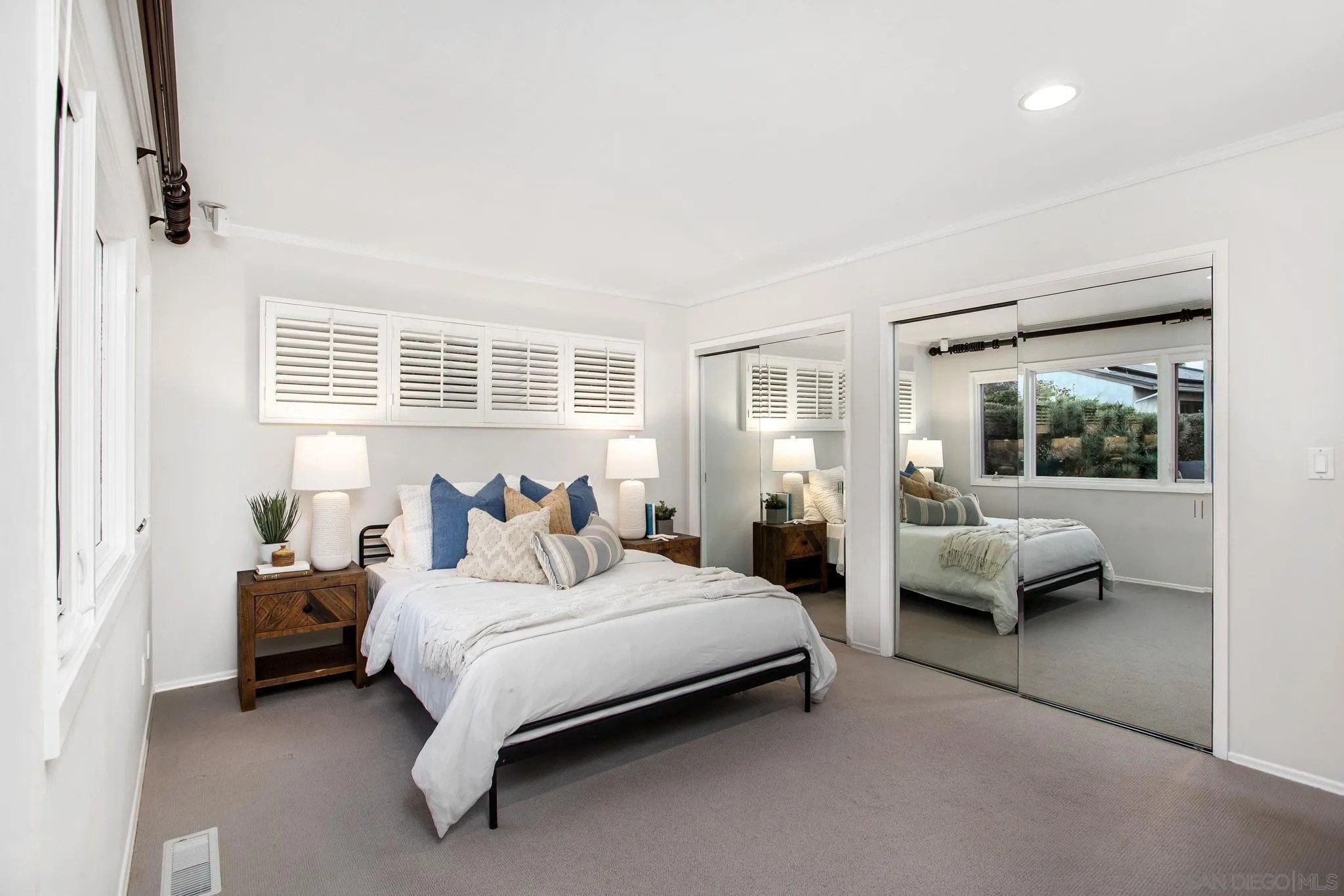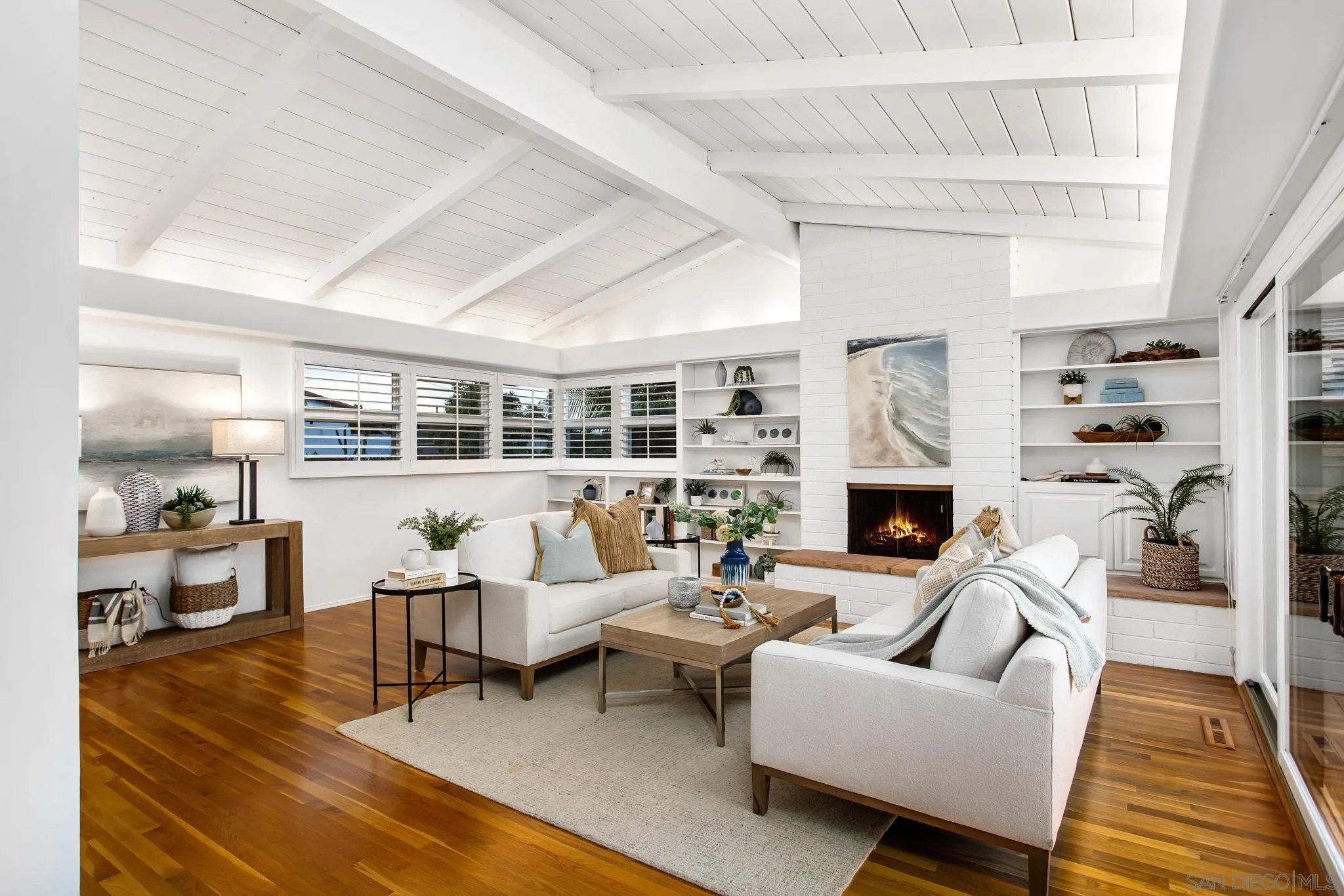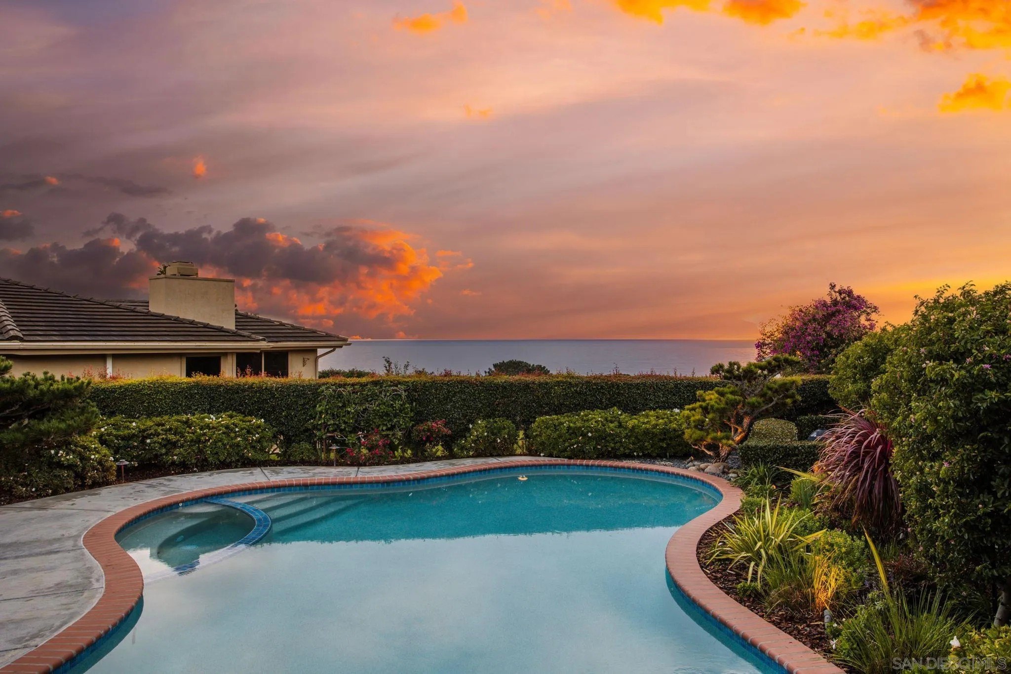 It doesn't get better than this single-level La Jolla home, ideally situated at the top of a quiet cul-de-sac above Bird Rock! On the market for the first time in over 40 years, this residence offers a rare combination of prime location, thoughtful updates, abundant natural light, and ocean views. Inside, a spacious living room welcomes you with hardwood floors, vaulted ceilings, plantation shutters, and large sliding doors that create seamless indoor-outdoor living. The well-appointed kitchen features custom solid cherry cabinetry, granite countertops, premium stainless steel appliances, a built-in Sub-Zero refrigerator, recessed lighting, and a gas cooktop. A cozy adjoining family room-also showcasing custom cherry cabinetry-opens directly to the home's private backyard retreat. The front and backyard create a beautifully designed oasis ideal for year-round enjoyment. Relax by the newly resurfaced pool and attached spa or on the updated deck, surrounded by mature landscaping designed by Todd Fry. A poolside waterfall and landscape lighting in both the front and back enhances the resort-style ambiance and sense of privacy. Additional upgrades include owned solar panels, dedicated solar pool heating, updated windows throughout, a replaced and insulated roof (2009), and a newer A/C system with upgraded air ducts. Don't miss this rare opportunity to make this beautifully maintained La Jolla property your own.
