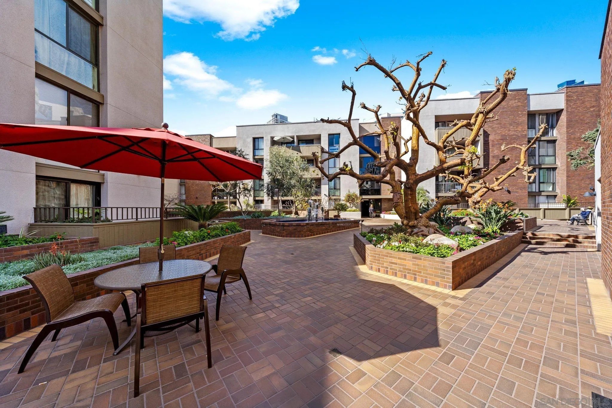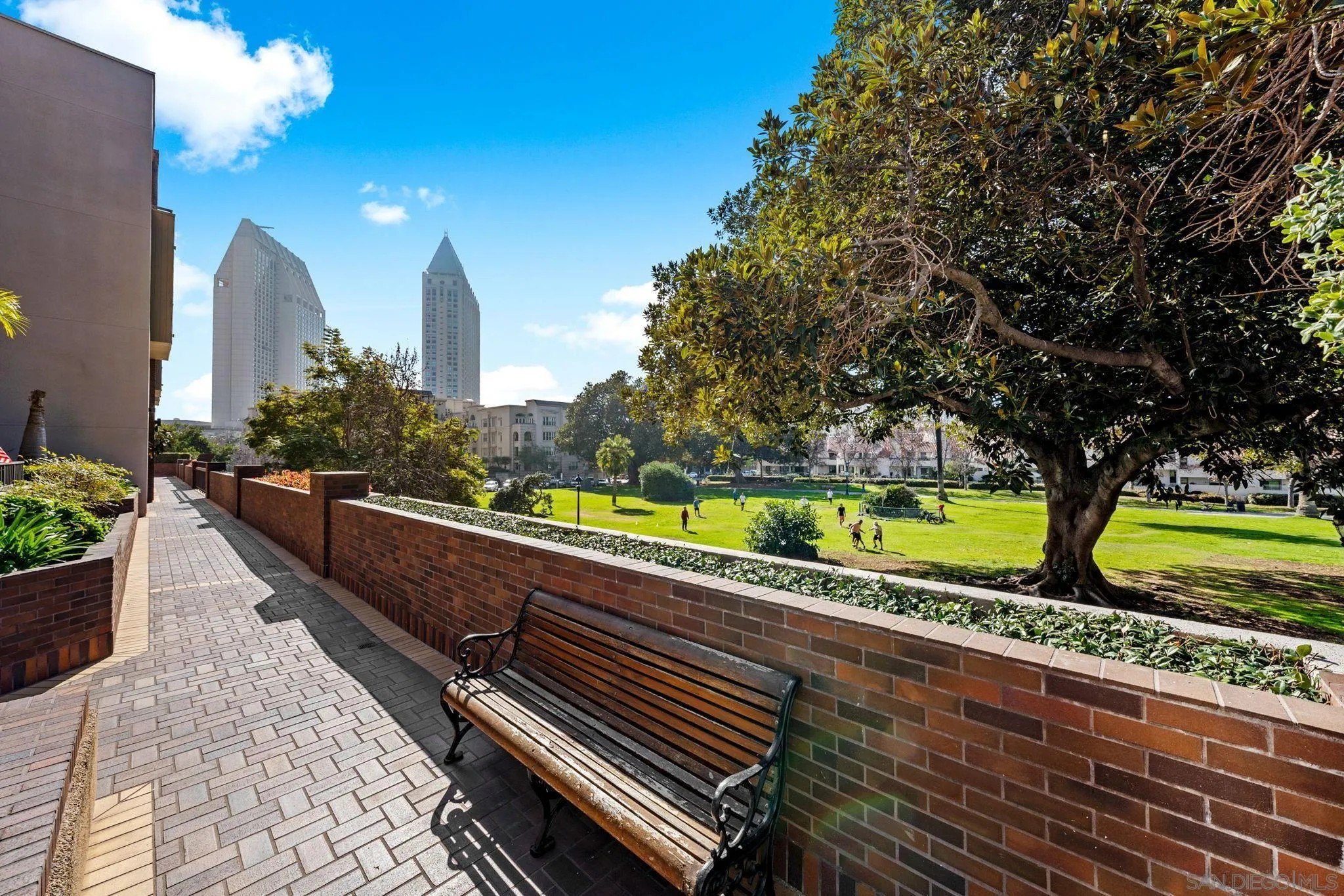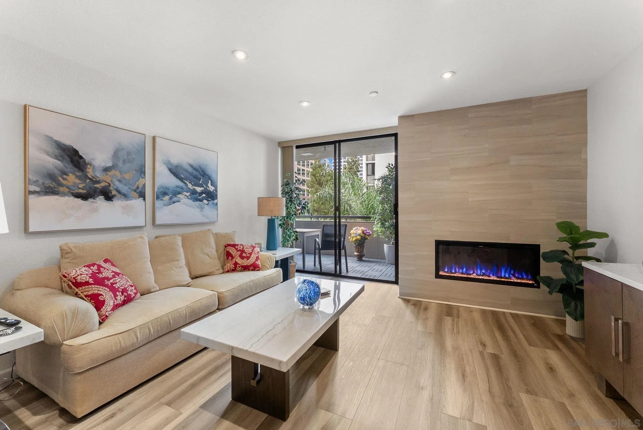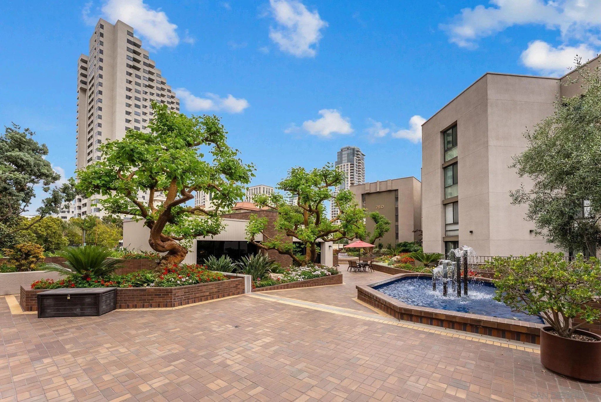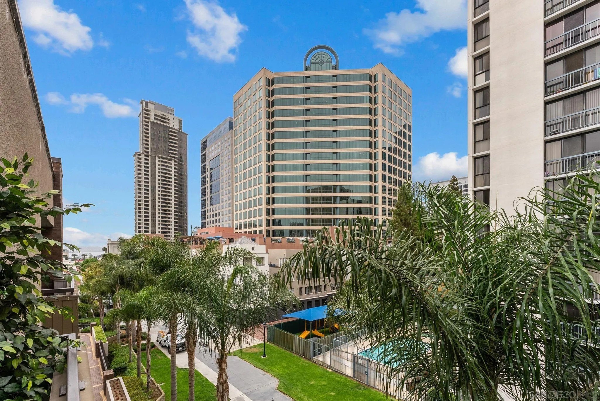 Welcome to your top floor urban sanctuary at Marina Park-an elegantly remodeled condo located in one of Downtown San Diego's most desirable communities. Nestled in the quiet yet vibrant Marina District, this spacious 2-bedroom, 2-bath residence offers upscale living with all the modern comforts and walkable convenience of city life. Step inside to discover a light-filled open floor plan, thoughtfully designed with high-end finishes throughout. The remodeled kitchen boasts quartz countertops, sleek cabinetry, stainless steel appliances, and a breakfast bar perfect for casual dining or entertaining. The spacious living and dining areas flow seamlessly to a private balcony-your personal perch to unwind and enjoy city views. Retreat to a generously sized primary suite complete with a large walk-in closet and a spa-inspired en-suite bathroom featuring a modern vanity and beautiful tile work. Enjoy in-unit laundry and central A/C complete the package. Marina Park is a full-service community offering resort-style amenities including 24-hour security, two swimming pools, spa, fitness center, lush courtyards, and guest parking. Enjoy the best of Downtown-just steps from Seaport Village, the waterfront, Gaslamp Quarter, Little Italy, and PETCO Park. This turnkey home blends sophistication and location, making it ideal for full-time residents, second-home seekers, or savvy investors. Don't miss your opportunity to live in one of Downtown's most established and well-kept communities.