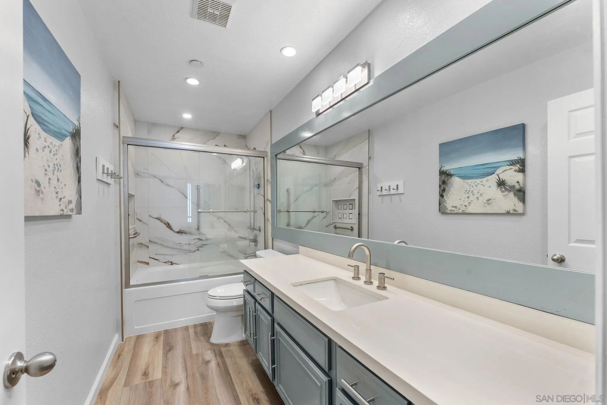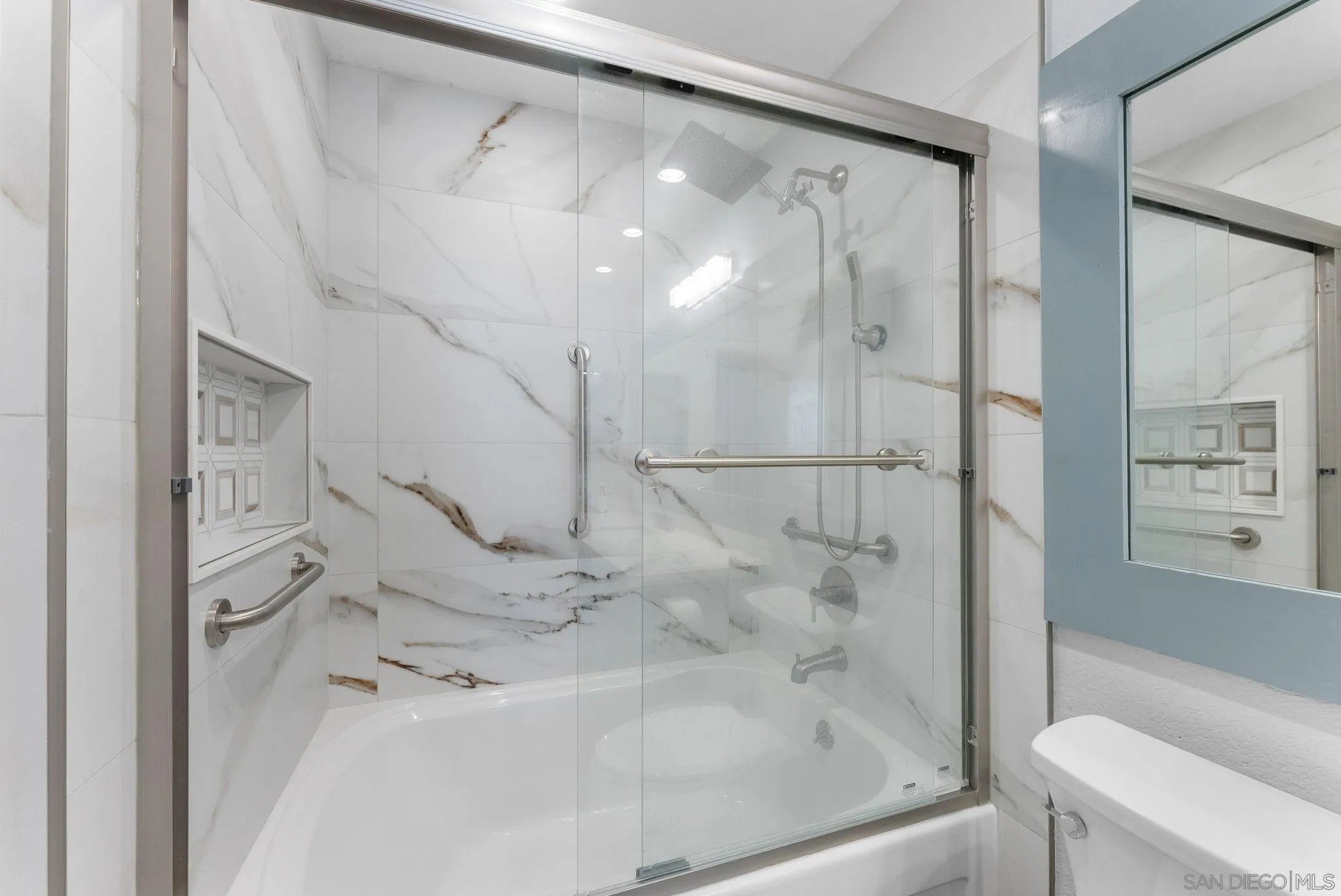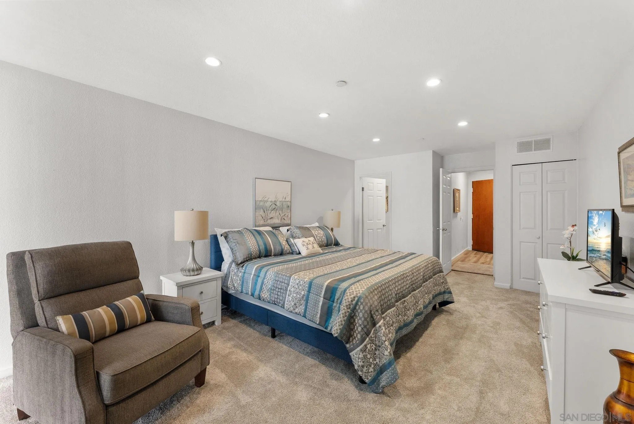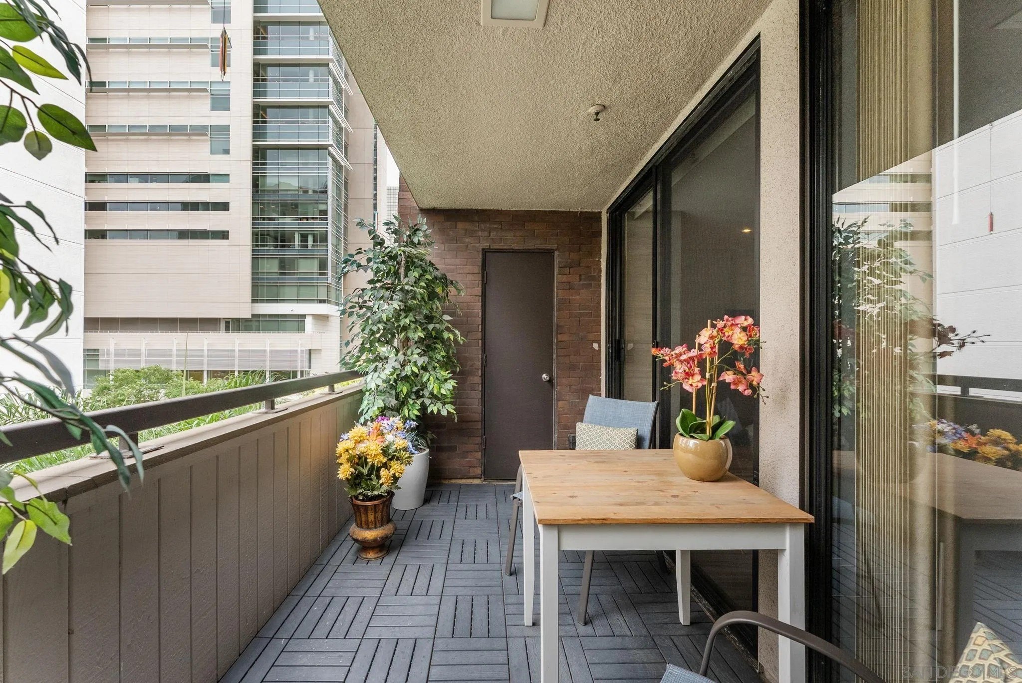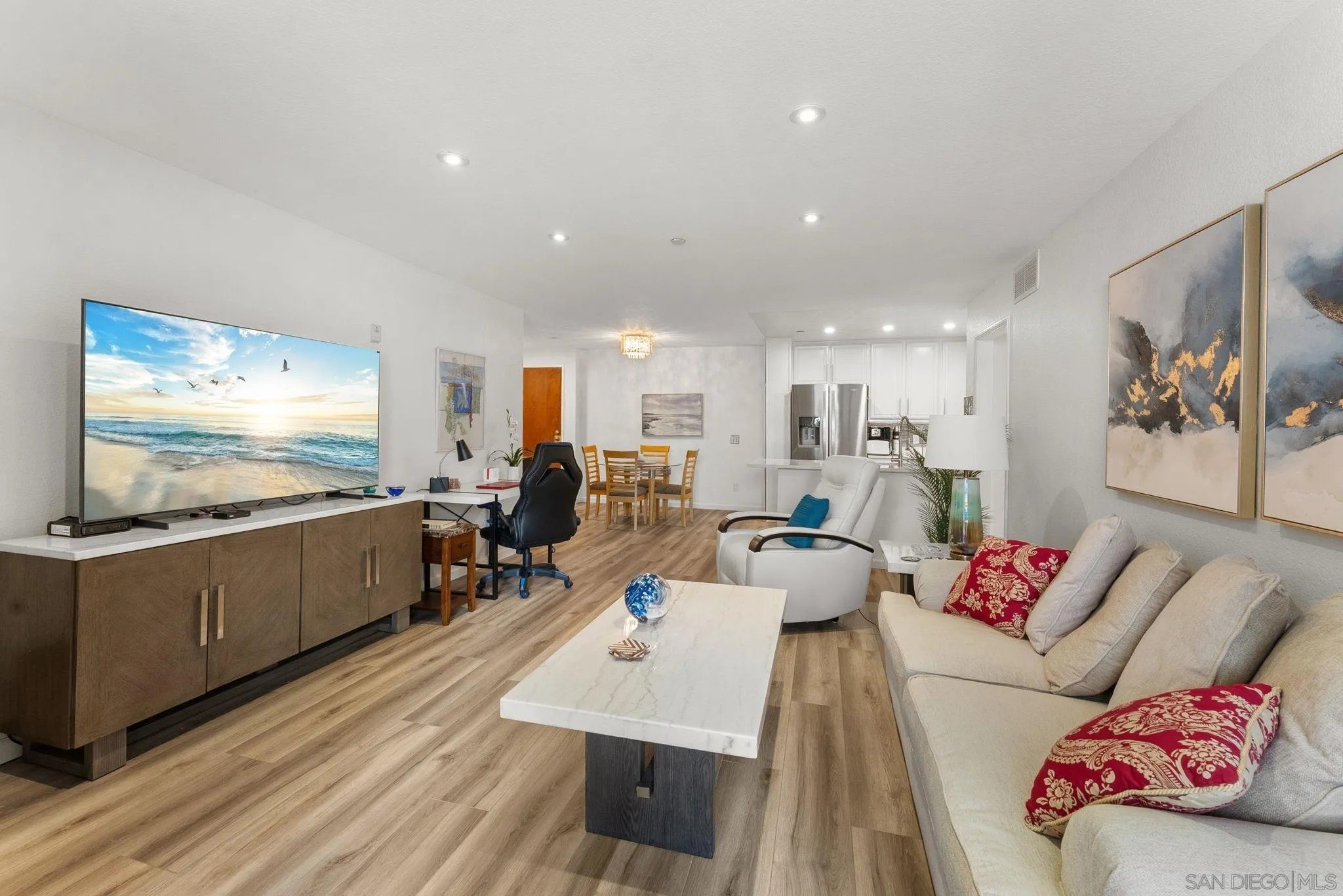 Welcome to your top floor urban sanctuary at Marina Park-an elegantly remodeled condo located in one of Downtown San Diego's most desirable communities. Nestled in the quiet yet vibrant Marina District, this spacious 2-bedroom, 2-bath residence offers upscale living with all the modern comforts and walkable convenience of city life. Step inside to discover a light-filled open floor plan, thoughtfully designed with high-end finishes throughout. The remodeled kitchen boasts quartz countertops, sleek cabinetry, stainless steel appliances, and a breakfast bar perfect for casual dining or entertaining. The spacious living and dining areas flow seamlessly to a private balcony-your personal perch to unwind and enjoy city views. Retreat to a generously sized primary suite complete with a large walk-in closet and a spa-inspired en-suite bathroom featuring a modern vanity and beautiful tile work. Enjoy in-unit laundry and central A/C complete the package. Marina Park is a full-service community offering resort-style amenities including 24-hour security, two swimming pools, spa, fitness center, lush courtyards, and guest parking. Enjoy the best of Downtown-just steps from Seaport Village, the waterfront, Gaslamp Quarter, Little Italy, and PETCO Park. This turnkey home blends sophistication and location, making it ideal for full-time residents, second-home seekers, or savvy investors. Don't miss your opportunity to live in one of Downtown's most established and well-kept communities.