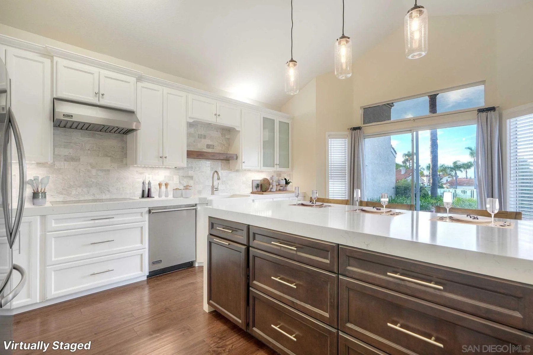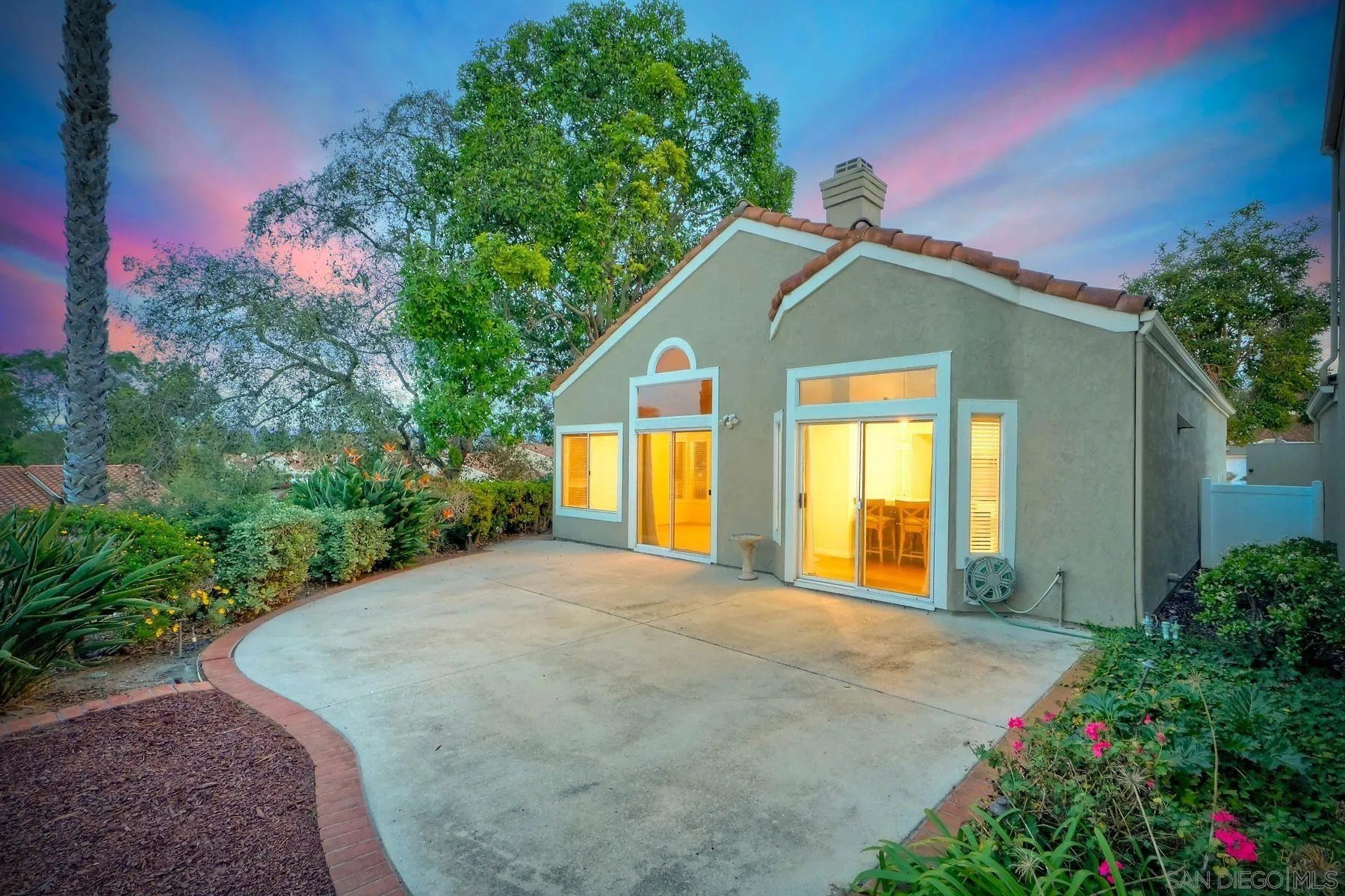 LOCATION, LOCATION, LOCATION! Welcome to the prestigious gated community of Masters Hill within Bernardo Heights. The private corner lot is nestled in a quiet cul-de-sac street within the community featuring plenty of guest parking just steps from your front door. Upon entering the home, you are greeted by an open and bright living room space with vaulted ceilings, large windows, fireplace, and beautiful new flooring throughout the main living areas. This single level "Buena Vista" model is rarely available. The 2-bedroom floorplan features a large primary suite, equipped with dual vanities, soaking tub, and spacious walk-in closet. The gourmet kitchen is fully remodeled and is equipped with modern appliances, gas cooking, custom stone countertop, ample cabinet space, and an expansive eat-in nook to enjoy sunset views over the skyline. The low-maintenance backyard is an entertainer's delight to enjoy sunsets, green belt, and surrounding hill views. The outdoor space is one of the larger lots in Master Hill with lush landscaping, and peaceful surroundings of the community. Additional features include a long driveway and a two-car garage, a dedicated laundry closet, plantation shutters, and access to resort-like amenities such as playground, pools, spa, pickle ball, tennis courts, and fitness center located at the Bernardo Heights Community Center. Walking distance to award winning schools, shopping, dining, parks and recreational areas, this home offers the perfect blend of luxury, comfort, and convenience. HOA INCLUDES: Internet, Cable TV, Pool/Spa, Tennis, Roof Maintenance