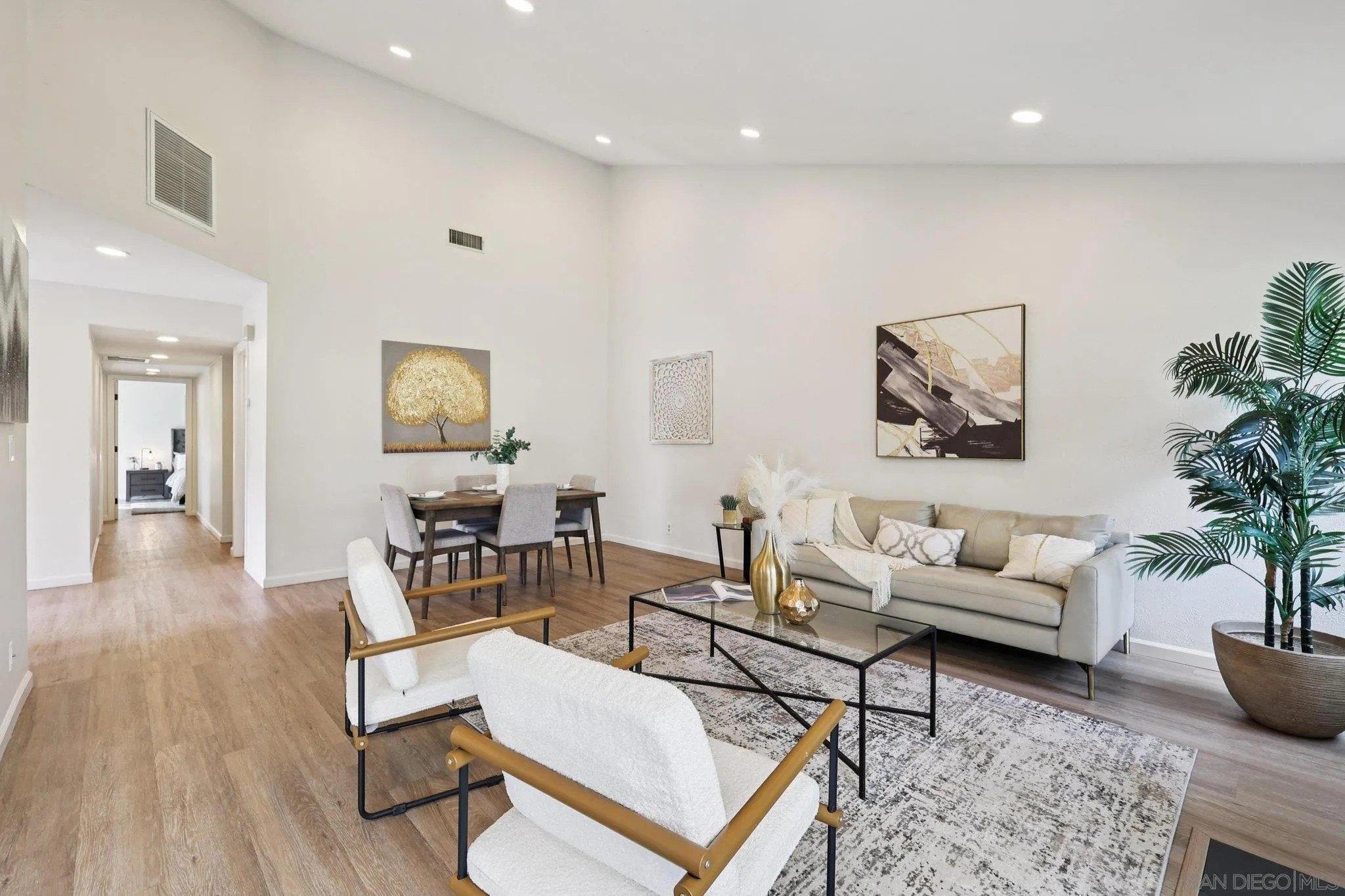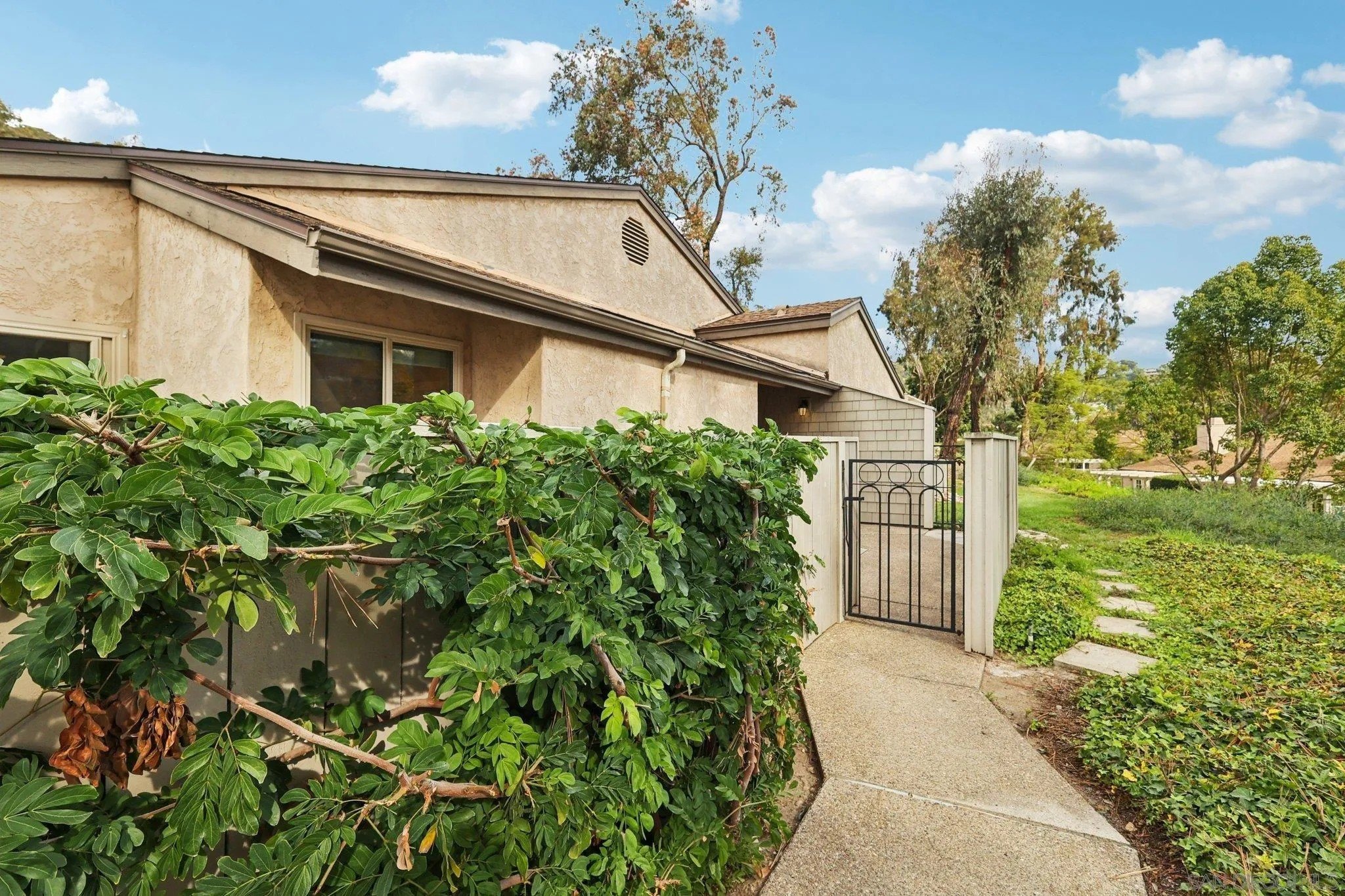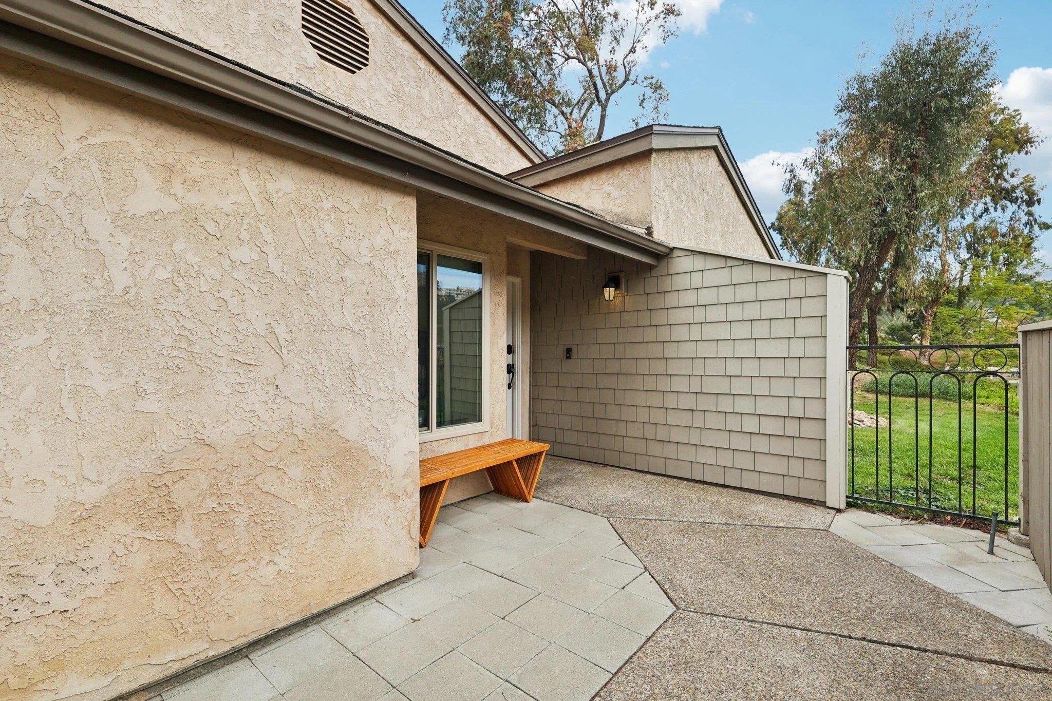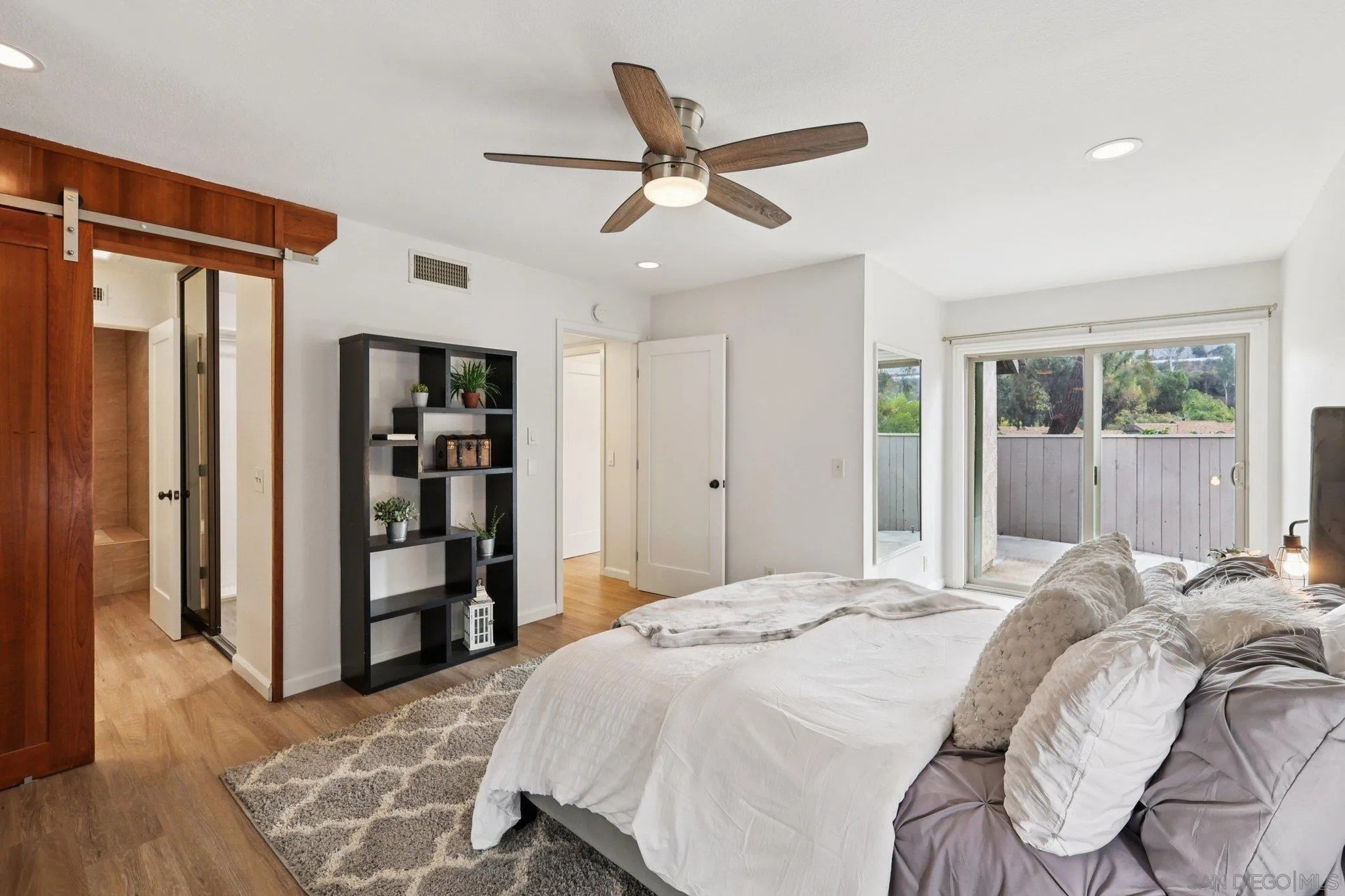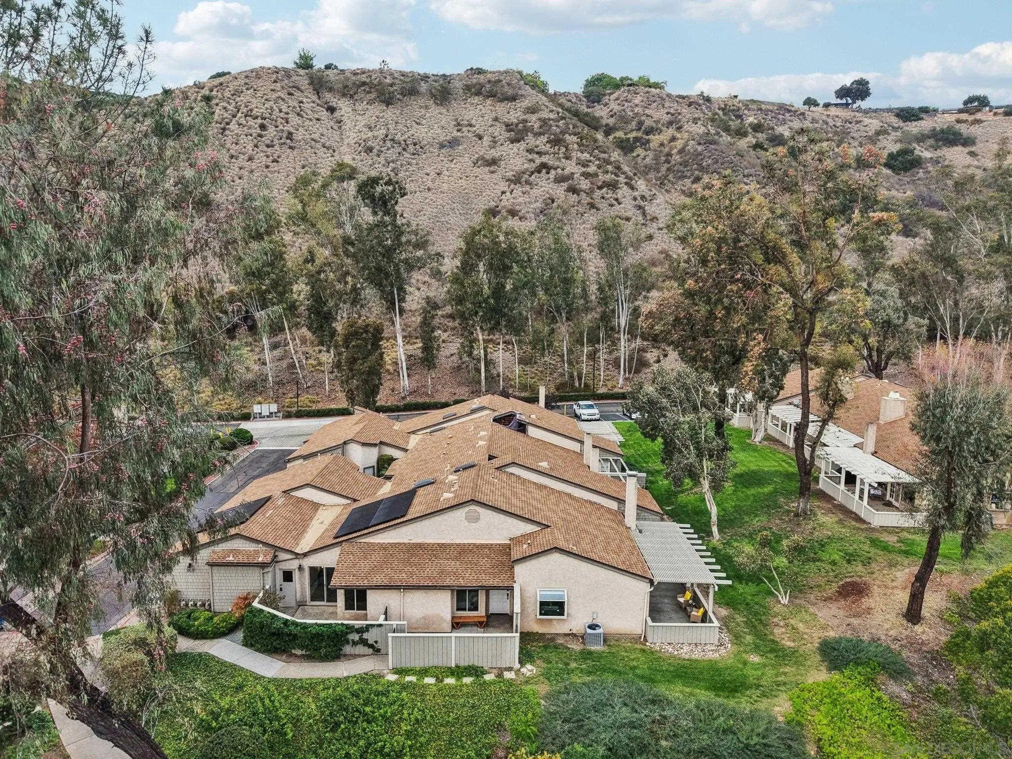 RARE CORNER UNIT SINGLE STORY HOME IN SMOKE TREE COMMUNITY * BEAUTIFULLY UPGRADED * MOUNTAIN AND SDSU VIEW * PAID OFF 15 PANEL SOLAR SYSTEM EV READY * 3 PATIOS AREA * 2 CAR GARAGE! Welcome to this rare single-story corner unit in the highly desirable Smoke Tree community, offering privacy, style, and effortless indoor-outdoor living. This beautifully updated three-bedroom, two-bath home features three separate patio areas, perfect for relaxing, gardening, or entertaining while enjoying a park-like setting with open mountain and SDSU views. The house is equipped with a paid-off 15-panel Baker Electric solar system and an EV-ready outlet, ensuring low energy costs and high convenience. Step inside to a bright, open layout with vaulted ceilings, recessed LED lighting, and custom motorized LEVOLOR window treatments in the living room. The living room features a cozy fireplace and seamless flow to the large patio with amazing views. The kitchen is a true showstopper, designed for the home chef, with a large center island, white shaker cabinetry, luxurious natural quartzite countertops, deep stainless steel sink, pull-out storage, and high-end stainless steel smart appliances, including a touchscreen LG refrigerator, induction cooktop, wine fridge, double ovens, and built-in microwave.