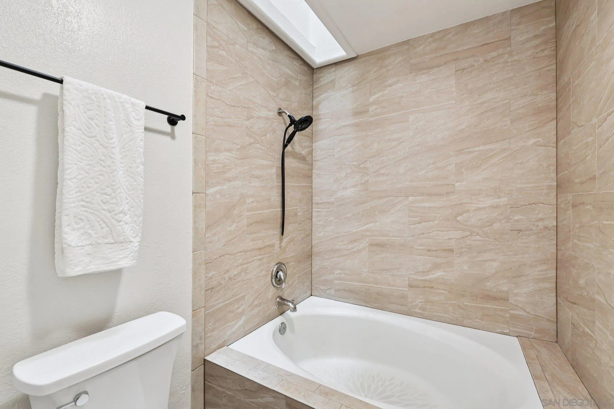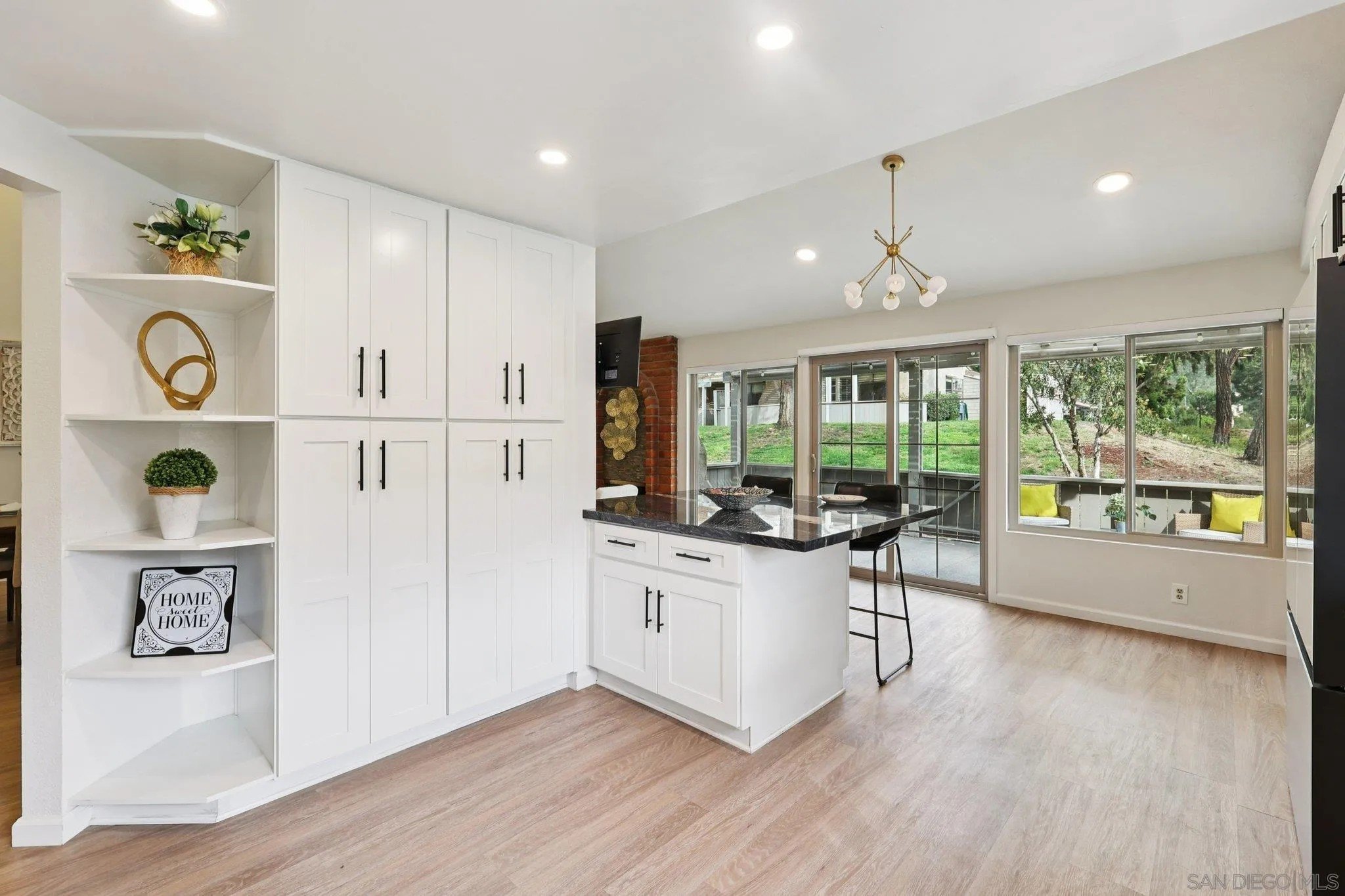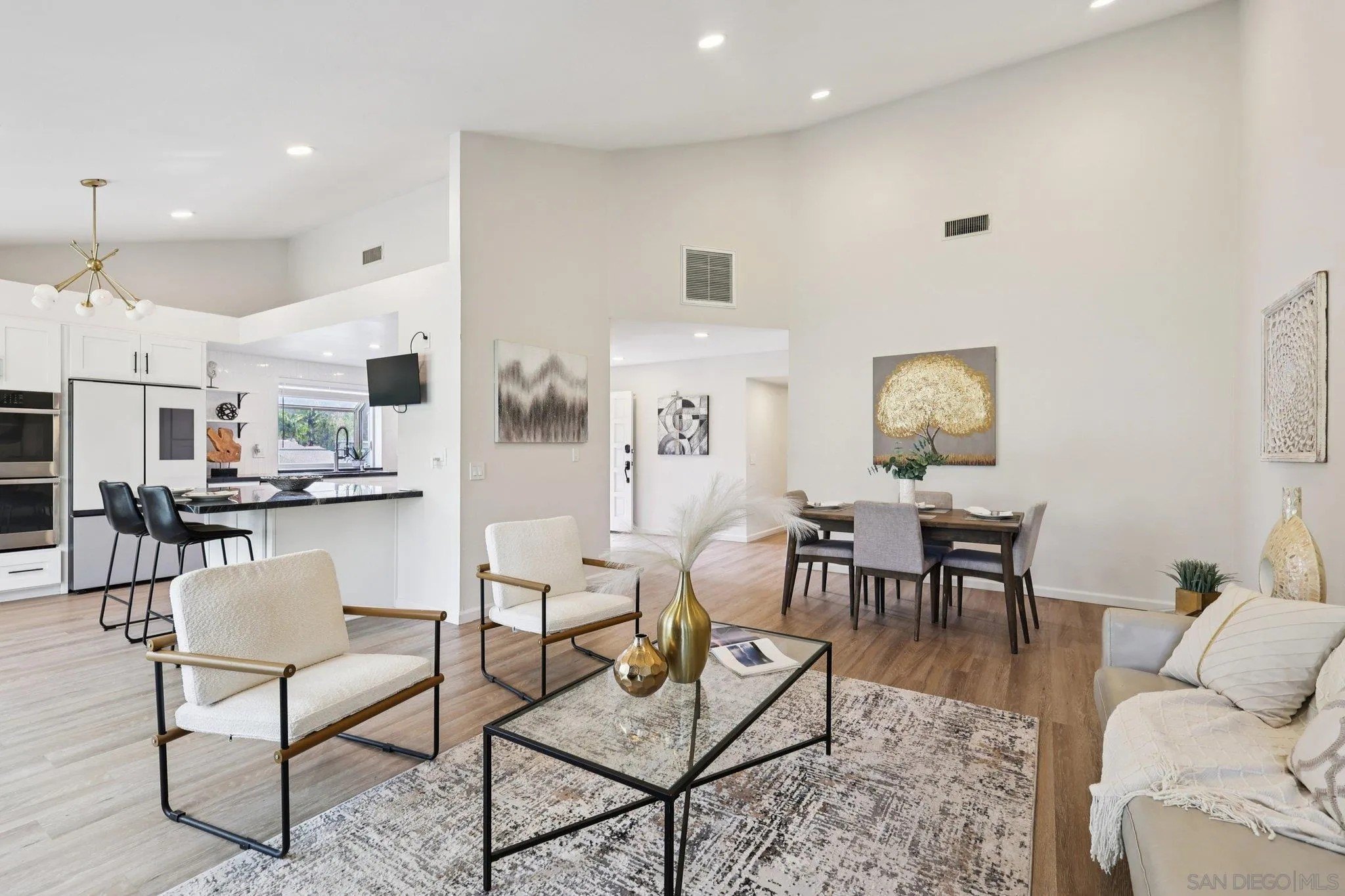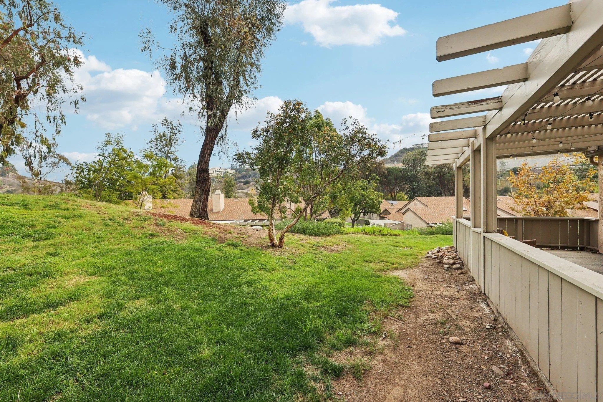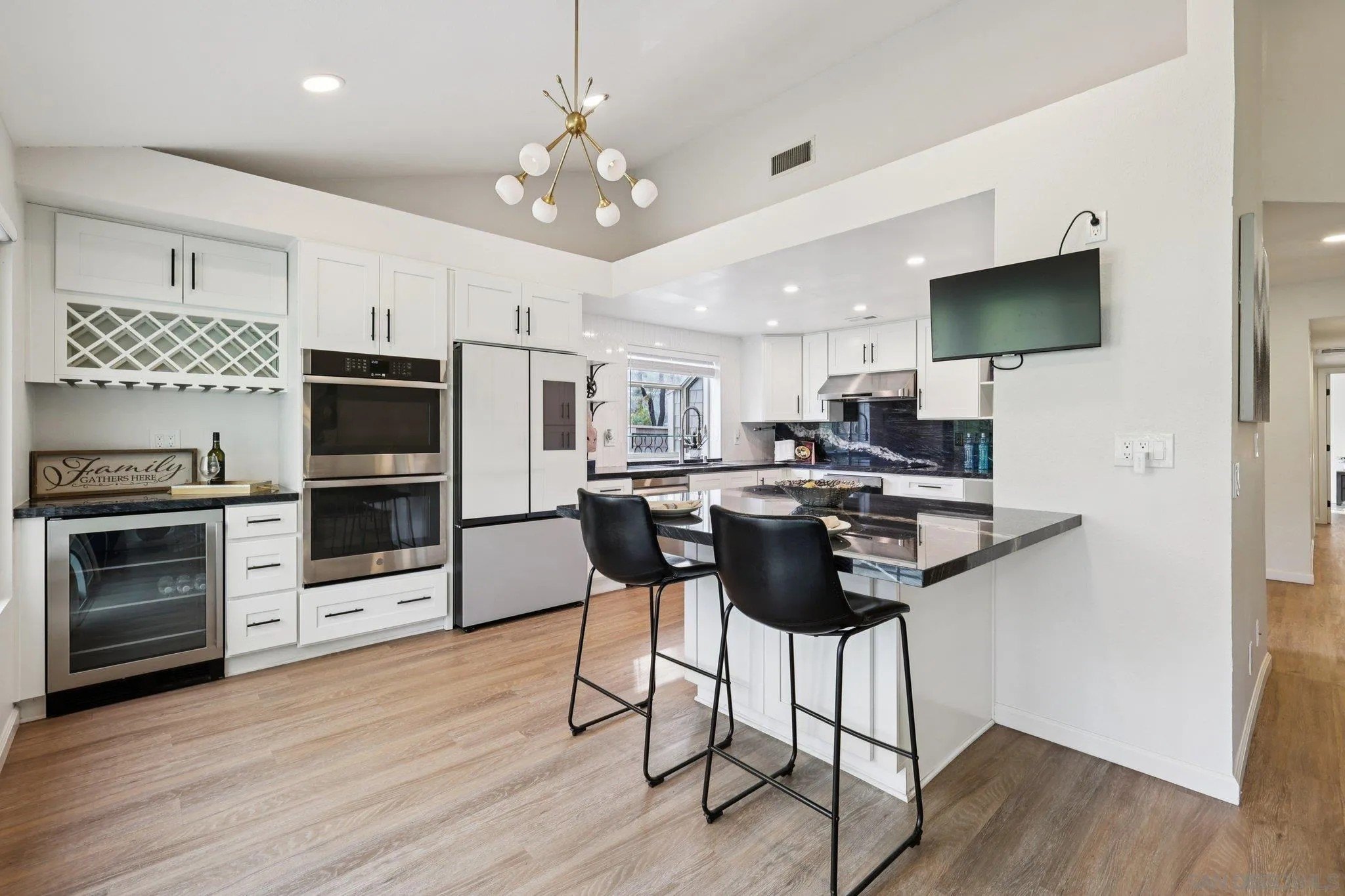RARE CORNER UNIT SINGLE STORY HOME IN SMOKE TREE COMMUNITY * BEAUTIFULLY UPGRADED * MOUNTAIN AND SDSU VIEW * PAID OFF 15 PANEL SOLAR SYSTEM EV READY * 3 PATIOS AREA * 2 CAR GARAGE! Welcome to this rare single-story corner unit in the highly desirable Smoke Tree community, offering privacy, style, and effortless indoor-outdoor living. This beautifully updated three-bedroom, two-bath home features three separate patio areas, perfect for relaxing, gardening, or entertaining while enjoying a park-like setting with open mountain and SDSU views. The house is equipped with a paid-off 15-panel Baker Electric solar system and an EV-ready outlet, ensuring low energy costs and high convenience. Step inside to a bright, open layout with vaulted ceilings, recessed LED lighting, and custom motorized LEVOLOR window treatments in the living room. The living room features a cozy fireplace and seamless flow to the large patio with amazing views. The kitchen is a true showstopper, designed for the home chef, with a large center island, white shaker cabinetry, luxurious natural quartzite countertops, deep stainless steel sink, pull-out storage, and high-end stainless steel smart appliances, including a touchscreen LG refrigerator, induction cooktop, wine fridge, double ovens, and built-in microwave.