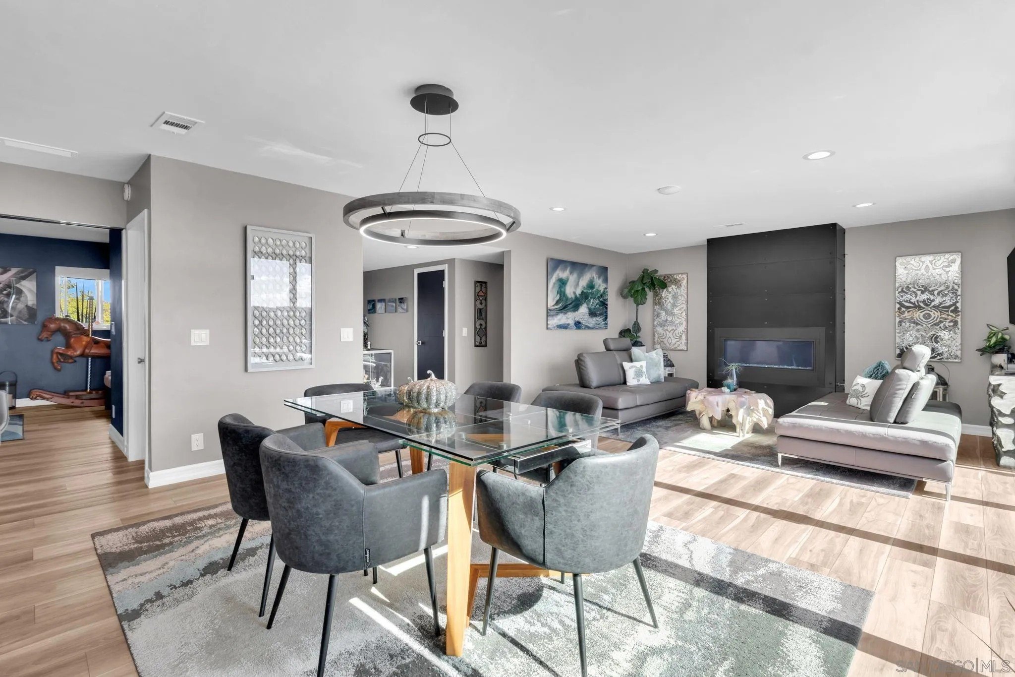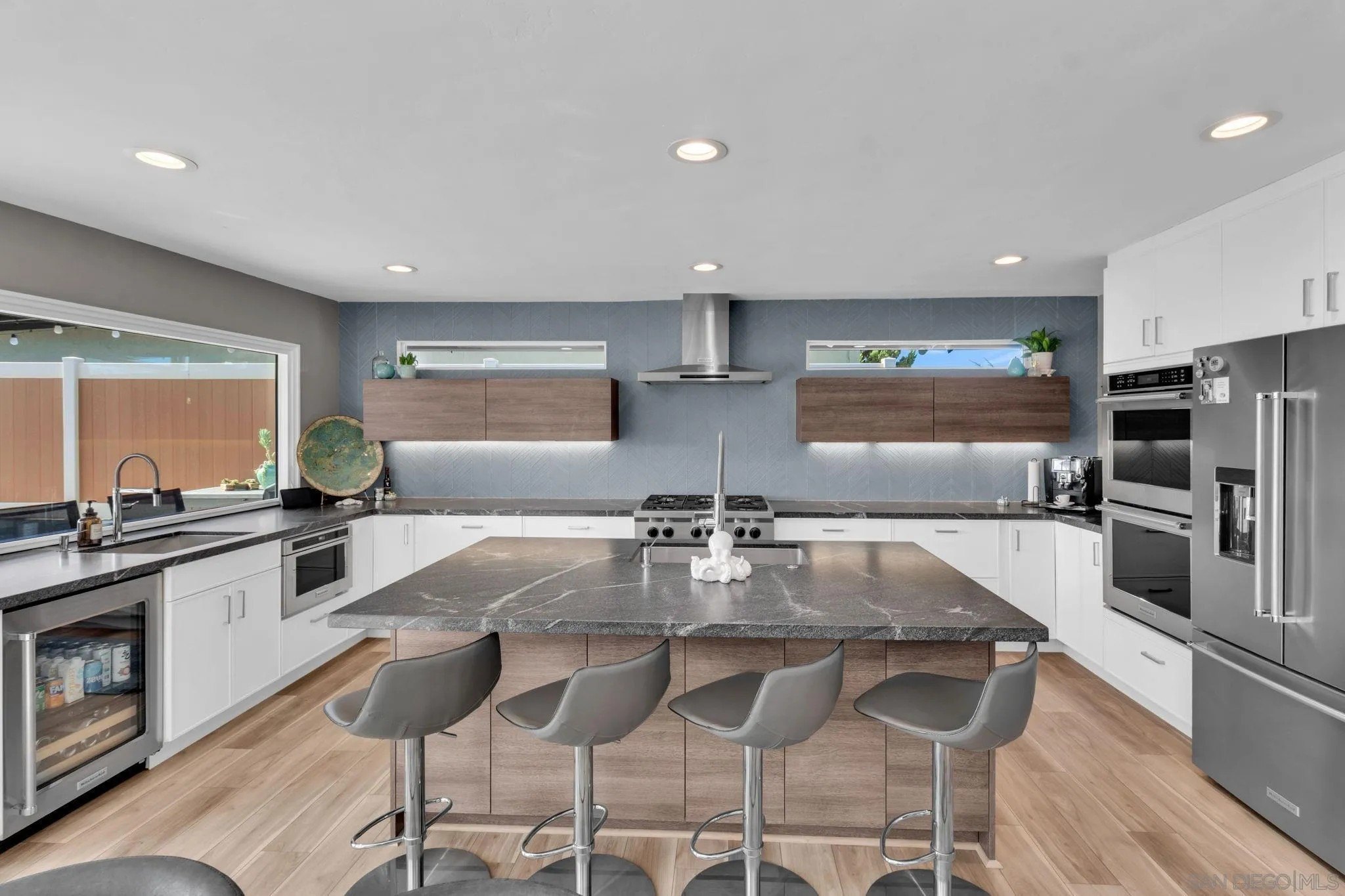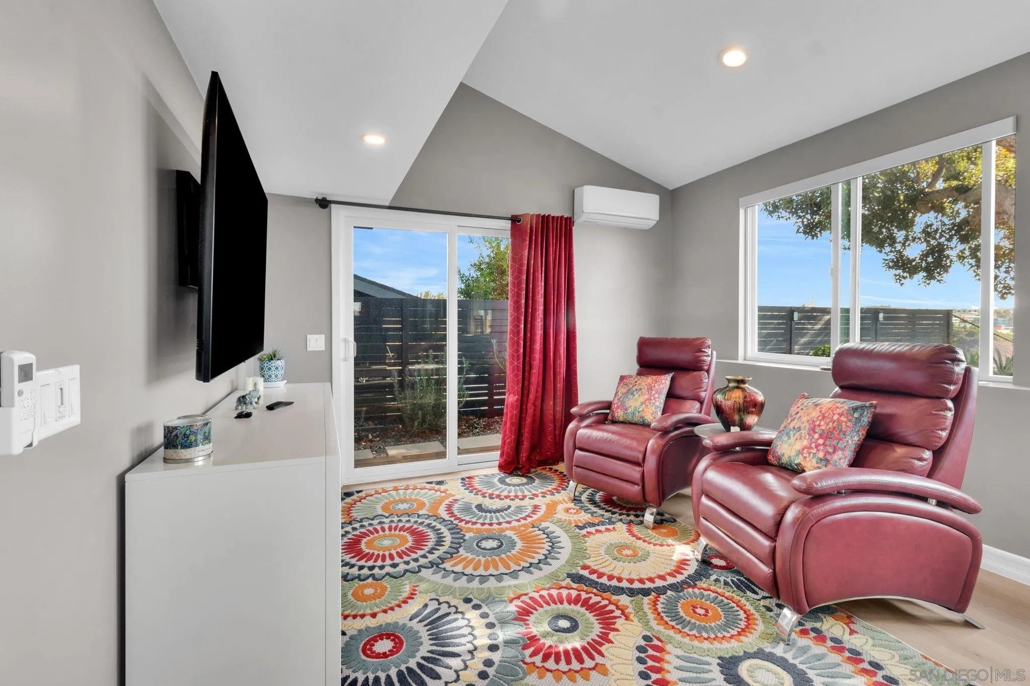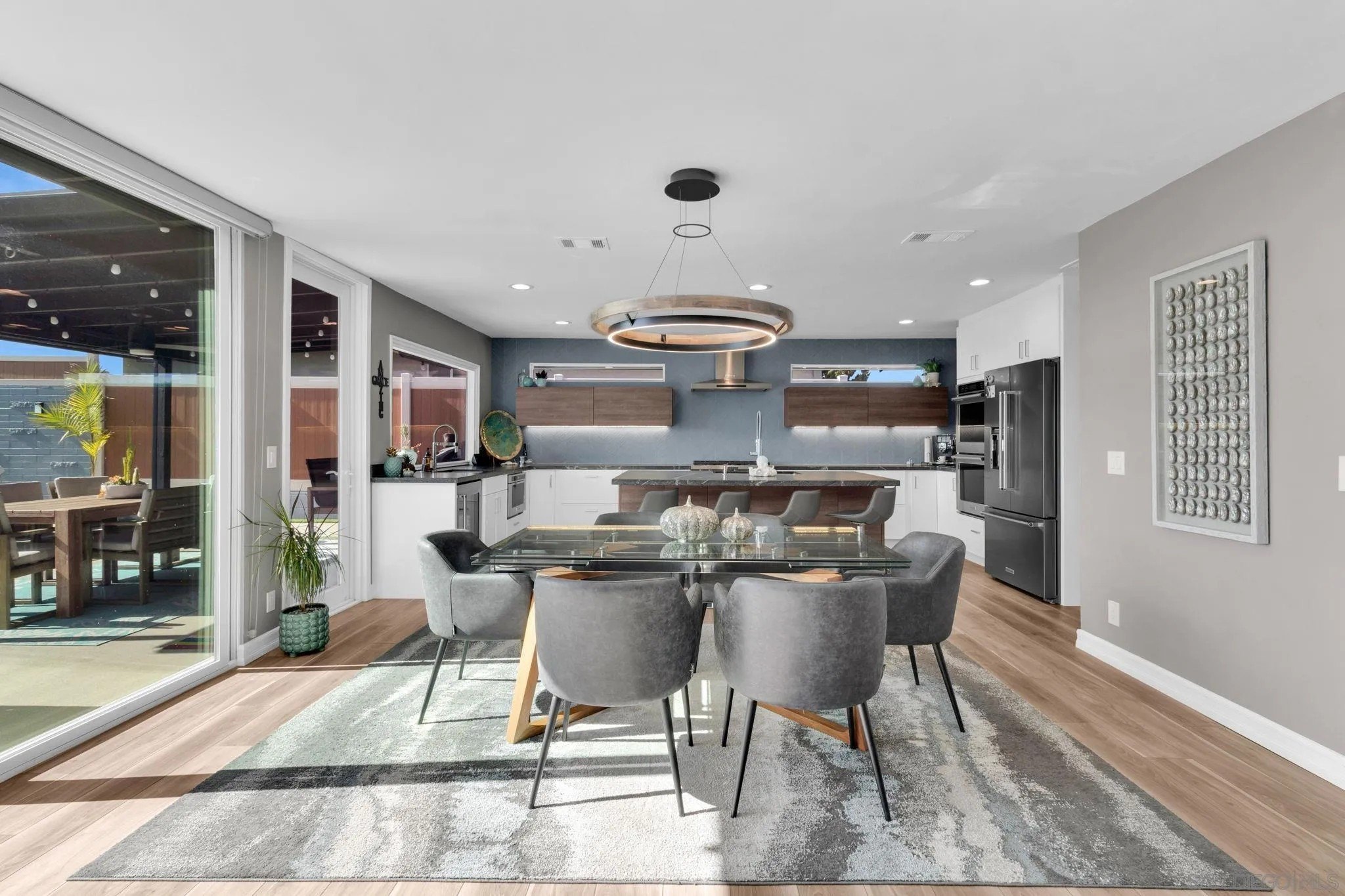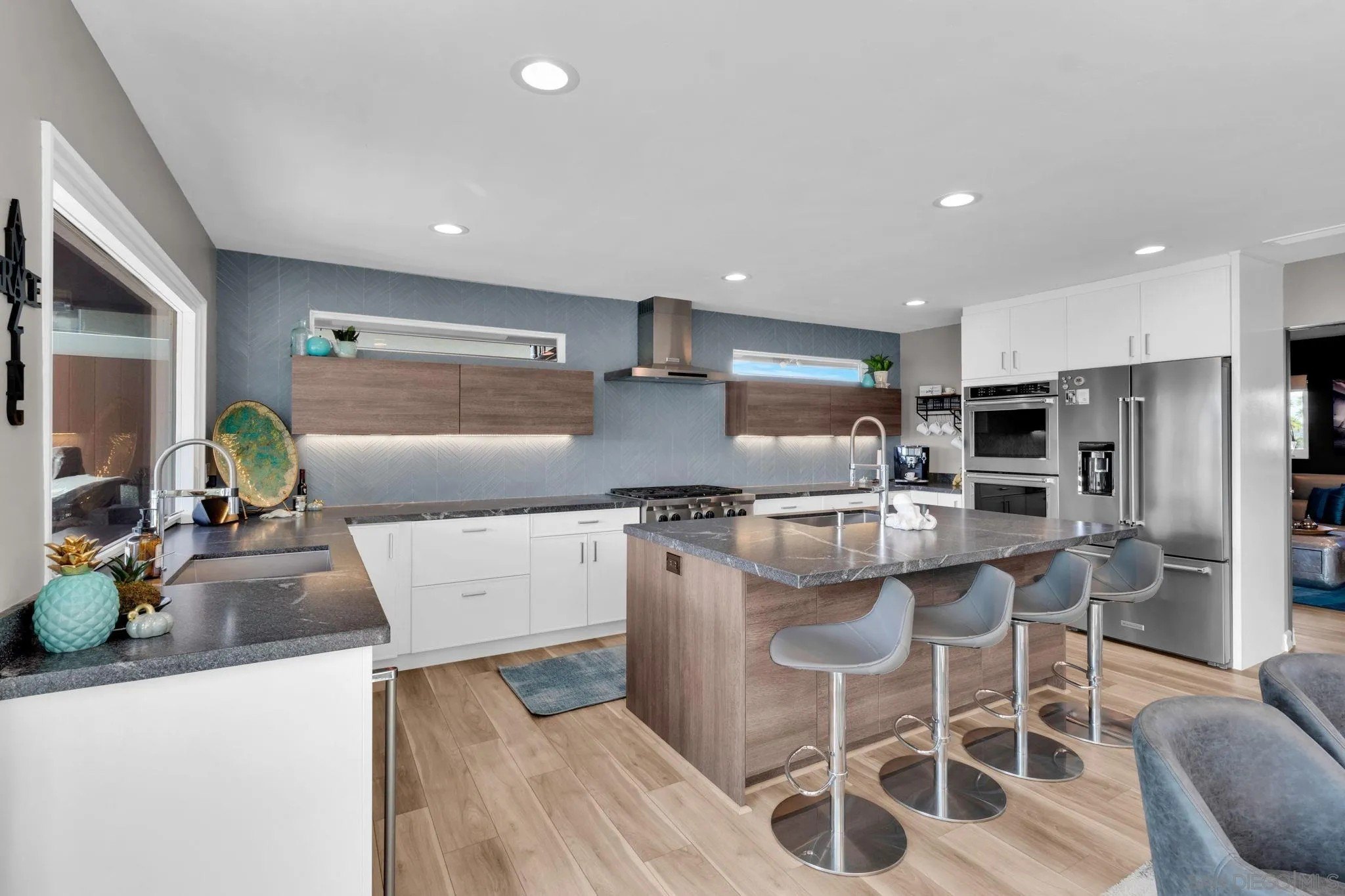 This split-level stunner is the one you've been waiting for! Located in the highly coveted Del Cerro neighborhood, this home offers everything you could possibly want and more. From the moment you arrive, the home's sleek modern design, minimalist landscaping, and tiled walkway leading to a custom pivot entry door set the tone for what's inside. Step through the front door and you're immediately welcomed by sweeping views and a beautifully tiled foyer. The open-concept main level features a spacious living room with a modern fireplace, a renovated chef's kitchen with an island, and an expansive 4-panel sliding door that seamlessly blends indoor and outdoor living. A custom pop-out kitchen window opens to an outdoor bar, perfect for year-round entertaining. The primary suite includes a remodeled en-suite bathroom and a generous walk-in closet. Additional bedrooms feature LVP flooring, custom closet doors, and upgraded light fixtures. All bathrooms have been tastefully remodeled. The newly renovated lower-level addition, currently used as an exercise room, offers a versatile flex space for a home office, studio, or secondary living area. The backyard is an entertainer's dream, with a sparkling saltwater pool and spa, covered patio, grassy area, views, and no immediate rear neighbor. Modern concrete hardscaping with turf infill adds a clean, contemporary finish. The home also includes owned solar, and the garage features epoxy flooring and EV-charging capability. Ideally positioned near freeways, shopping, and within walking distance of highly rated Hearst Elementary.