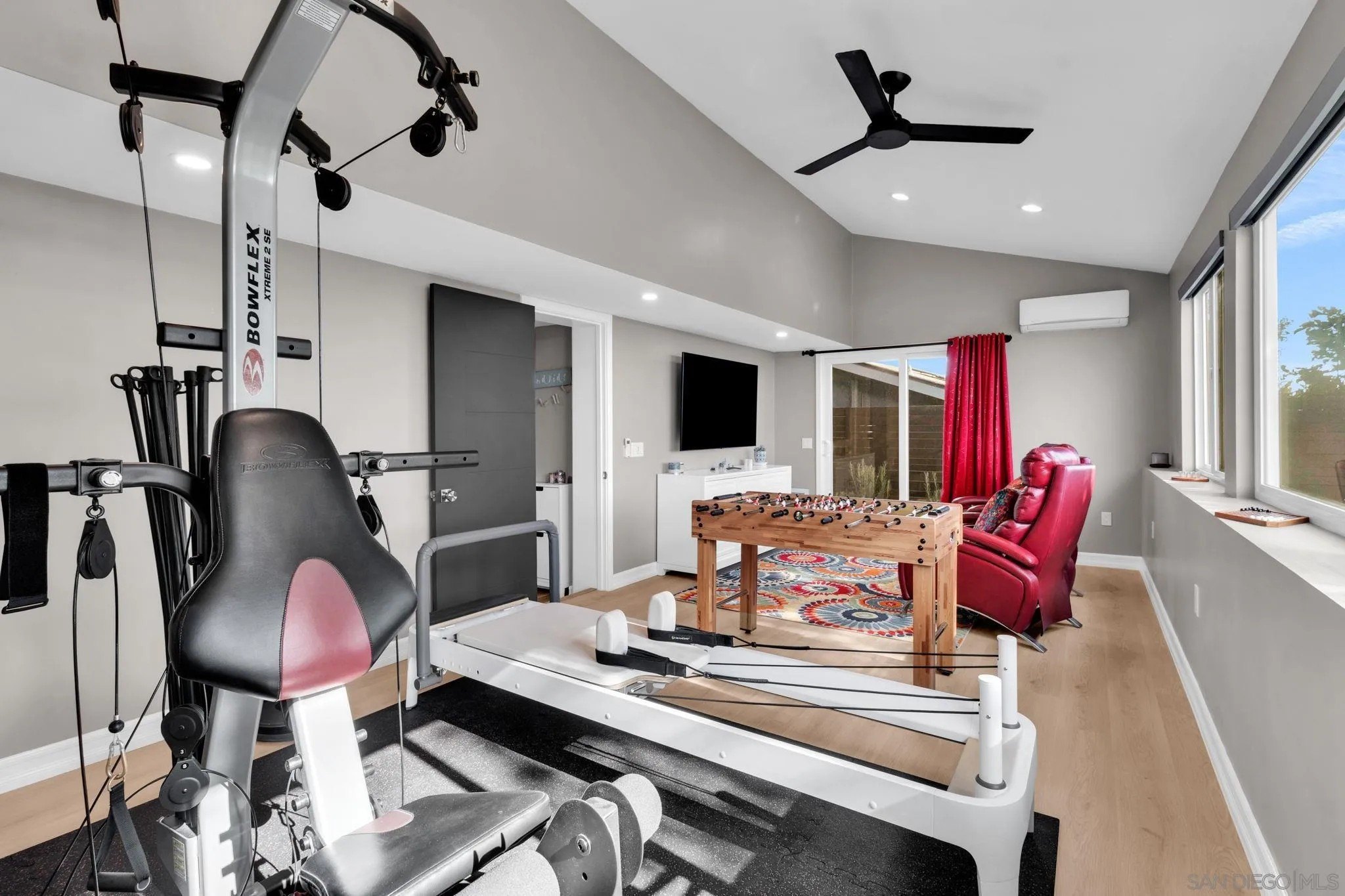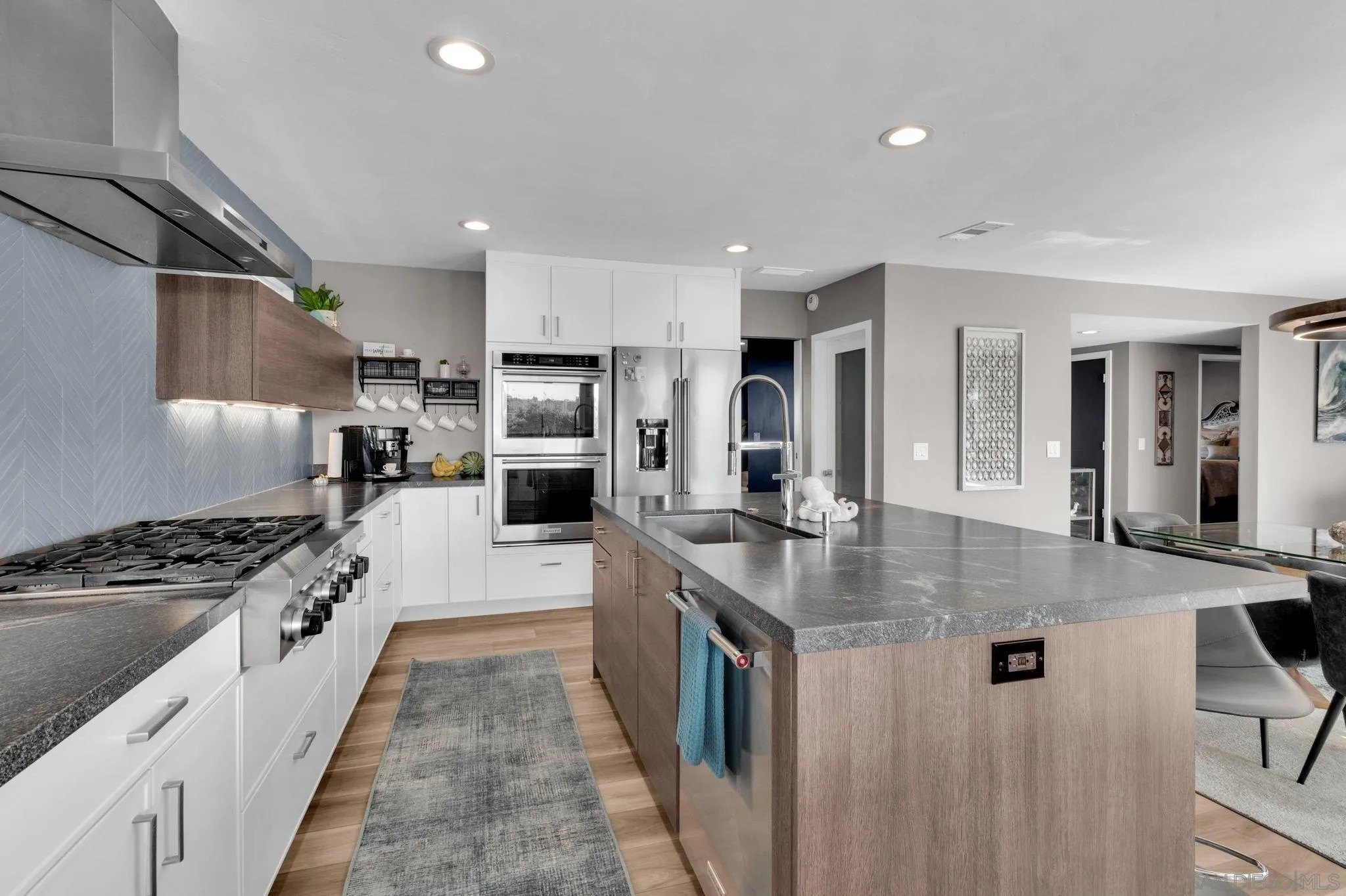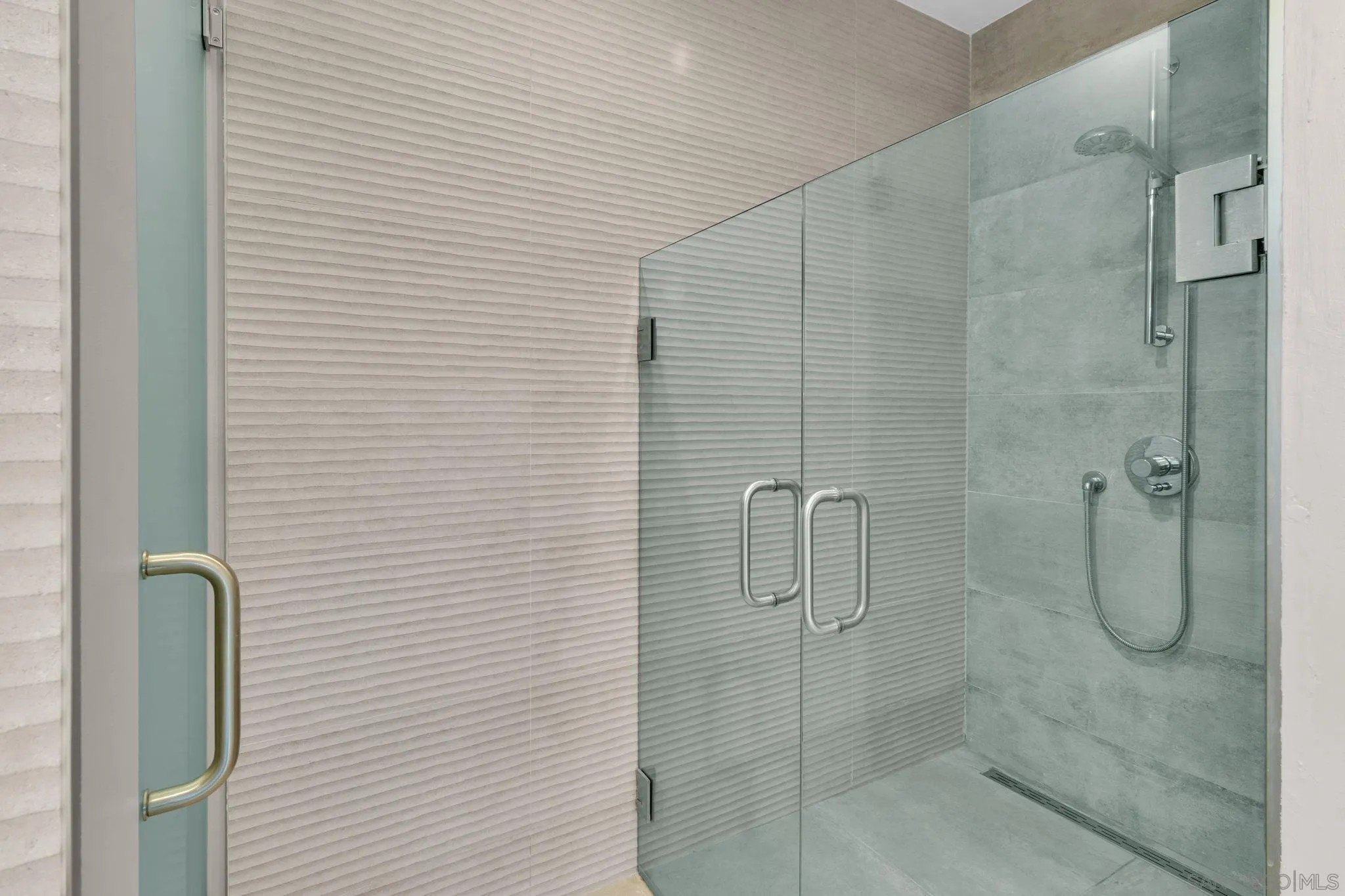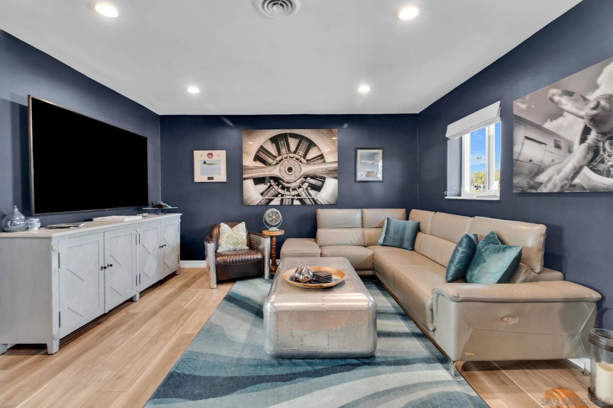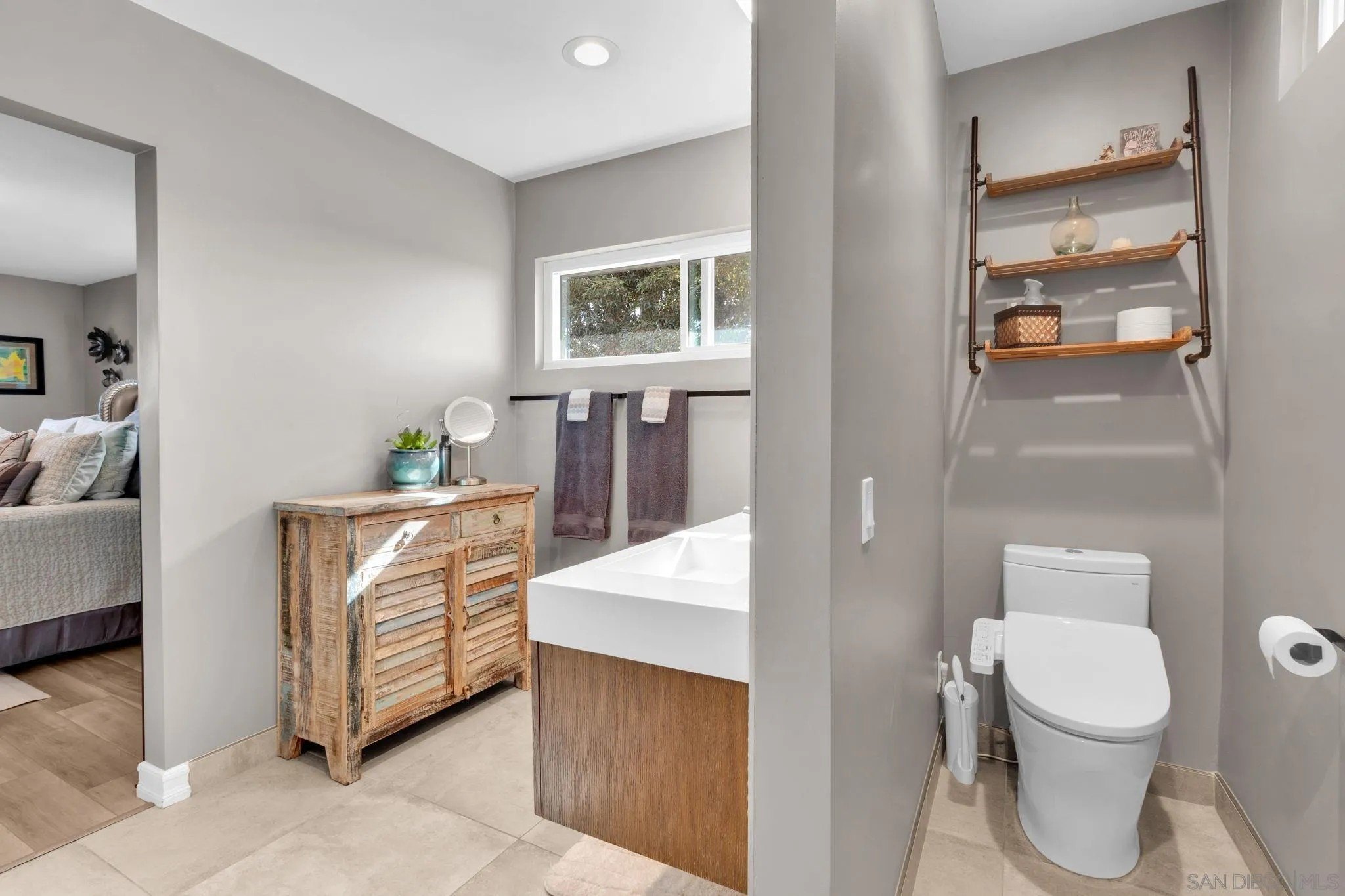 This split-level stunner is the one you've been waiting for! Located in the highly coveted Del Cerro neighborhood, this home offers everything you could possibly want and more. From the moment you arrive, the home's sleek modern design, minimalist landscaping, and tiled walkway leading to a custom pivot entry door set the tone for what's inside. Step through the front door and you're immediately welcomed by sweeping views and a beautifully tiled foyer. The open-concept main level features a spacious living room with a modern fireplace, a renovated chef's kitchen with an island, and an expansive 4-panel sliding door that seamlessly blends indoor and outdoor living. A custom pop-out kitchen window opens to an outdoor bar, perfect for year-round entertaining. The primary suite includes a remodeled en-suite bathroom and a generous walk-in closet. Additional bedrooms feature LVP flooring, custom closet doors, and upgraded light fixtures. All bathrooms have been tastefully remodeled. The newly renovated lower-level addition, currently used as an exercise room, offers a versatile flex space for a home office, studio, or secondary living area. The backyard is an entertainer's dream, with a sparkling saltwater pool and spa, covered patio, grassy area, views, and no immediate rear neighbor. Modern concrete hardscaping with turf infill adds a clean, contemporary finish. The home also includes owned solar, and the garage features epoxy flooring and EV-charging capability. Ideally positioned near freeways, shopping, and within walking distance of highly rated Hearst Elementary.