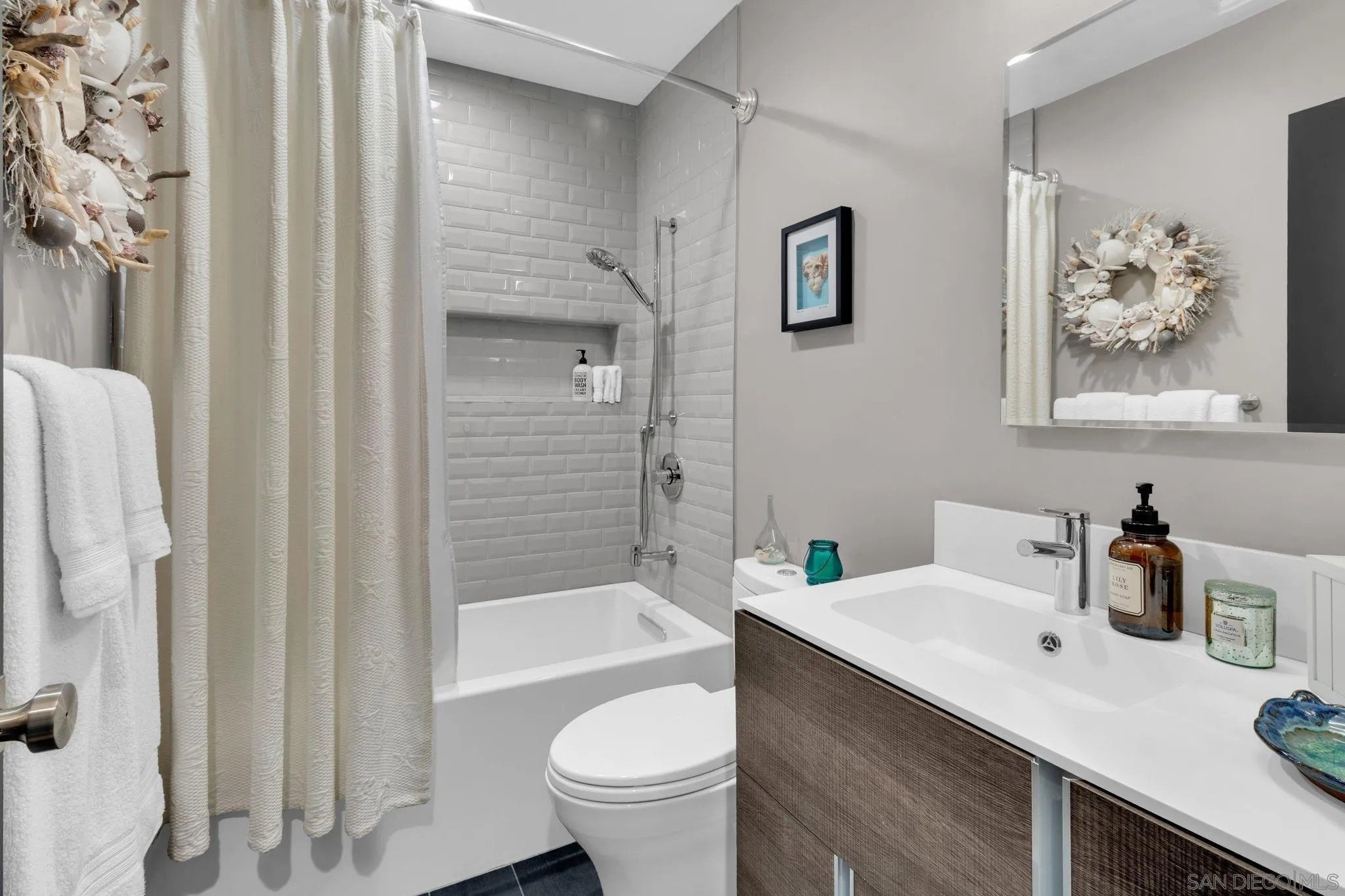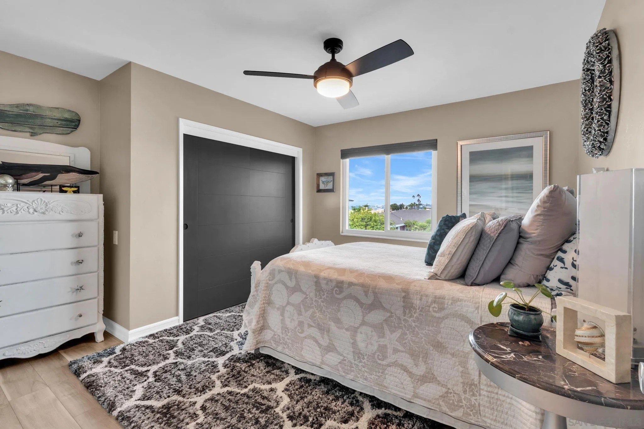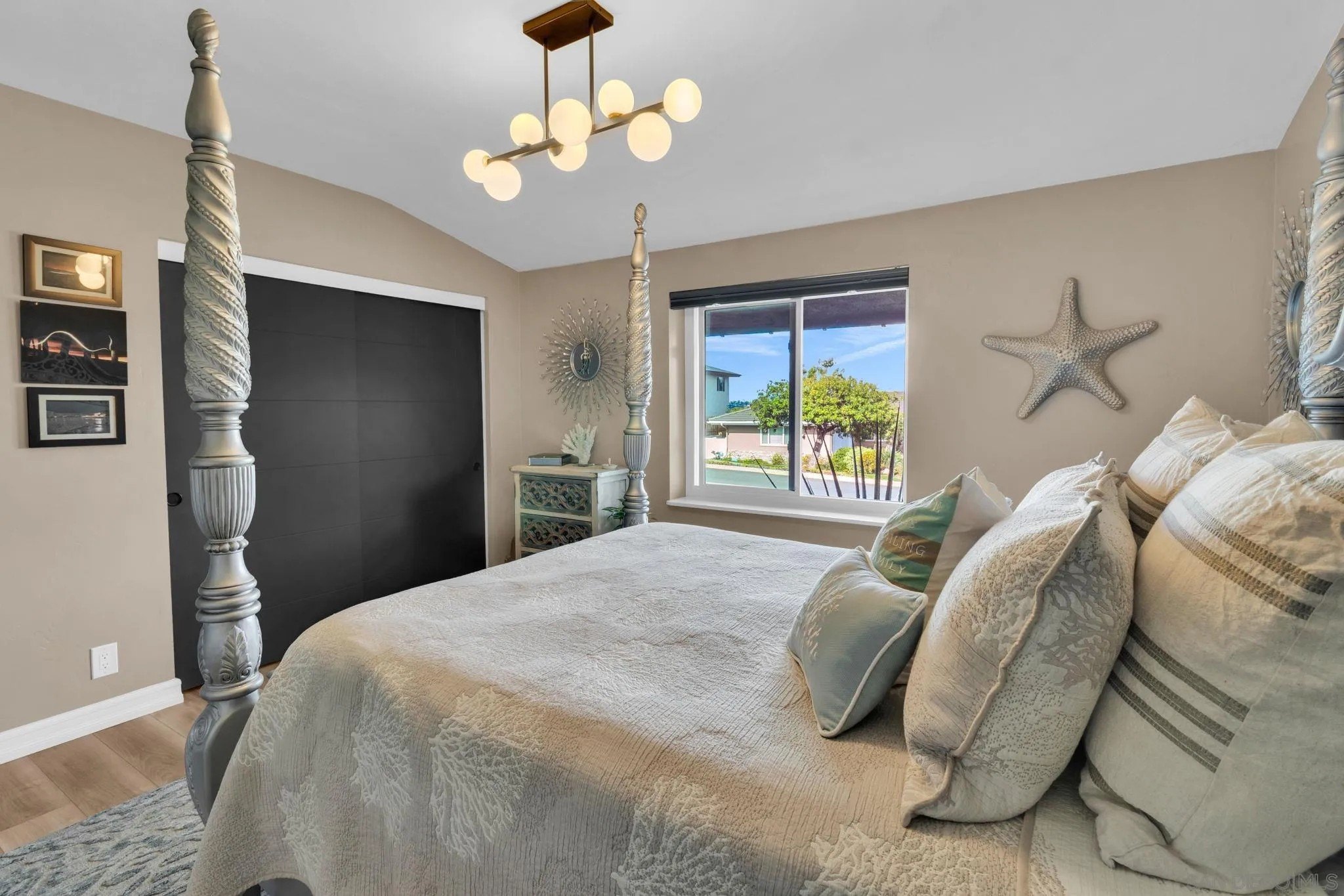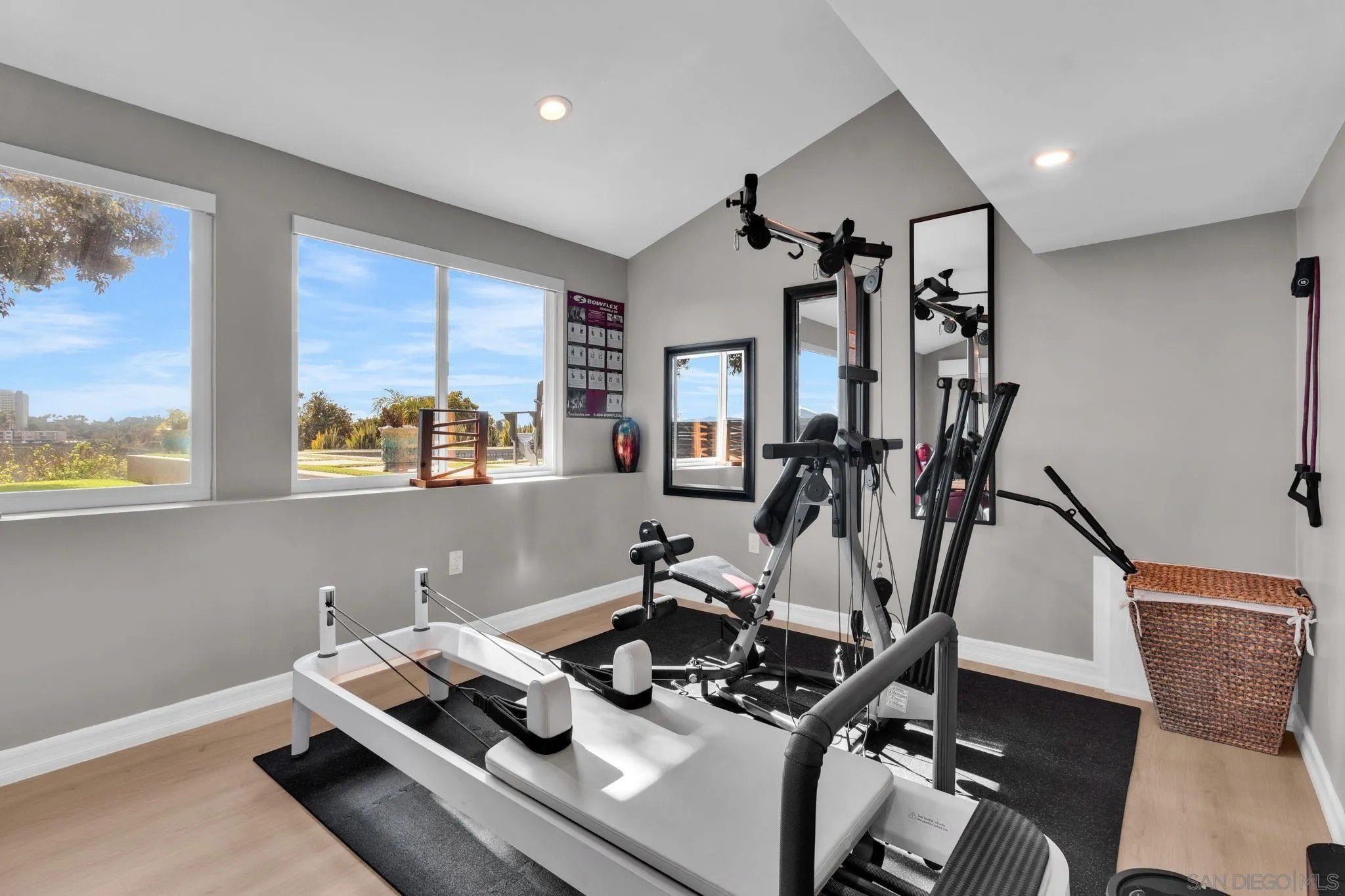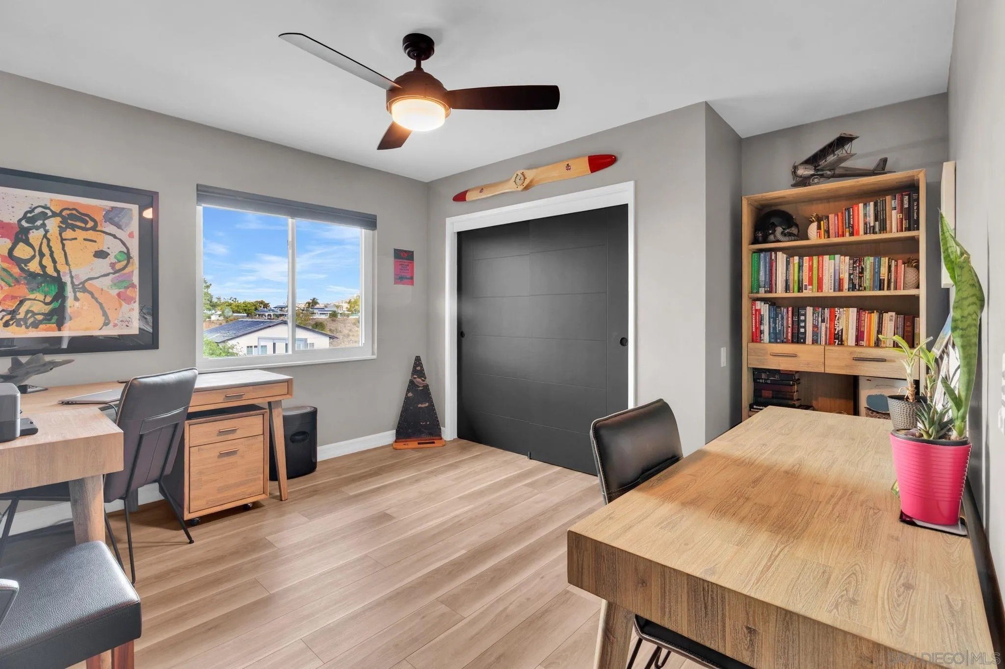 This split-level stunner is the one you've been waiting for! Located in the highly coveted Del Cerro neighborhood, this home offers everything you could possibly want and more. From the moment you arrive, the home's sleek modern design, minimalist landscaping, and tiled walkway leading to a custom pivot entry door set the tone for what's inside. Step through the front door and you're immediately welcomed by sweeping views and a beautifully tiled foyer. The open-concept main level features a spacious living room with a modern fireplace, a renovated chef's kitchen with an island, and an expansive 4-panel sliding door that seamlessly blends indoor and outdoor living. A custom pop-out kitchen window opens to an outdoor bar, perfect for year-round entertaining. The primary suite includes a remodeled en-suite bathroom and a generous walk-in closet. Additional bedrooms feature LVP flooring, custom closet doors, and upgraded light fixtures. All bathrooms have been tastefully remodeled. The newly renovated lower-level addition, currently used as an exercise room, offers a versatile flex space for a home office, studio, or secondary living area. The backyard is an entertainer's dream, with a sparkling saltwater pool and spa, covered patio, grassy area, views, and no immediate rear neighbor. Modern concrete hardscaping with turf infill adds a clean, contemporary finish. The home also includes owned solar, and the garage features epoxy flooring and EV-charging capability. Ideally positioned near freeways, shopping, and within walking distance of highly rated Hearst Elementary.