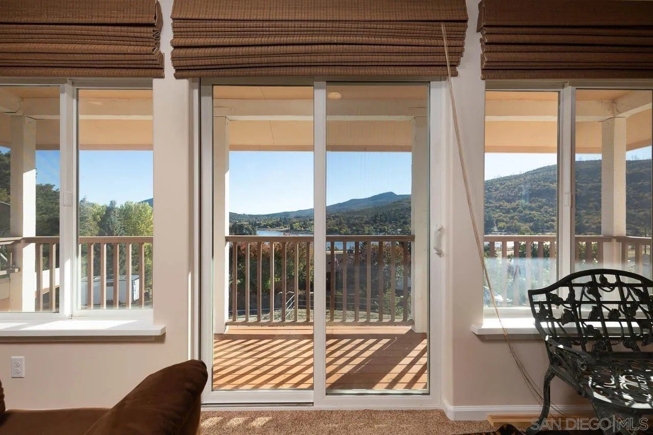 This beautifully maintained, high-quality home offers breathtaking views of Cuyamaca Lake. From the comfort of your own living space, you can enjoy the daily sights of boating and fishing on the lake, with the sunlight glistening off the water. During winter, picturesque weather rolls in across the nearby mountain tops, adding to the home's unique charm. The home is meticulously built with numerous special features. Enhanced insulation throughout the dwelling ensures that forced air heating and A/C are rarely needed. Instead, an efficient freestanding woodstove keeps the house warm during colder days. Large picture windows flood the home with natural light and highlight the scenic surroundings. The main floor boasts elegant porcelain tile flooring, while lighted ceiling fans are installed throughout the house for added comfort. The kitchen is equipped with attractive granite countertops. The spacious primary bedroom is designed for comfort and relaxation, featuring sliding doors that lead out to a private deck. From this deck, you can enjoy stunning views of the lake, making it an ideal spot to unwind and take in the natural beauty surrounding the home. Adding to the sense of luxury, the primary bath includes a spa tub perfect for soaking and relaxing after a long day. The large two-car garage not only offers ample parking but also provides additional storage space. For horse enthusiasts, the property is set up with pipe corrals and a turnout area. The home is accessible via a county-maintained road, ensuring easy and reliable access year-round. Approx. 8 miles to Julian.