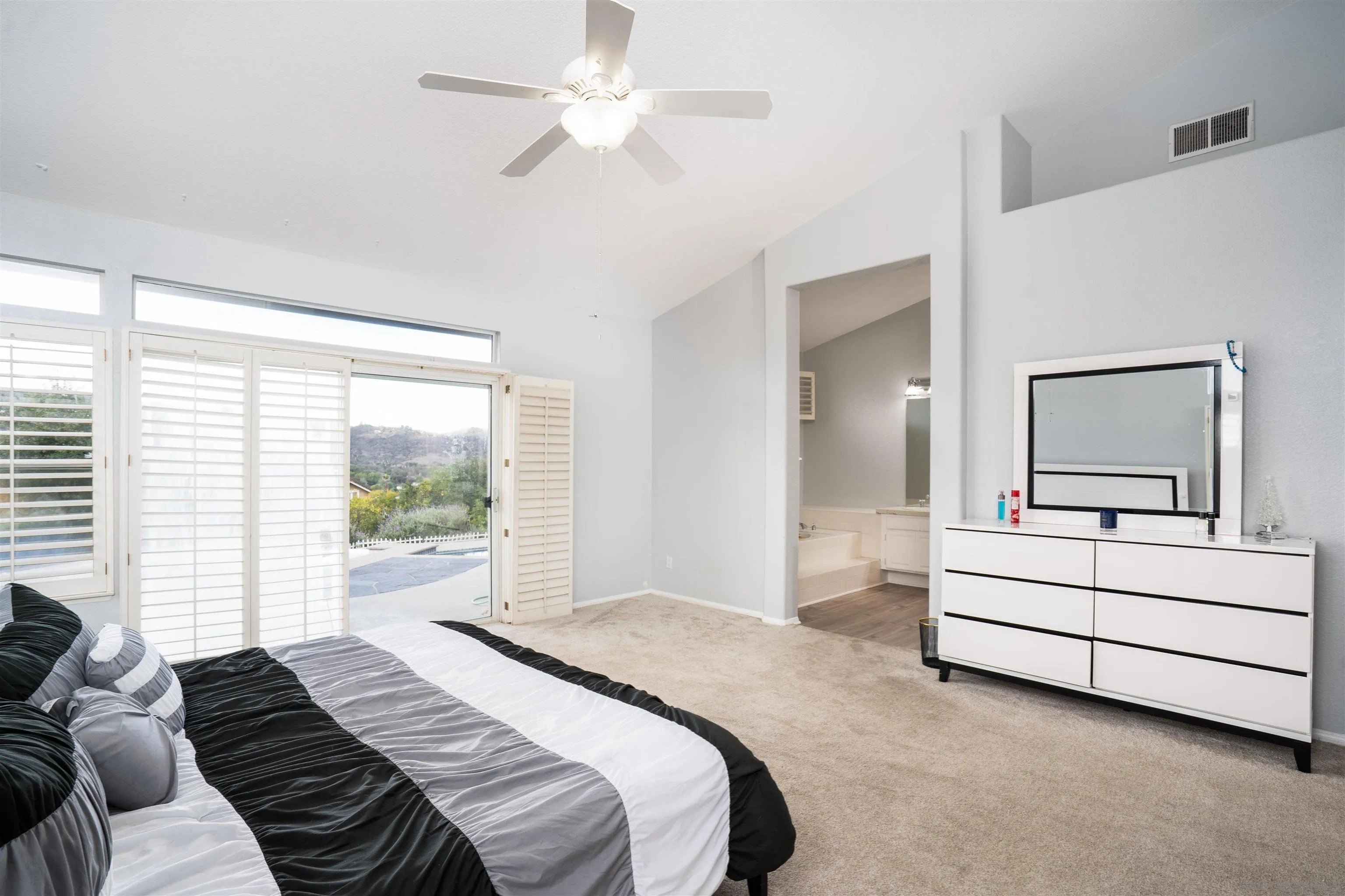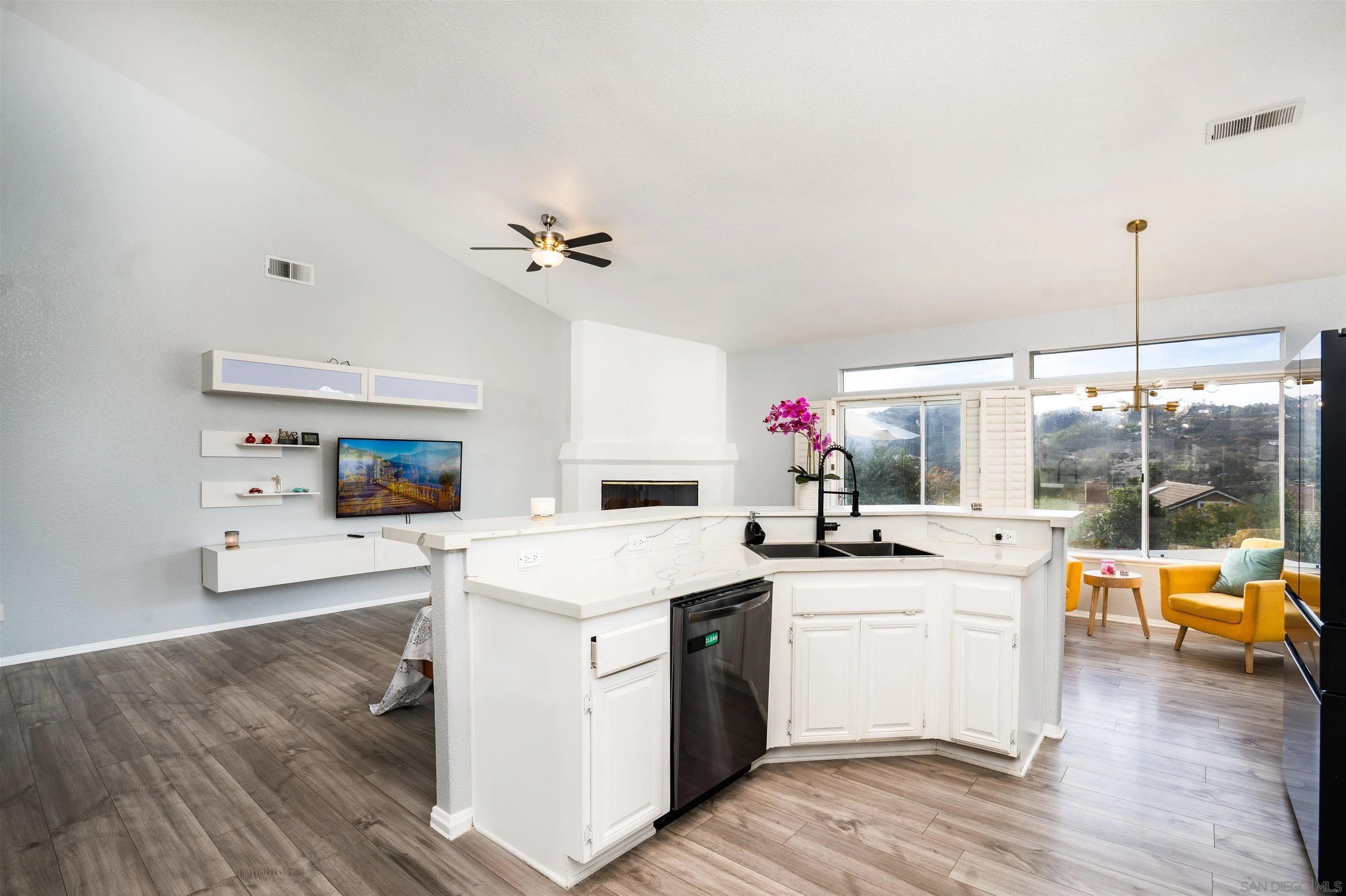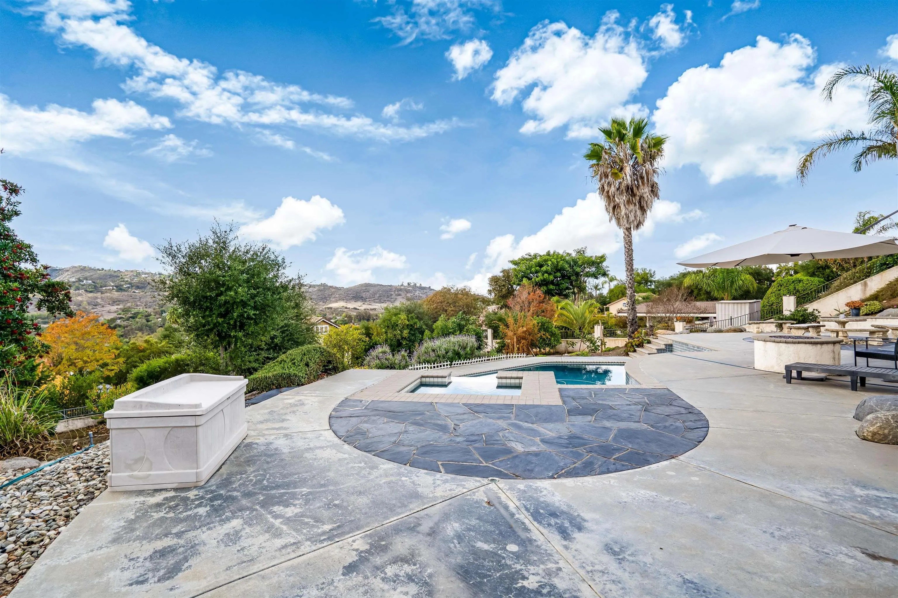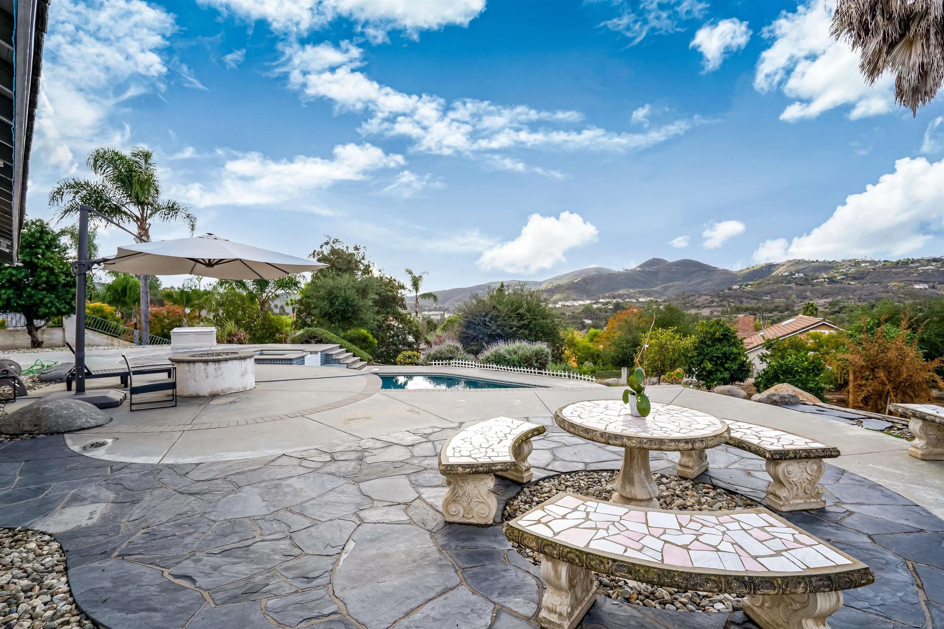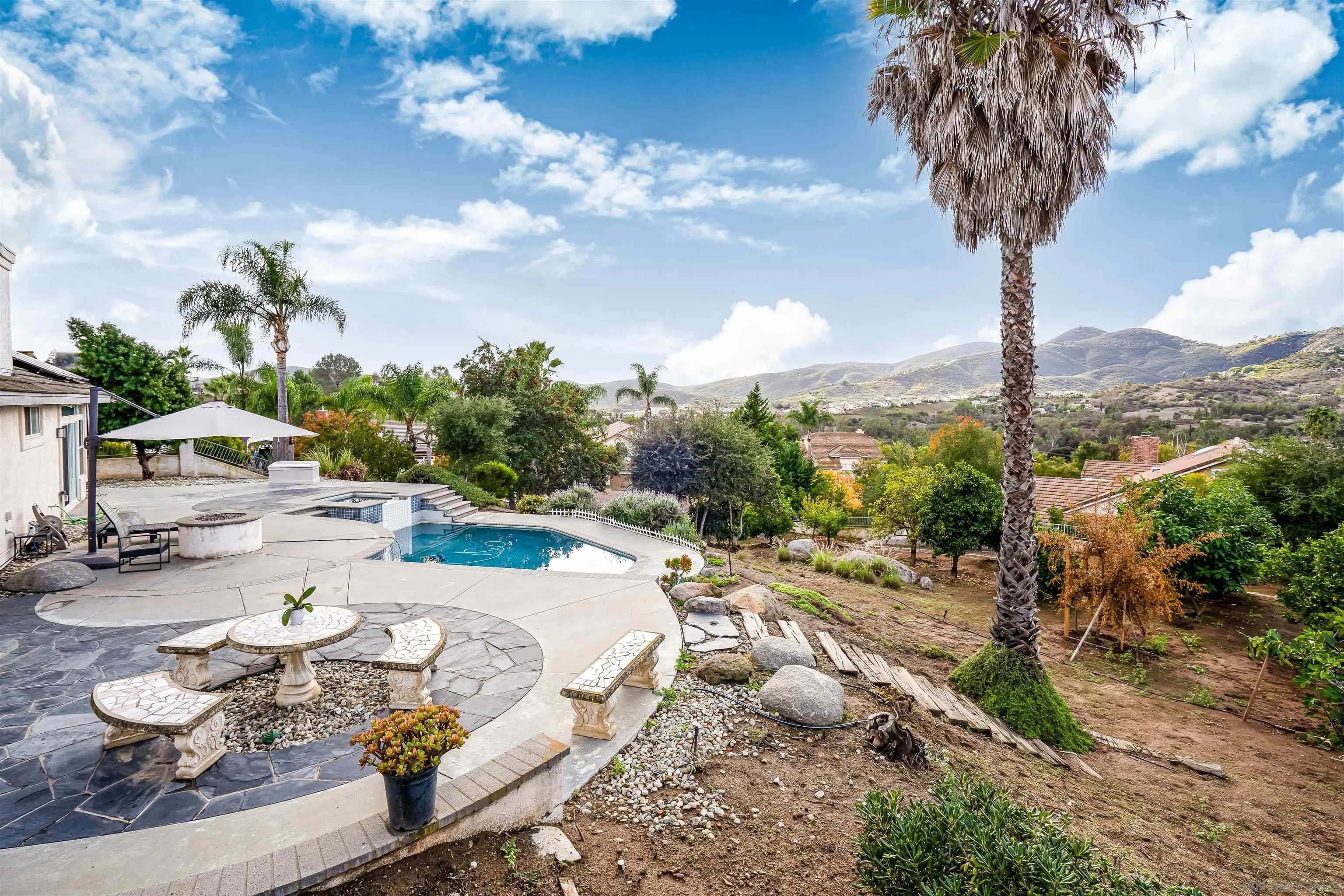 Welcome to Oak View Way, a beautifully upgraded home nestled in the highly sought-after Hidden Trails community of Escondido. This residence captures the essence of Southern California living with open, airy interiors and seamless indoor-outdoor flow. Enjoy a chef-inspired kitchen featuring elegant finishes and modern appliances, perfect for entertaining or quiet evenings in. Large windows frame serene mountain views, while the landscaped backyard offers a peaceful retreat with a covered patio, mature greenery, and space for gatherings. Additional features include owned solar panels, a whole-house fan for enhanced energy efficiency, and an EV charger, providing modern convenience and sustainability. Located near hiking trails, scenic parks, and top-rated schools, this property blends comfort, elegance, and convenience in a truly desirable location.