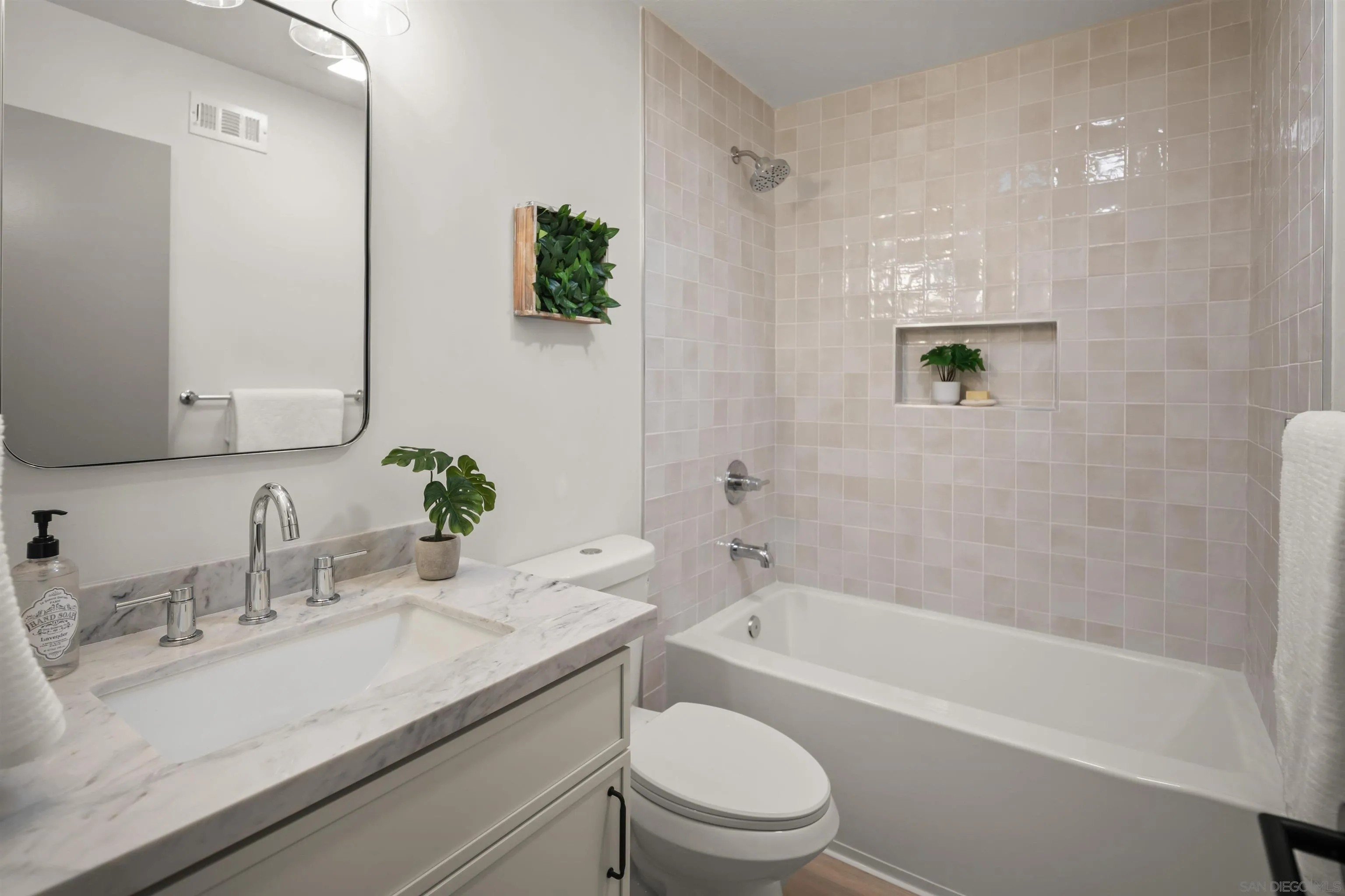 Gorgeously renovated and truly turnkey, this home shines-ready to welcome its next owners. Ring in the new year in style with a thoughtfully executed designer remodel featuring newer solar panels and a newer roof for enhanced energy efficiency and long-term peace of mind. Recent upgrades include wide oak vinyl plank flooring, handcrafted Bedrosian tile, quartz countertops, impeccably renovated bathrooms, and brand-new appliances. With 4 bedrooms and 2 bathrooms, the home blends modern comfort with everyday practicality. Located in the heart of Mira Mesa-an ideal, central neighborhood celebrated for its excellent schools, vibrant community, and unmatched convenience-this property offers the perfect place to put down roots. Move right in and start enjoying the best of the area from day one.
