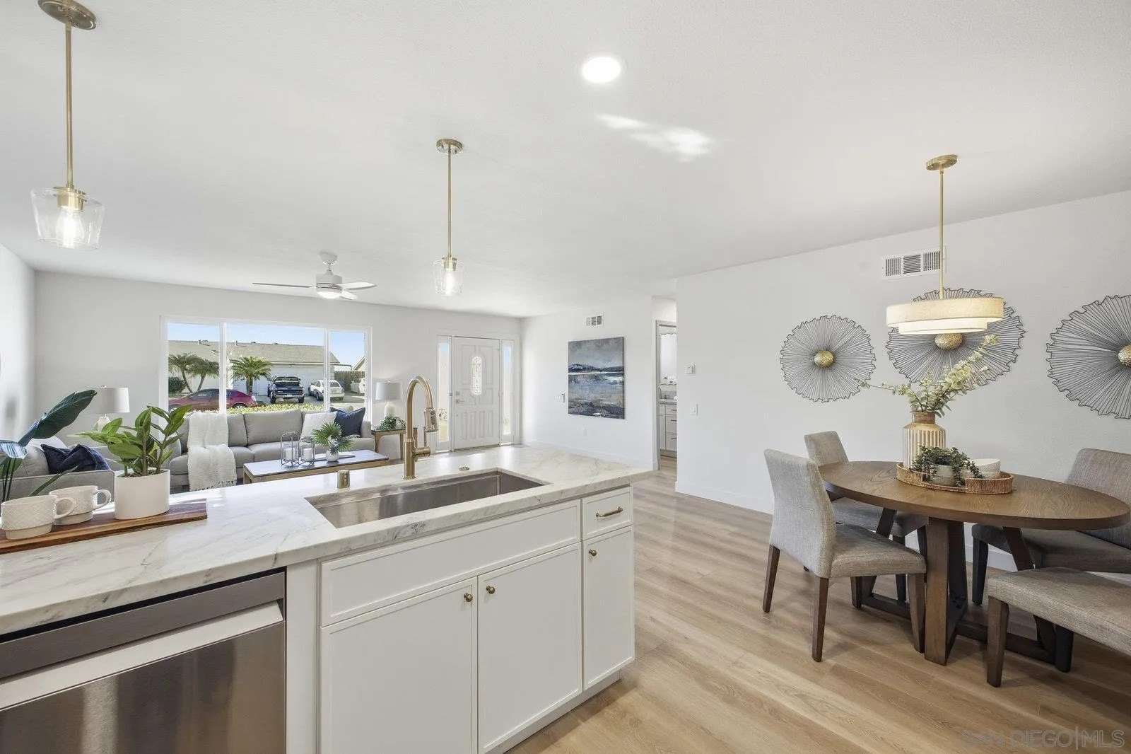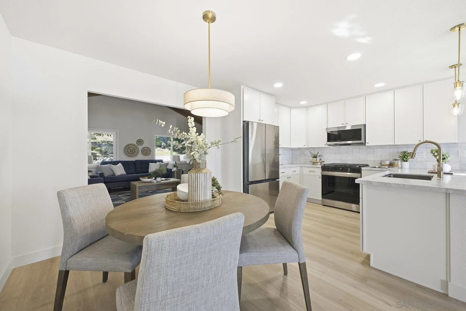 Experience thoughtful renovations throughout this charming home, complete with a 300 sq ft bonus room and a brand-new roof! Designer touches elevate every space-most notably in the kitchen, which showcases soft-close Alabaster slim-shaker cabinets, brushed bronze hardware, new appliances, elegant pendant lighting, and more. Both common living areas connect seamlessly to the kitchen, creating an effortless flow for everyday living and entertaining. The impressive bonus room features vaulted wood ceilings that are sure to wow your guests. Each bathroom has a cohesive design with matching Alabaster vanities, flanked brushed bronze lighting, beautifully tiled surrounds, and convenient tile niches. Additional upgrades include all-new windows, interior and exterior paint, oak-toned luxury vinyl plank flooring, recessed LED lighting, and stylish new fan and light fixtures. Outside, both the front and backyard offer generous space for entertaining and relaxation, enhanced by brand-new sod and fresh ground cover.