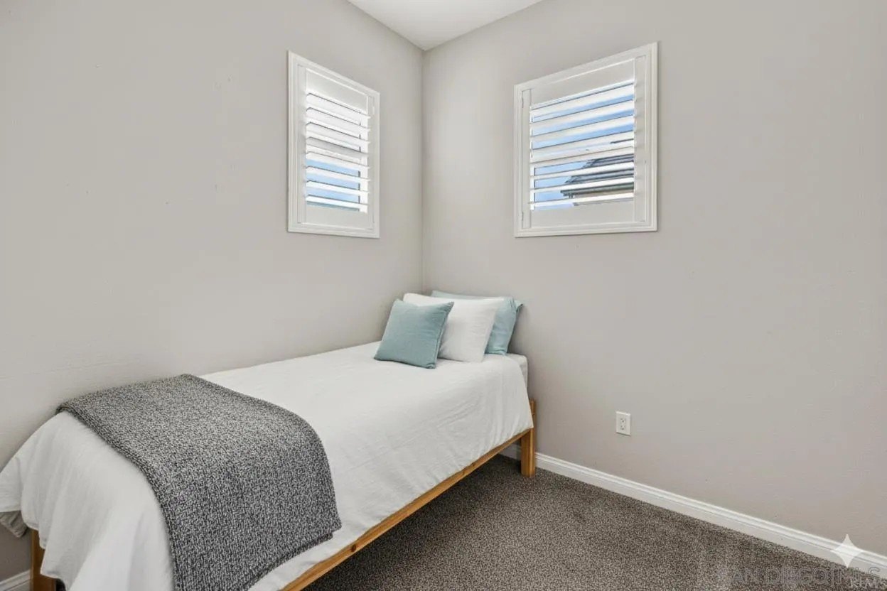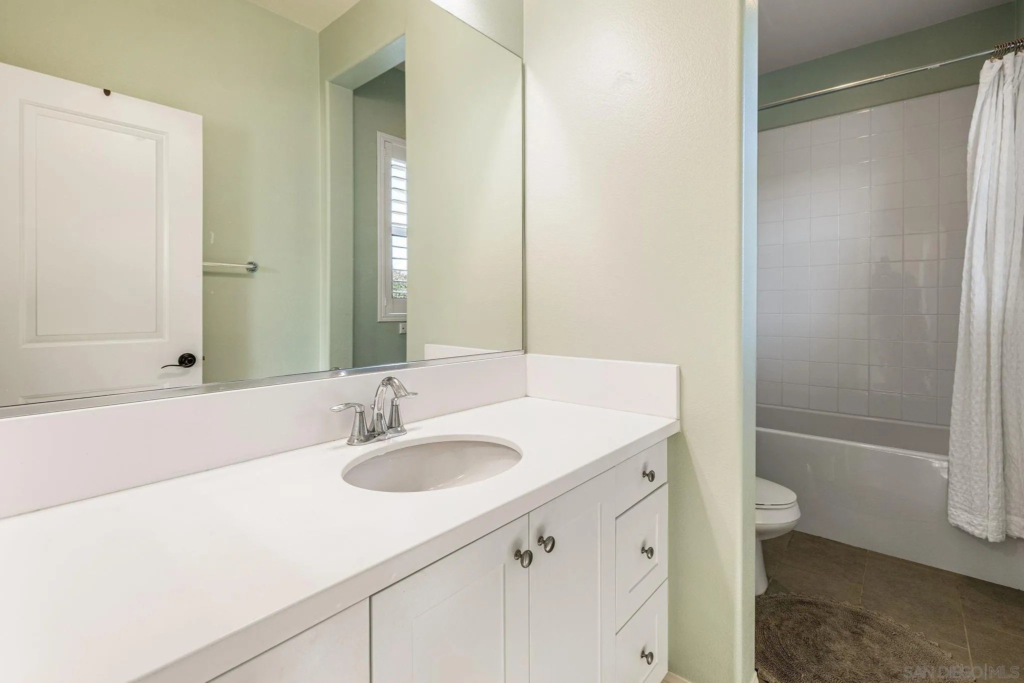 Welcome to this charming and highly upgraded residence in the desirable Harmony Grove Village, perfectly designed for modern living. The heart of the home is a chef-inspired kitchen featuring granite counters, abundant cabinet and counter space, and a huge central island with comfortable bar seating, seamlessly opening to a sun-drenched, large great room boasting vaulted ceilings and fantastic natural light. The main living areas showcase beautiful hardwood flooring, adding warmth and elegance throughout. Practicality meets convenience with a desirable downstairs bedroom and full bath, ideal for guests or multi-generational living. Upstairs, the oversized master suite provides a serene retreat, complete with an en suite bathroom featuring his-and-hers sinks, a spacious step-in shower, and a private commode area. A major highlight is the functional loft area that has been thoughtfully finished to create a small additional room, offering flexibility as a potential fourth bedroom, home office, or gym. The home is future-ready and energy-efficient, equipped with a solar system and a Tesla Powerwall battery. Further amenities include an upstairs laundry room and an attached two-car garage. The fenced backyard is a true low-maintenance oasis, designed for outdoor enjoyment with a fantastic hangout area featuring a firepit and pavers, alongside a pet and kid-friendly turf area. Living in Harmony Grove Village grants access to exceptional community amenities, including multiple parks, a heated community pool, a dog park, and an extensive network of walking and hiking trails.