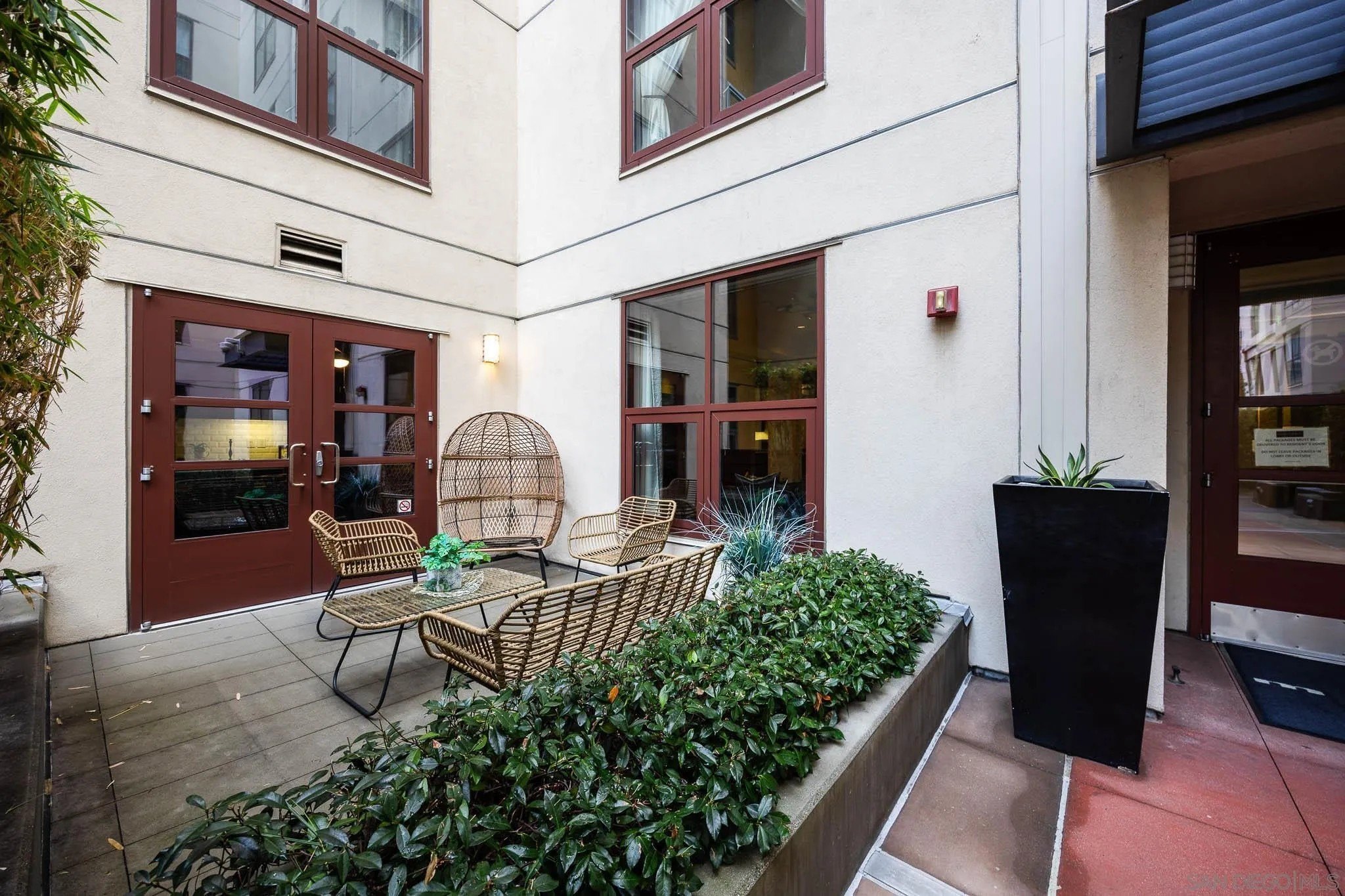 Welcome to Metrome, a contemporary, 8-story, mid-rise residence offering all the vibrant Downtown life San Diego has to offer. The building is just two blocks from Petco Park, walking distance to concert venues, grocery stores, the Gaslamp Quarter and the Marina District, and less than a mile from both Balboa Park and Bayfront Recreation Areas. Once home, you can leave your car in your deeded parking space and enjoy the city life, yet still have the ability to dart out of town for travel or a daily commute quickly, with easy access to the 5, 163 and 94 freeways. Community amenities make life easy with secure, gated access, a peaceful courtyard, fitness center, private storage space (plus extra parking spaces for rent), secure bicycle storage, and a clubhouse for entertaining larger parties. The unit itself is above the fray on the 6th floor looking down on the action and out to the east bringing in abundant natural light. It is nicely appointed with granite countertops, stainless steel appliances, and ample maple-clad cabinet space. The "optional" second bedroom could easily serve as a proper bedroom, flex space for guests, or highly productive work from home space. You'll want to act fast on this one!