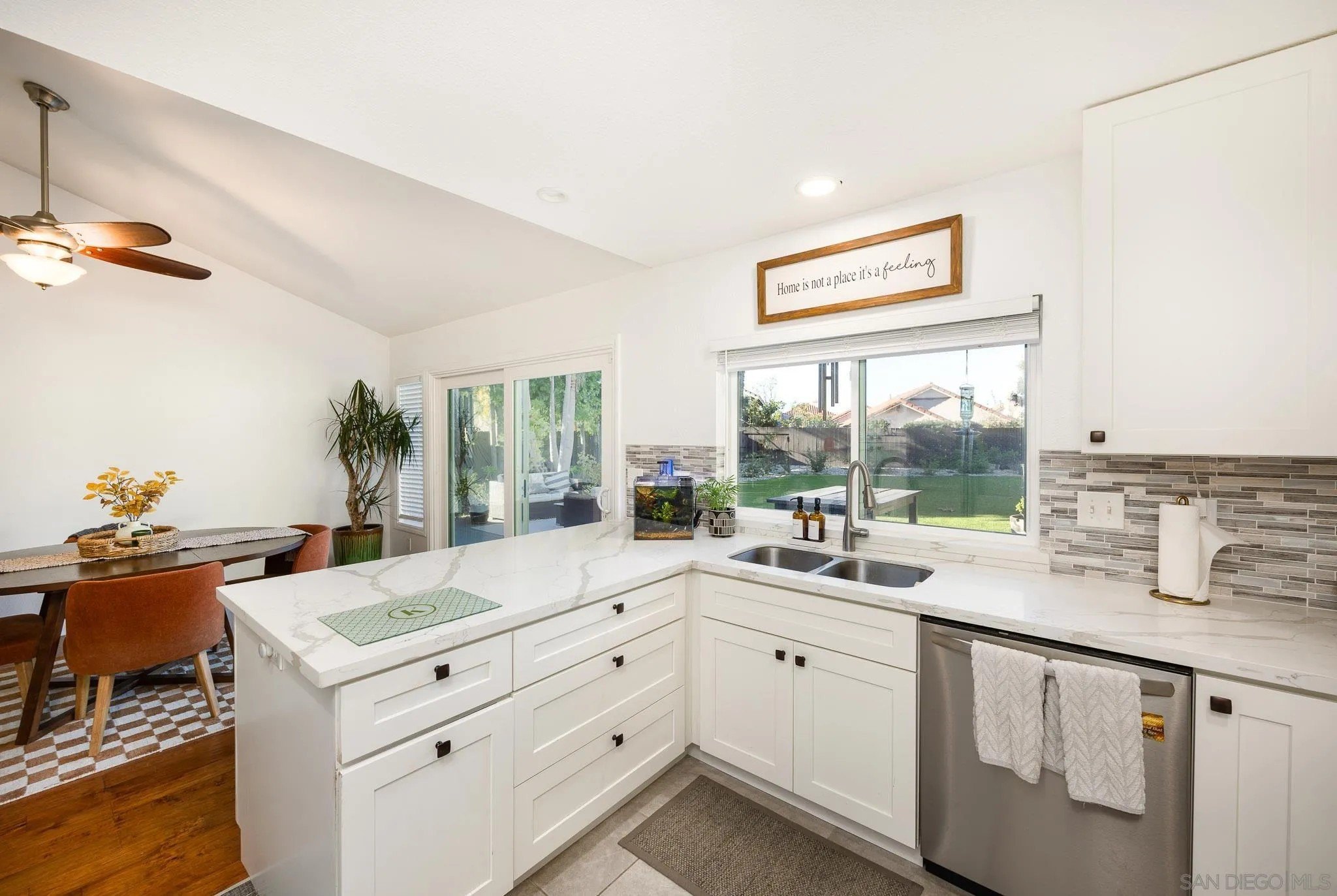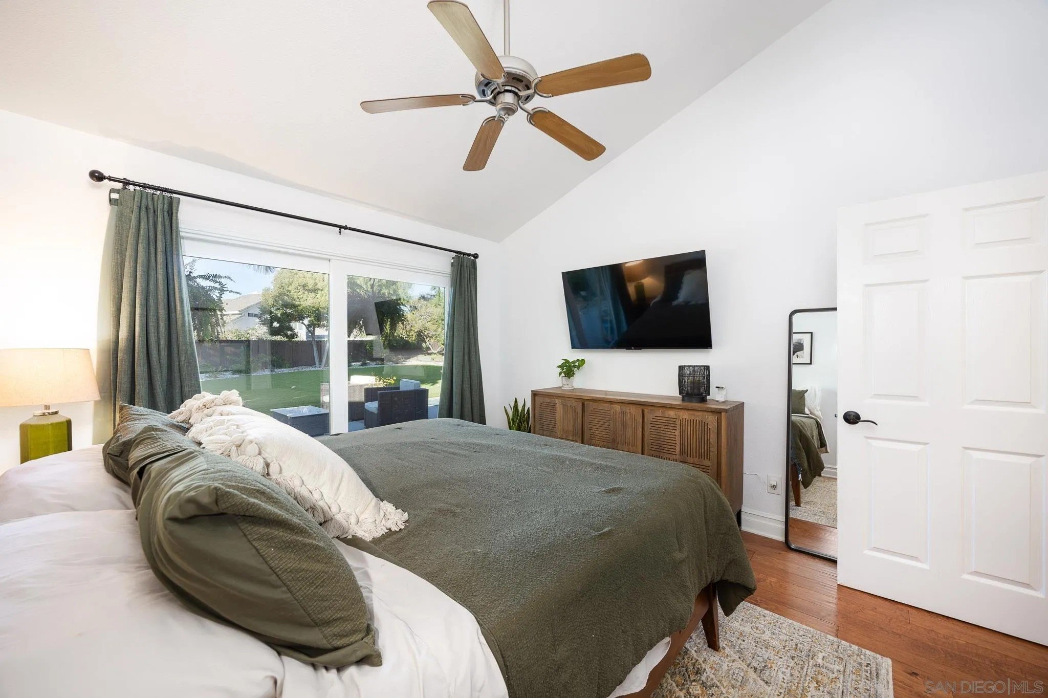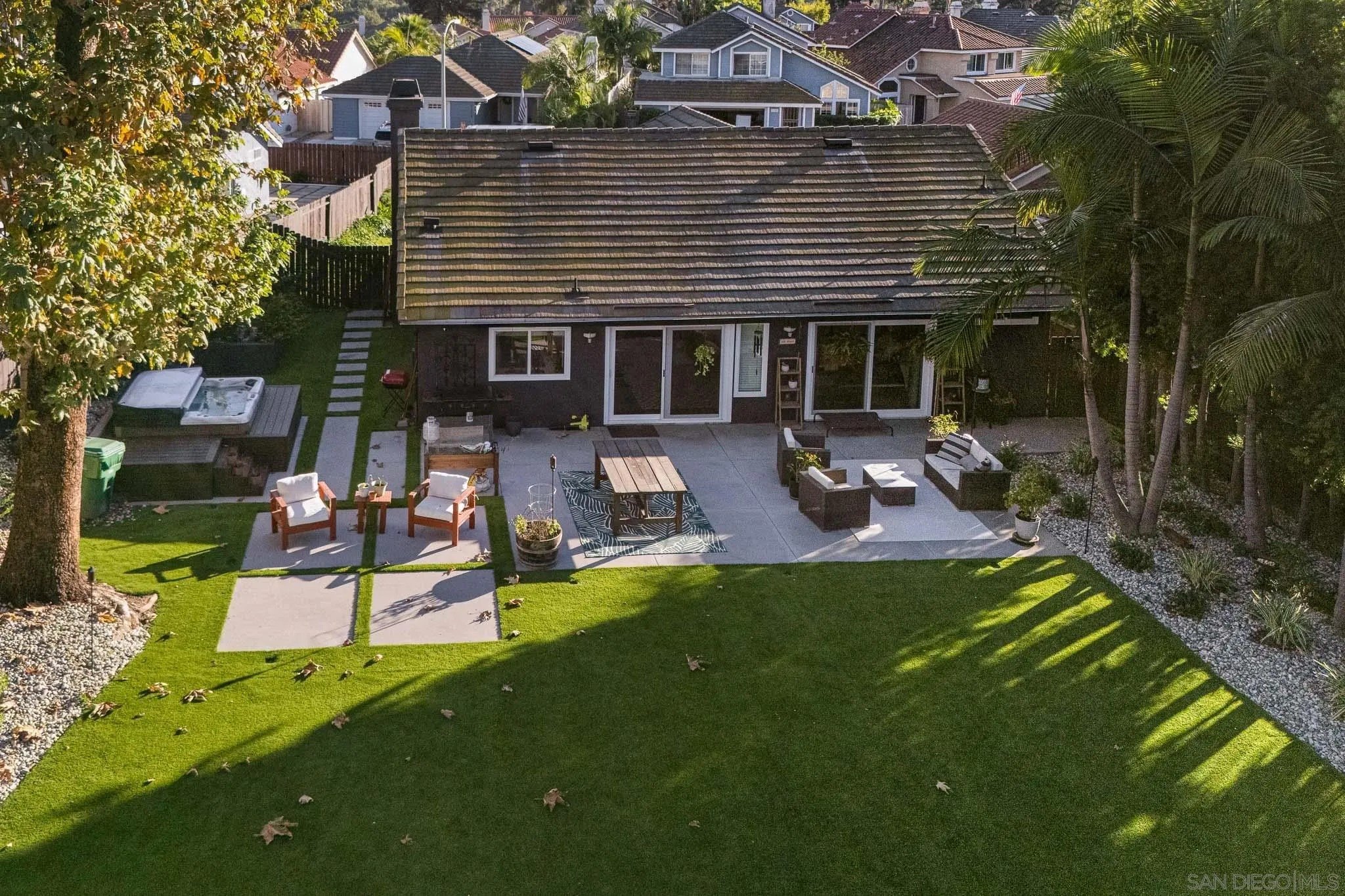 Rare opportunity in the highly desirable "Berries" neighborhood of Lake View Estates, where homes rarely come to market. This impeccably maintained single-story home sits on the largest lot in the subdivision and has been extensively upgraded since the last sale. The property features a stunning backyard transformation with synthetic turf, custom patio, spa, and Trex deck - perfect for entertaining. Inside, the bright remodeled kitchen showcases granite counters and crisp white cabinetry, while wide-plank hand-scraped hardwood floors flow throughout. Additional upgrades include full exterior paint, custom front door, dual-pane windows, new window treatments, and upgraded PEX plumbing for peace of mind. The home offers vaulted ceilings, a cozy living room fireplace, central A/C, and a versatile 4th room currently used as an office that easily converts to a bedroom. The resort-style backyard is an entertainer's dream with brand-new synthetic turf, expansive patio, relaxing spa, and elevated Trex deck. Mature landscaping provides privacy while leaving ample space for a pool, garden, or even an ADU on this oversized lot. Located in a family-friendly community with an affordable $228/month HOA (no Mello-Roos), residents enjoy a community pool and spa, tot lots, and close proximity to Guajome Lake with hiking and biking trails. Move-in ready and turnkey - this gem won't last!