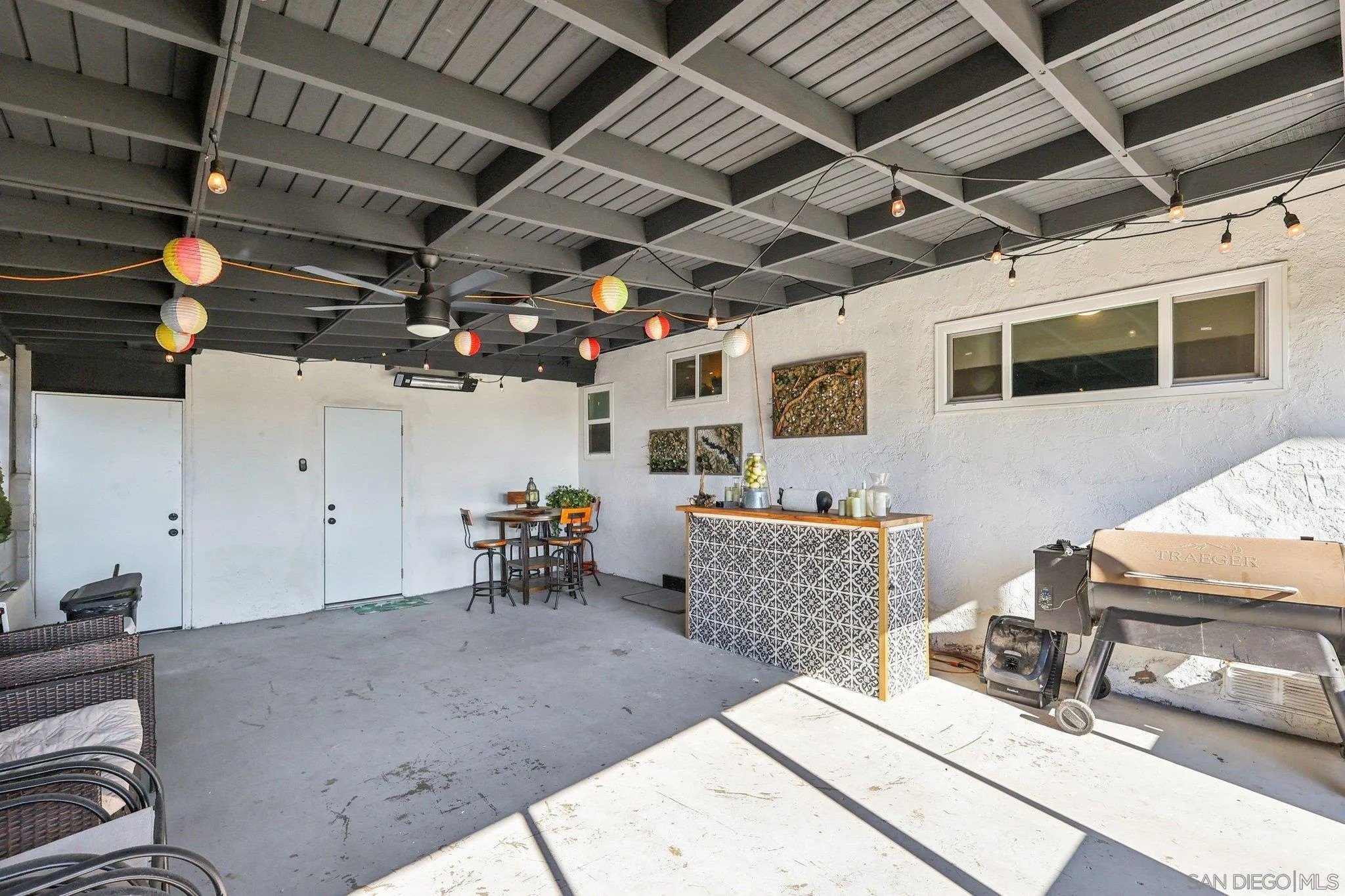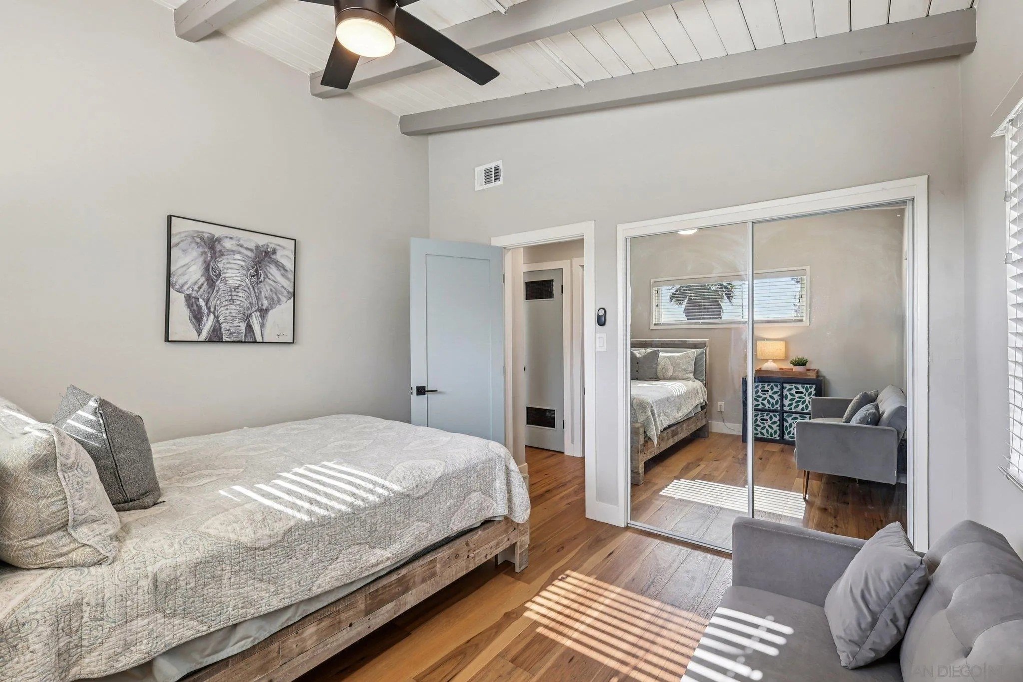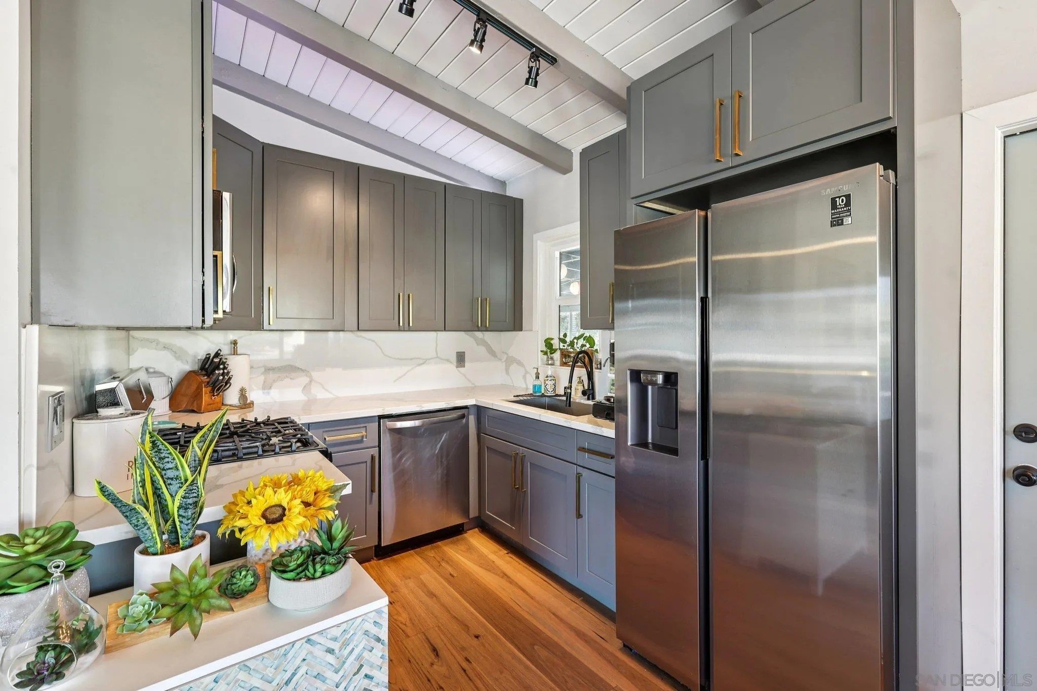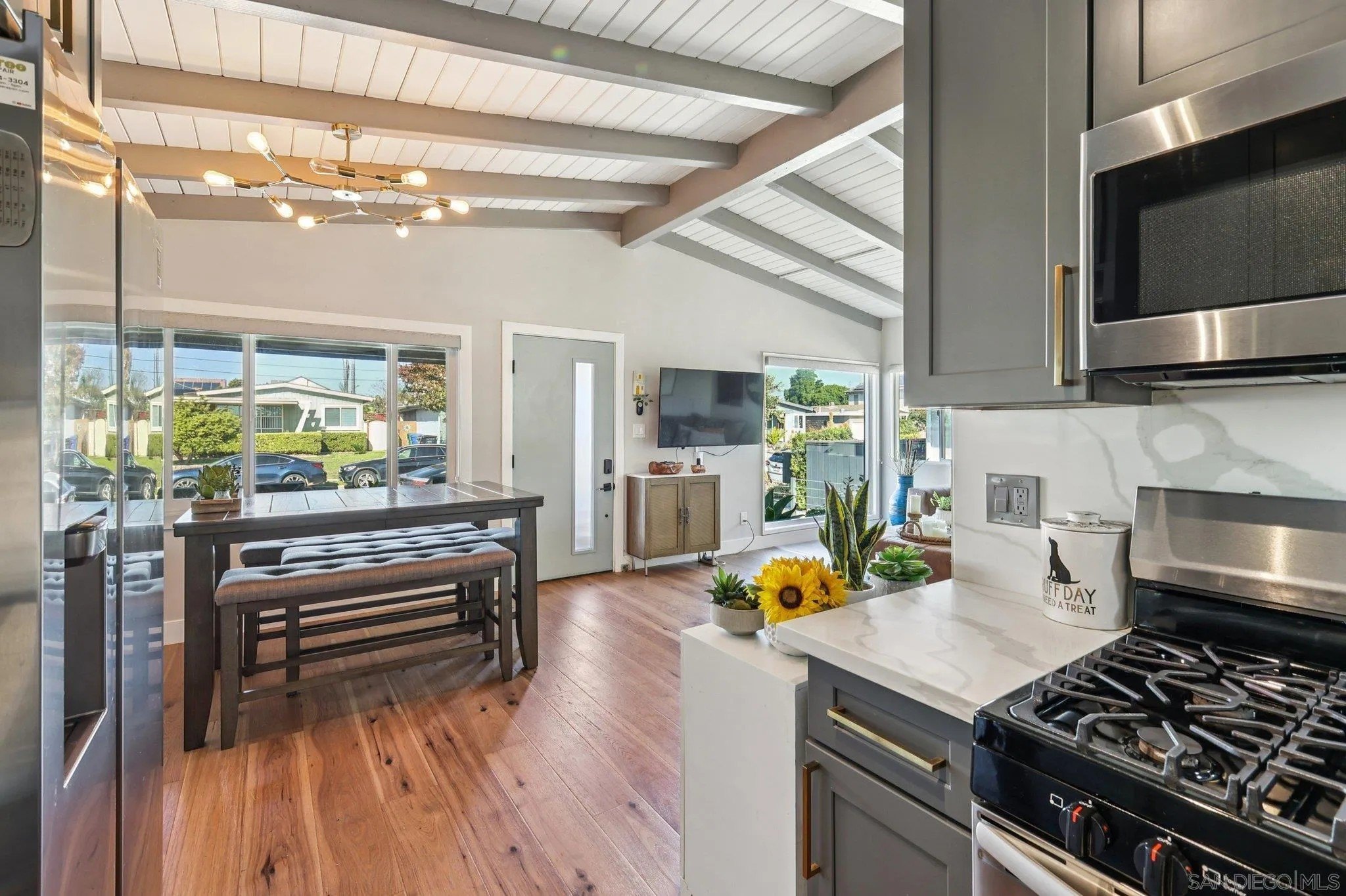 LARGE LOT WITH HUGE POTENTIAL TO ADD ADU'S * 10,900 SQ FT MOSTLY FLAT CANYON VIEW LOT * MAIN HOUSE IS FULLY RENOVATED * NEW RESORT STYLE Discover a truly exceptional, fully renovated single-story home in the heart of Serra Mesa, set on a rare large canyon lot. From the moment you step inside, the picture window and vaulted ceilings fill the home with uplifting natural light, creating an open and inviting atmosphere. The custom kitchen, featuring striking quartz countertops, grey shaker cabinets, gold finish handles and stainless steel appliances, flows effortlessly into a spacious living area enhanced by sleek vinyl flooring. The primary suite opens to an incredible private deck and backyard, the perfect place to unwind, while an expansive covered patio invites effortless summer entertaining. Both bathrooms are fully updated with modern tilework, vanities, contemporary fixtures, and stylish cabinetry, completing the home's polished, cohesive design.