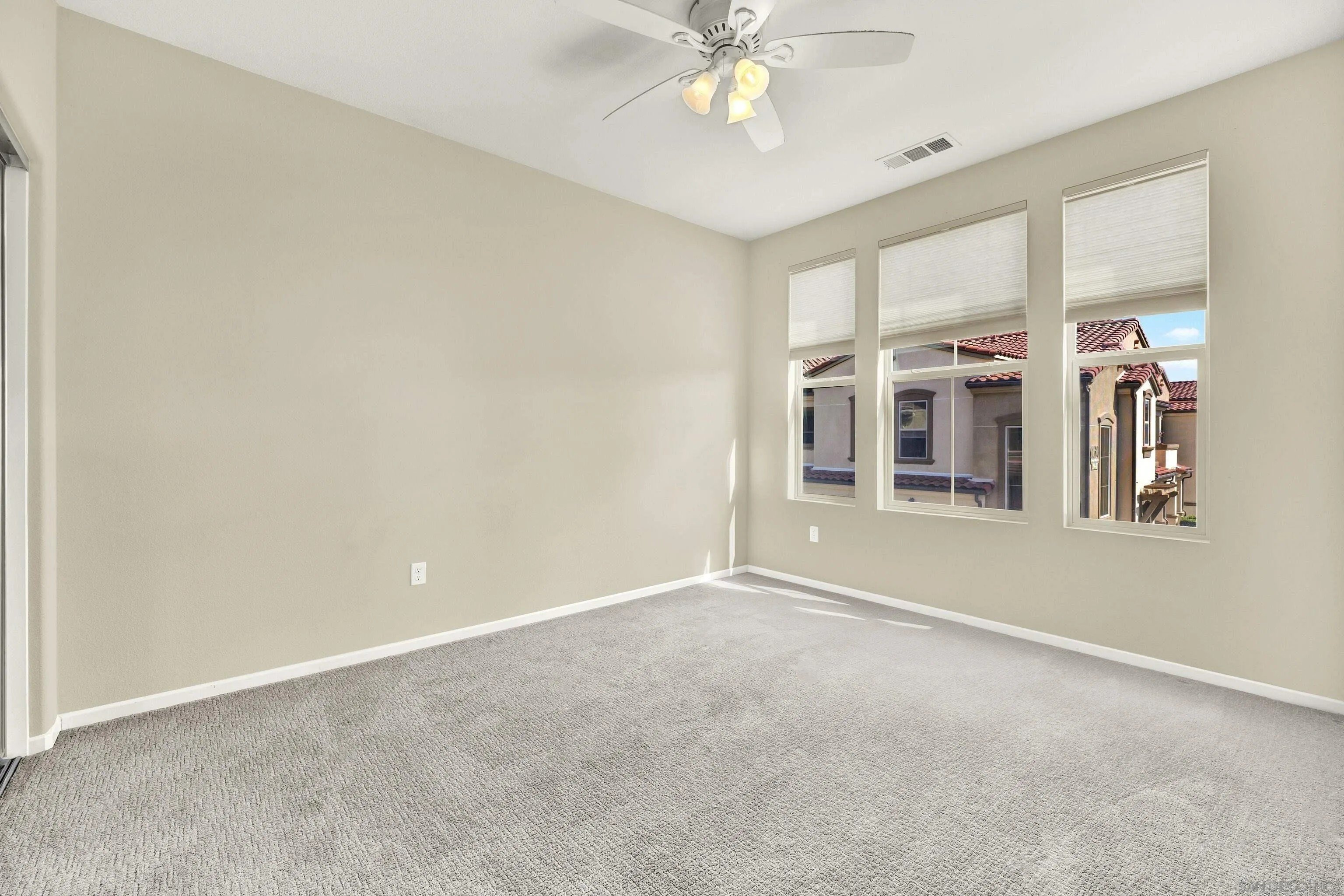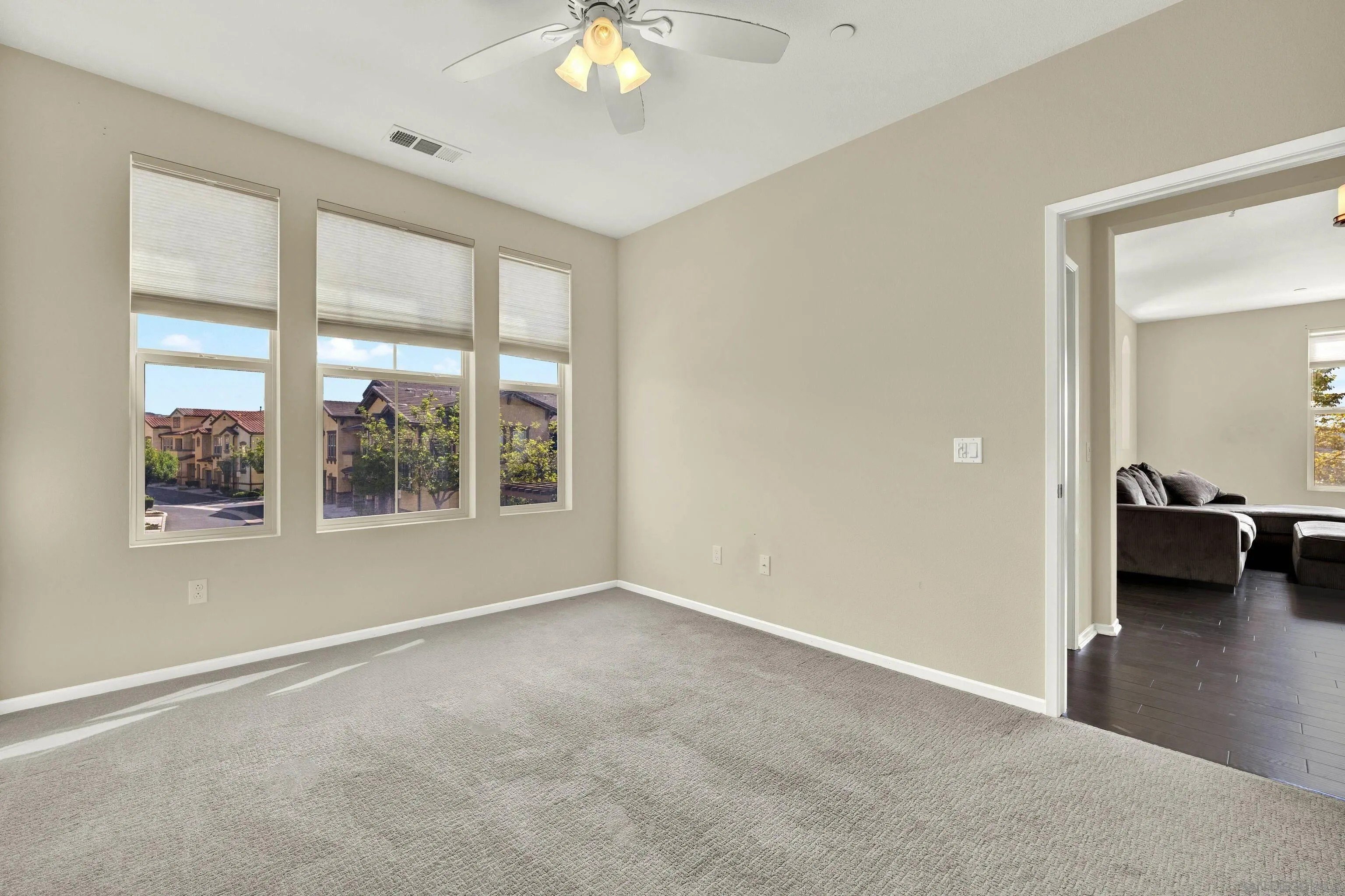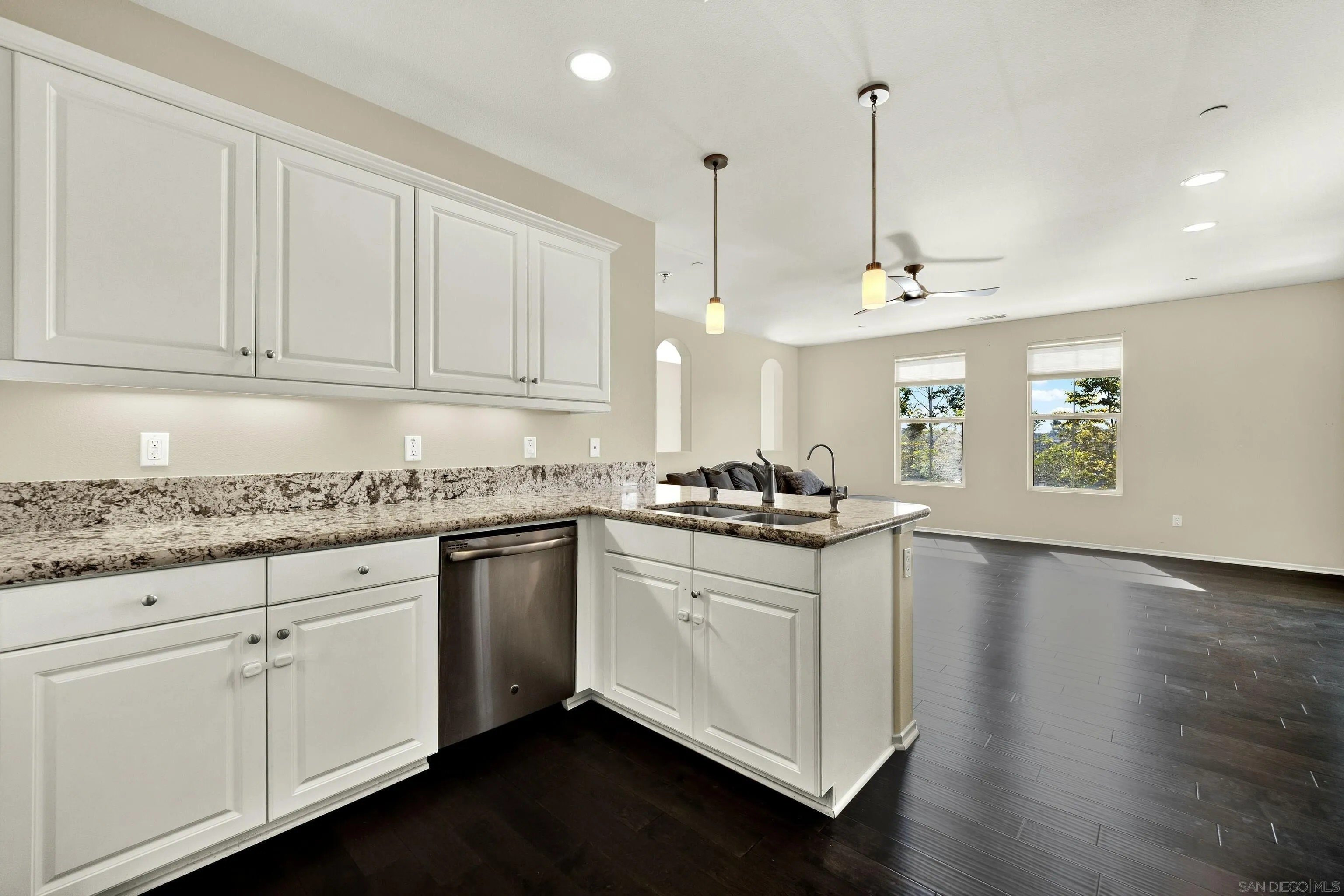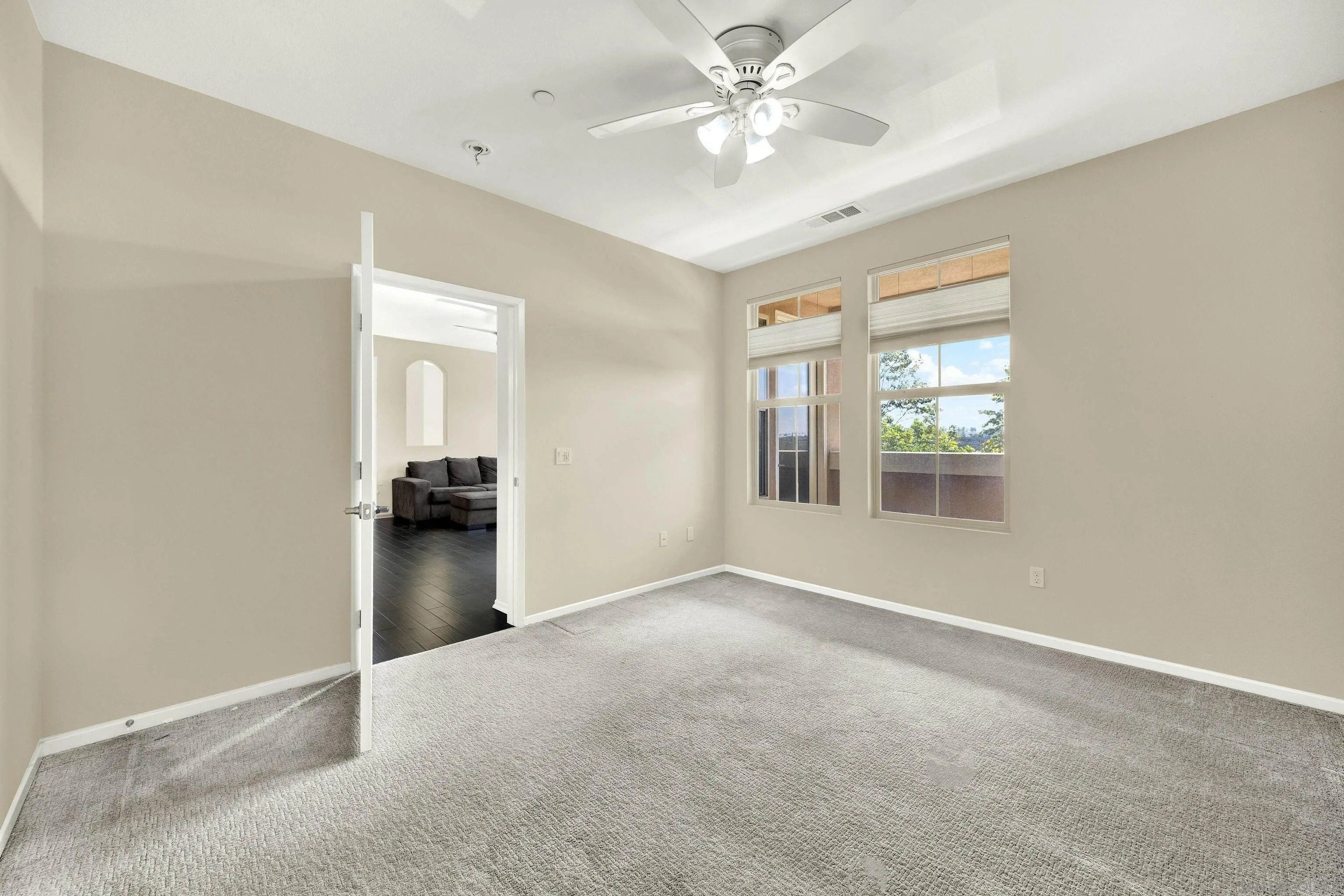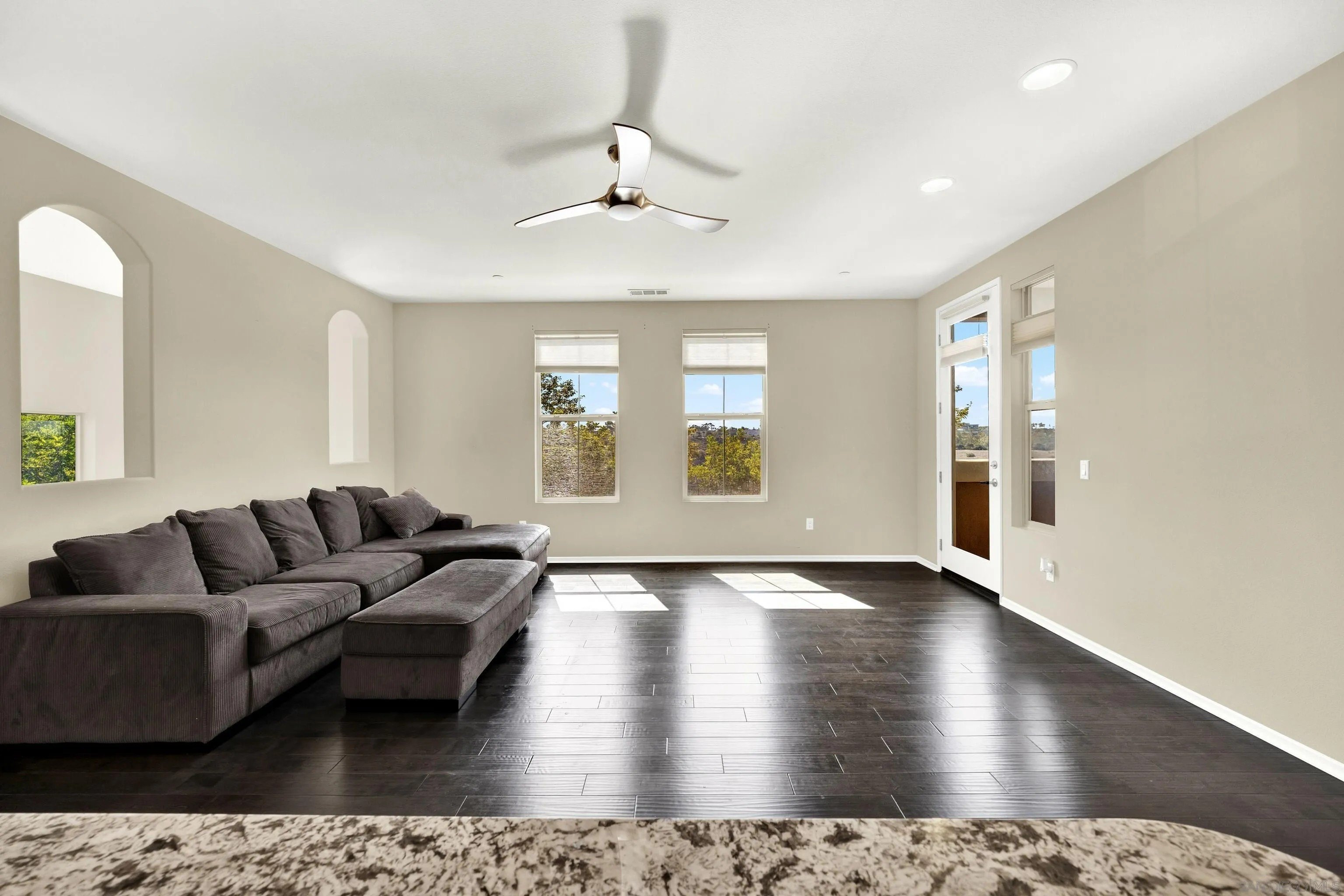Nestled in the desirable Sorrento Ridge community, this corner lot, light-filled 2-bedroom, 2-bath condo offers an ideal blend of comfort, privacy, and convenience. The upper-level layout welcomes you into an inviting living space featuring vaulted ceilings, abundant natural light, and beautifully maintained hardwood floors throughout the kitchen, dining, and living area, offering a seamless flow and warmth through the property. A southwest-facing balcony, with panoramic views is the perfect spot to unwind while taking in serene canyon and greenbelt views. The primary suite enjoys complete privacy with its own attached full bath, while the second bedroom and additional full bath provide flexibility for guests or family. A bonus nook offers an ideal space for a home office, reading area, or creative studio, perfectly suited to modern living needs. An attached garage provides convenience and secure parking with direct access, with an additional reserved parking spot steps away. Residents enjoy access to a range of community amenities including a pool, playground, and beautifully maintained grounds managed by the HOA. Located just minutes from Sorrento Valley's biotech and tech hubs, this home offers quick access to hiking trails, shopping, dining, major transit routes, and the coast-making it a peaceful retreat that remains close to everything. This is your opportunity to own a low-maintenance, contemporary sanctuary in a prime San Diego setting.