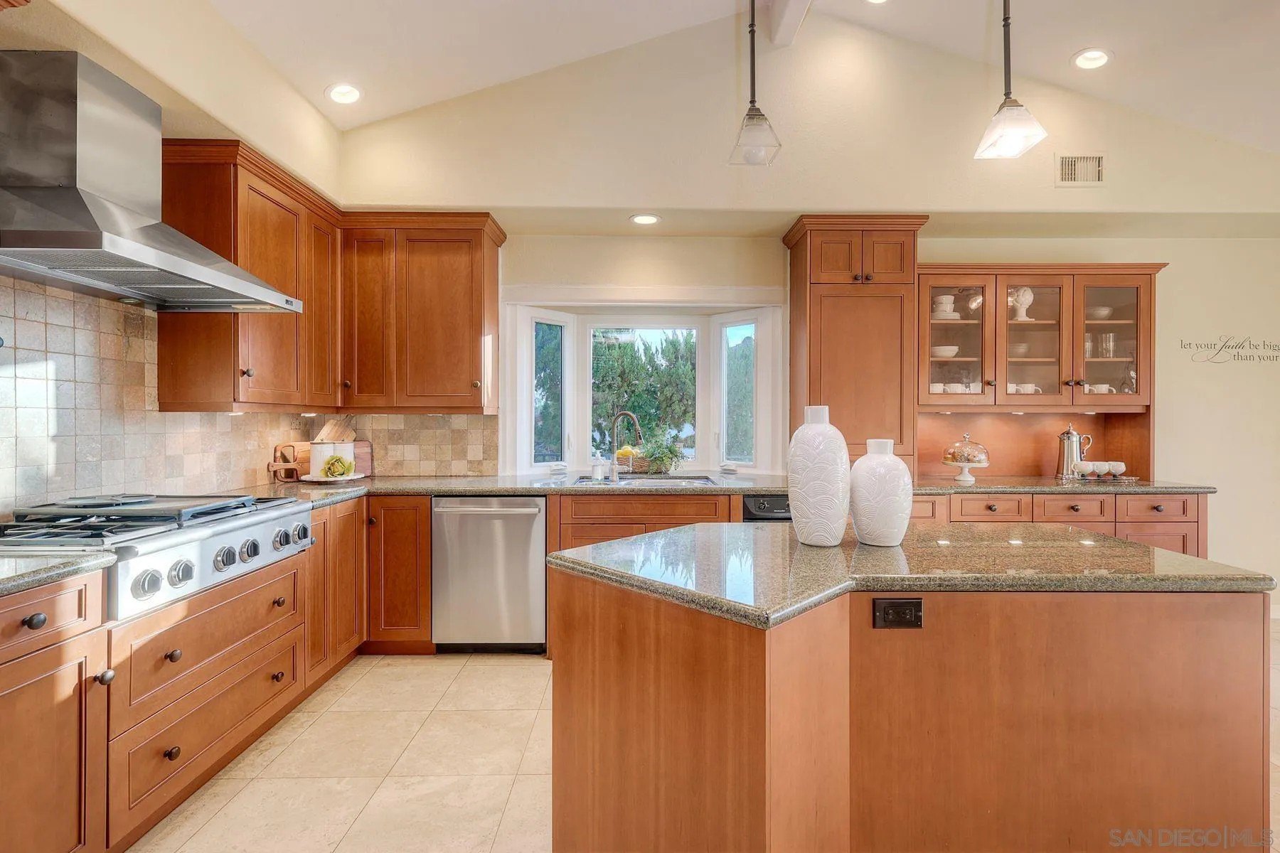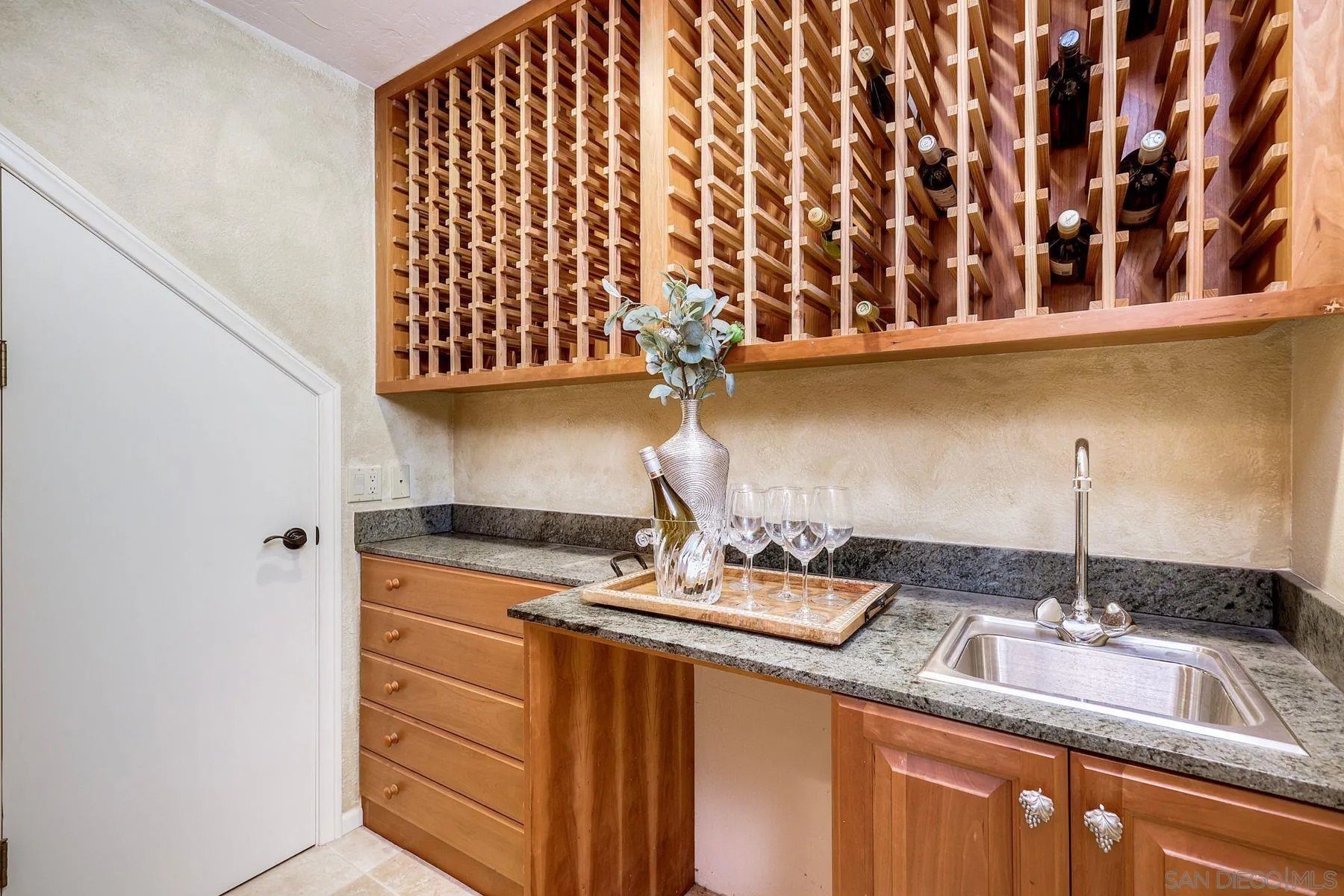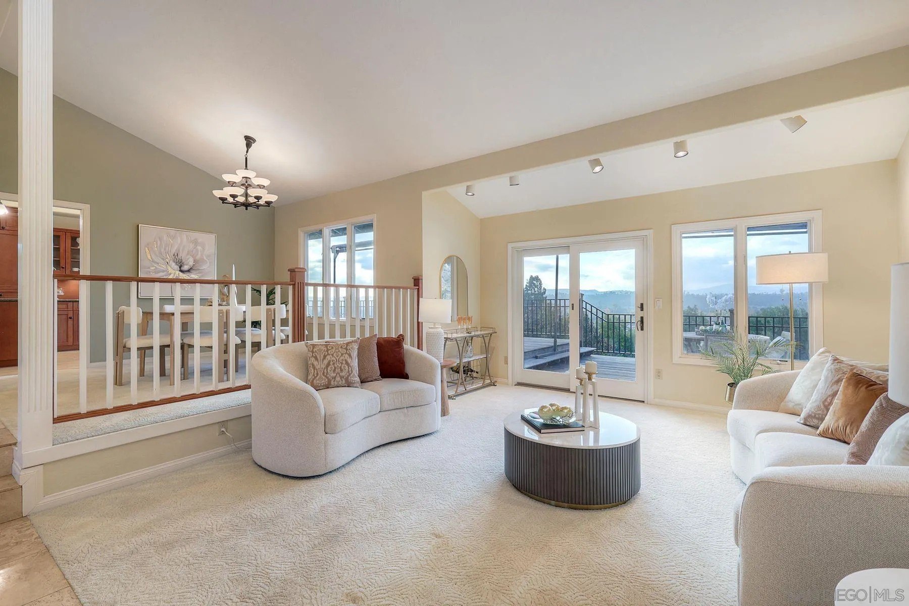 Quintessential Poway Living - the home in the City in the Country. Custom-built-home features everything Poway offers - updated, sizeable living spaces oriented to incredible expansive views plus a half acre of land, fruit trees, gardens, Horse trails are right in front of the home and the farmers market and Old Poway are walkable. Most rooms are oriented to the westerly views. The saltwater pool and spa were just resurfaced, and the rear patio was resurfaced as well. The massive wrap-around upper deck is if Ipe wood - incredibly hard, durable and fire resistant. Inside you'll enter to see dynamic views to the sunset, canyons, city lights and distant mountains. Find a custom designed gourmet kitchen with SubZero refrigerator, a 6-burner gas range, stainless steel sink and oven, granite countertops and custom cherry cabinetry. Breakfast bar, buffet and breakfast nook with a view. Upstairs features an office or bedroom with deck access and a full bath, living room and dining. The family room features a gas fireplace, built-ins and the primary suite is on the lower level with walk-out access to the pool and patio and a view of the cute pond. Don't miss the "speakeasy" wine room that includes vast storage, room for a wine fridge and a bar sink. Laundry room and other bedrooms are also on the walkout level. See supplement.... there's so much more!