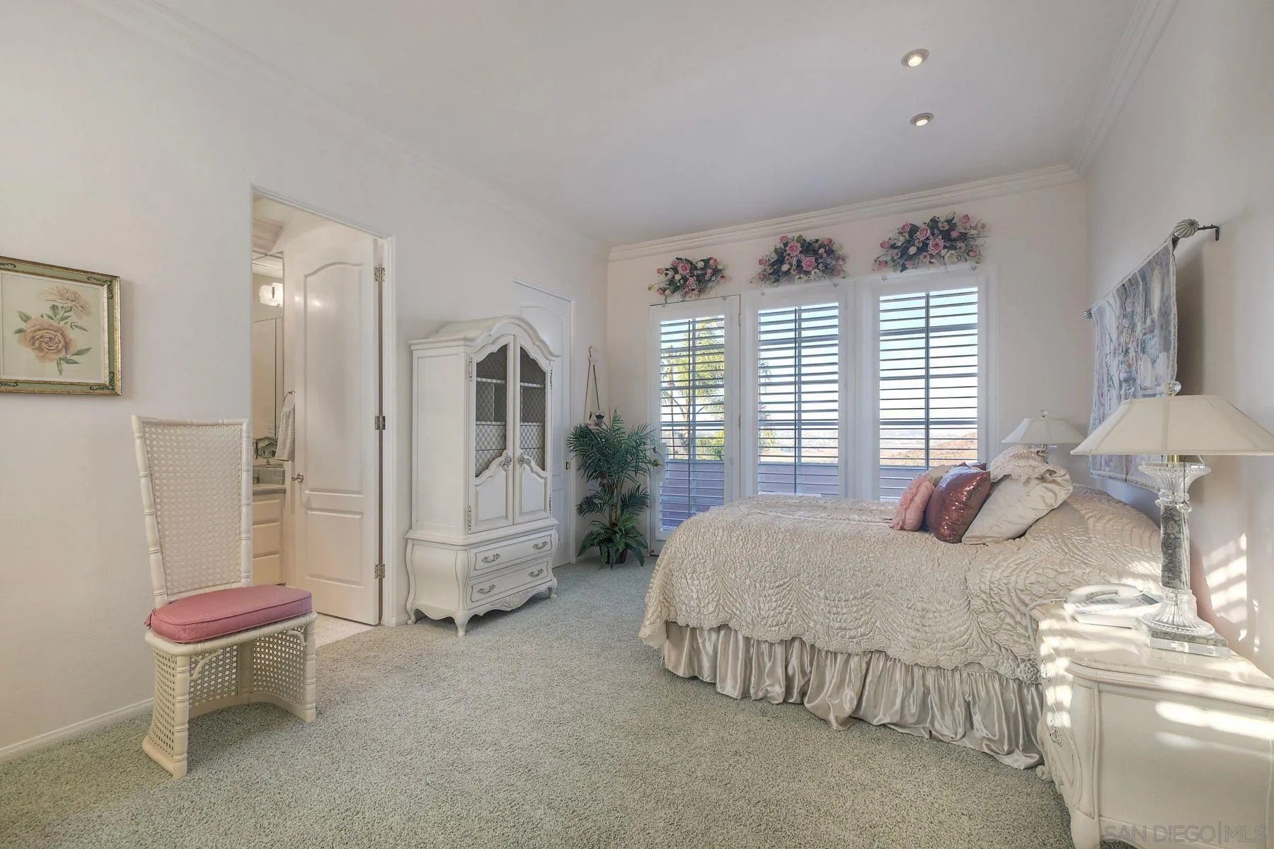 Expansive Estate in the prestigious Lomas Verdes Estates on an elevated lot, providing panoramic views of the mountains and valley. Each bedroom has an ensuite bath with the primary bedroom conveniently located on entry level. An attached ADU w/ living room, full kitchen and a bed/bath is located on the 2nd level w/ an elevator for accessibility. Gorgeous patios, pool and mature landscaping make this an entertainers delight. Located in the award winning Poway Unified School District and close to local favorite Bernardo Winery. This estate is a must see!