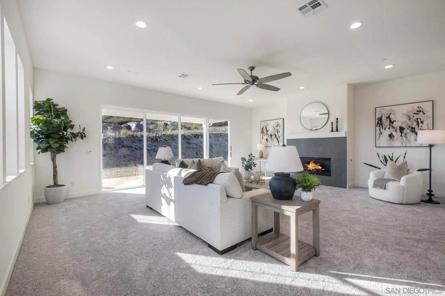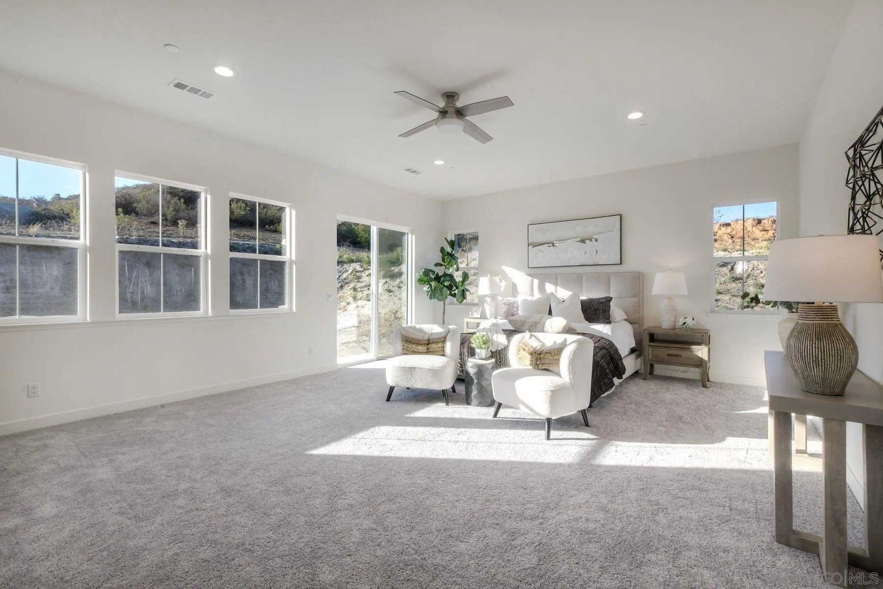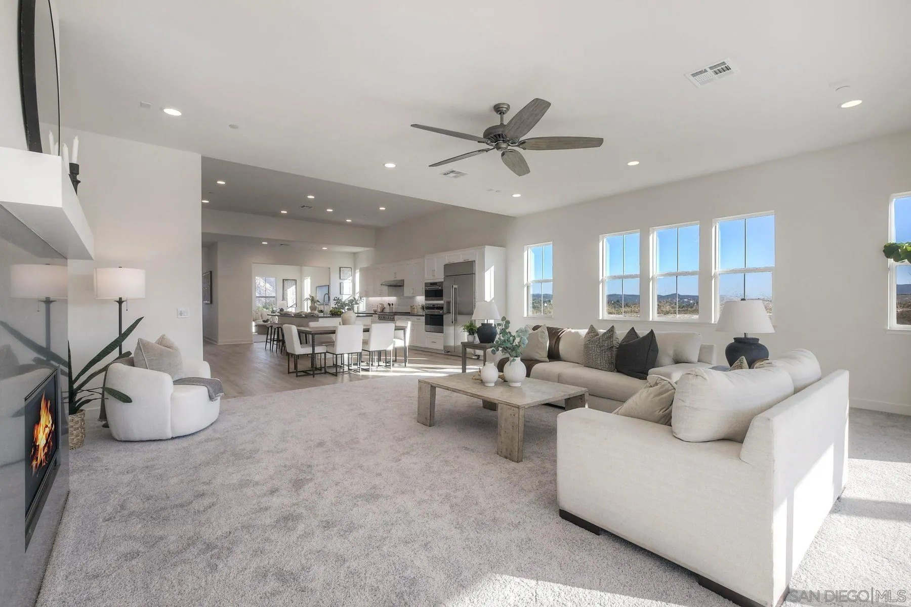 Final Home! New Construction, ask about builder paid interest rate buydown starting at 4.5%, surrounded with panoramic views, set in the foothills of Valley Center on a new cul-de-sac, New Pointe Communities proudly presents this final series of single level estate homes presented on 2 acre plus elevated lots. This home is the plan 3, the largest model, a rare 5 bedroom plus bonus room. The great room features a fireplace and high ceilings, led lighting. Open concept living with a functional gourmet kitchen featuring white shaker cabinets and quartz countertops with generous center island and walk in pantry. An upgraded stainless steel appliance package, propane gas range and a built-in 48 inch GE Monogram Refrigerator/Freezer. Well appointed primary suite and master bath with large walk-in closet, dual vanities and a luxurious freestanding soaking tub, elegant standalone shower. Two secondary bedrooms with a shared full bath and two ensuite bedrooms with private full bathrooms. Functional outdoor entertainment space in the California patio outdoor sitting area accessed through gorgeous oversized sliding doors. Generous indoor laundry room with sink and storage, owned solar system included. Home includes a 1 year fit and finish warranty, No HOA room for RV, Boat and Trailer parking, very usable lots for an elaborate outdoor living space or swimming pool. Near local golf courses, wineries and casinos. Ask us about our current incentives!