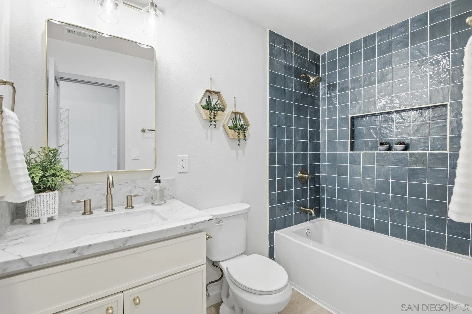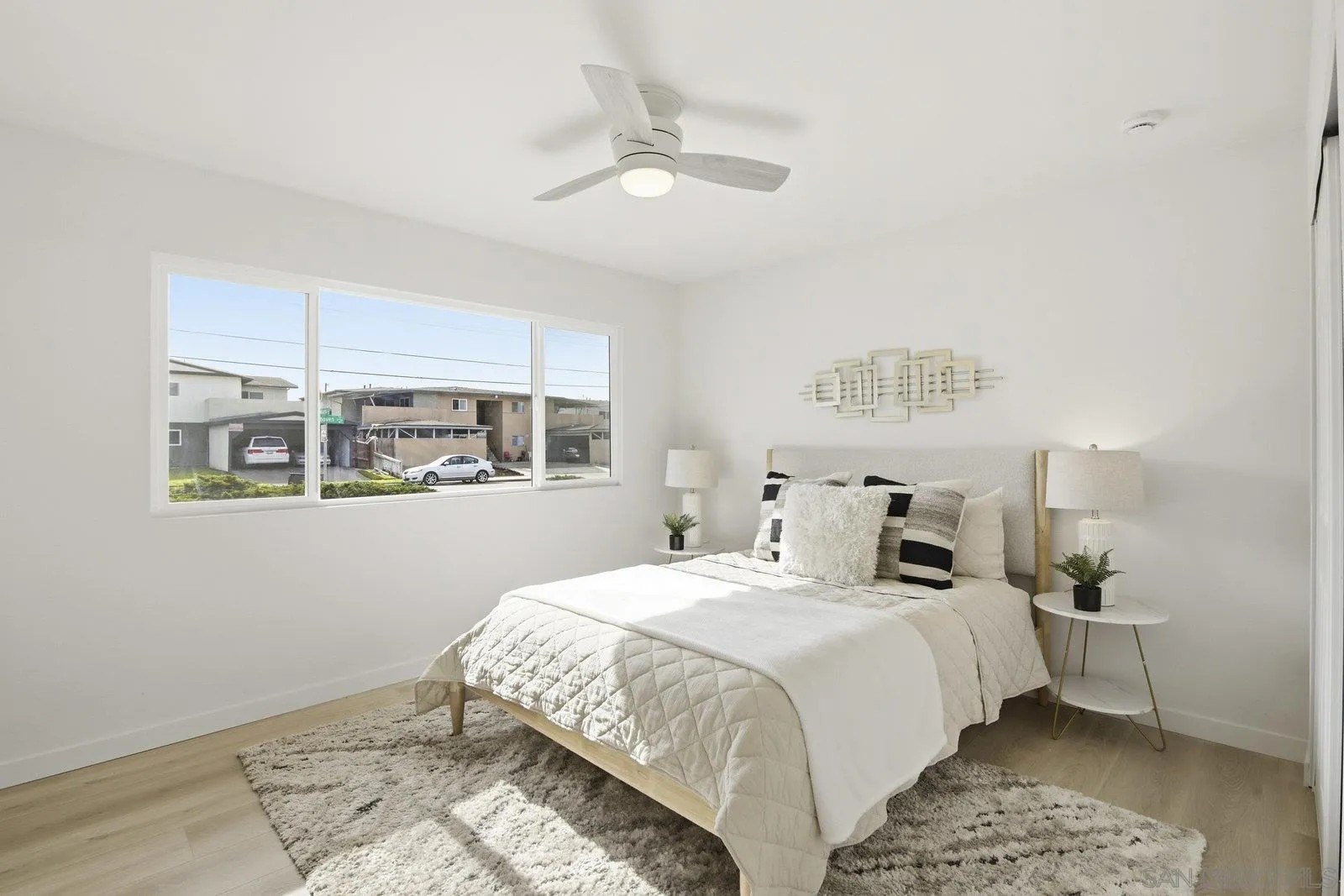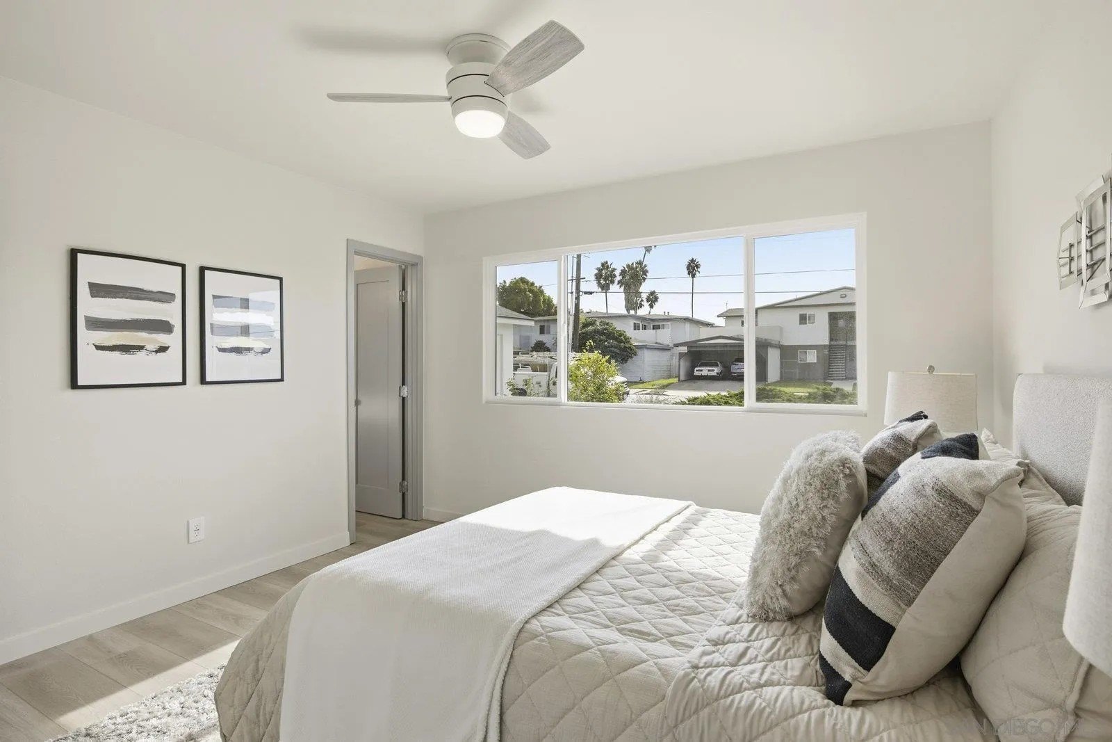 Welcome home to this beautifully remodeled home featuring 3BD/2BA in a highly sought after neighborhood in Serra Mesa. Set on a large 8200 sq ft corner lot with plenty of room for ADU pool, or future expansion. Renovations include, New Roof, AC/Heat, LVP flooring, windows, interior/exterior paint, remodeled kitchen, bathrooms and bedrooms. The kitchen displays new SS appliances, quartz countertops, tile backsplash, stainless steel appliances, shaker soft close cabinets, and recessed lighting. The living room has a beautiful tiled fireplace with double doors leading to a secluded large backyard great for entertaining family and friends. The two car garage has new epoxy coating and an oversized driveway for additional parking spots. This home is perfect for blending timeless elegance with modern comfort, offering the perfect opportunity to plant your roots surrounded by beauty, community, and joy. Come visit today!