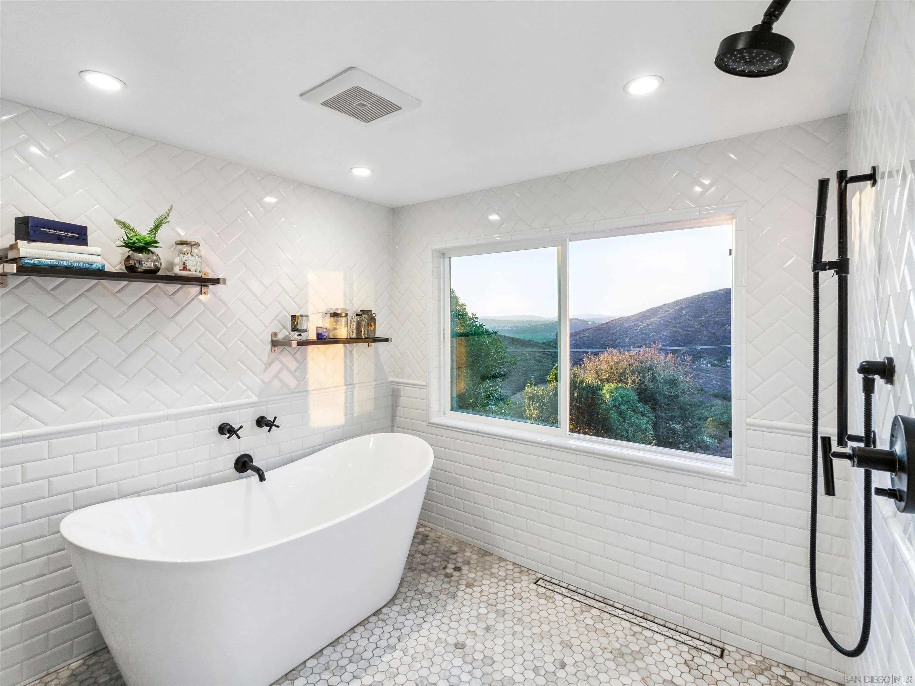 Expansive views, high-end finishes, and immaculately maintained. Entry level primary suite, generous bedroom sizes with the option for a 5th bedroom, countless upgrades and improvements throughout. New roof, new windows, newly remodeled bathrooms, solar, newer appliances, dual zoned HVAC, new water heater, flexible floor-plan, drought tolerant landscaping, paver driveway and new garage doors. A chef's dream kitchen with large, eat-in table area, hide-away storage and top-of-the-line appliances. Sitting on nearly a third of an acre, with unobstructed, sit-down views of rolling hills, mountains, and the pristine fairways of the Maderas golf course, the entirety of this property is sure to impress. Enjoy al-fresco dining on the 300 square foot terrace that flows seamlessly from the interior. The 2-tiered backyard is serene, low maintenance and offers countless options with compacted DG, covered terrace and an additional 400 square foot workshop. Located in North Poway, close to shopping, and within the award winning Poway Unified School District.