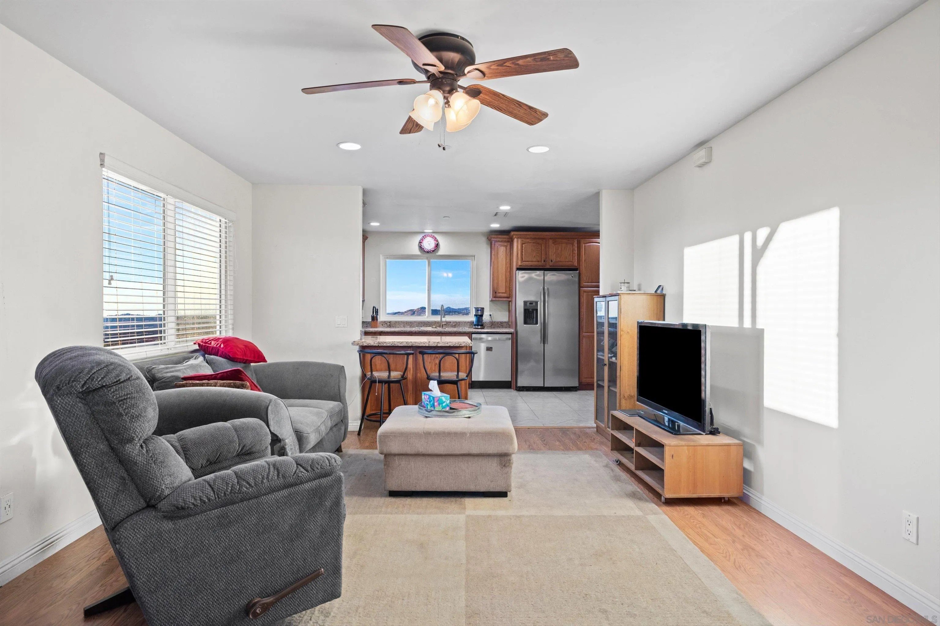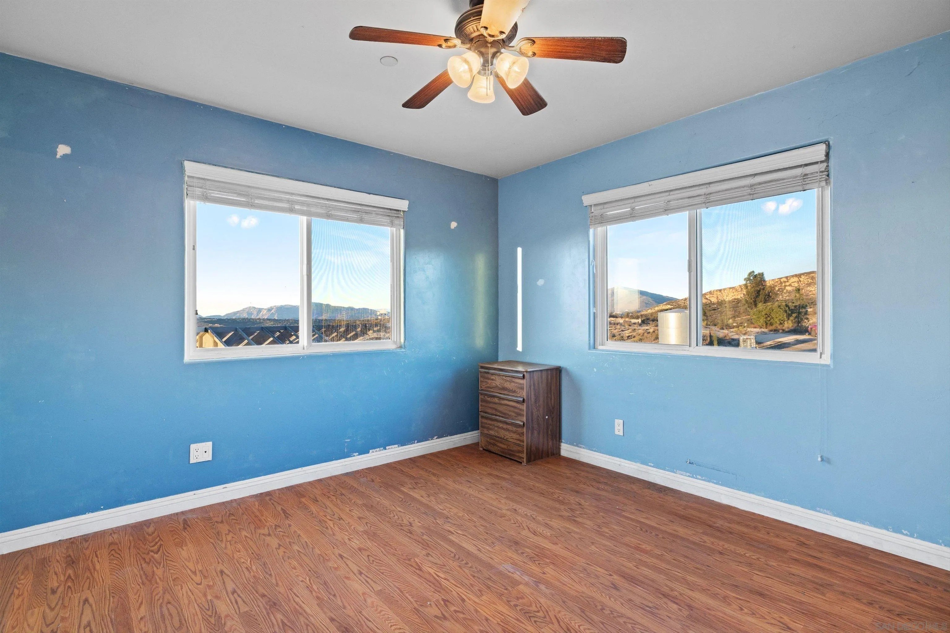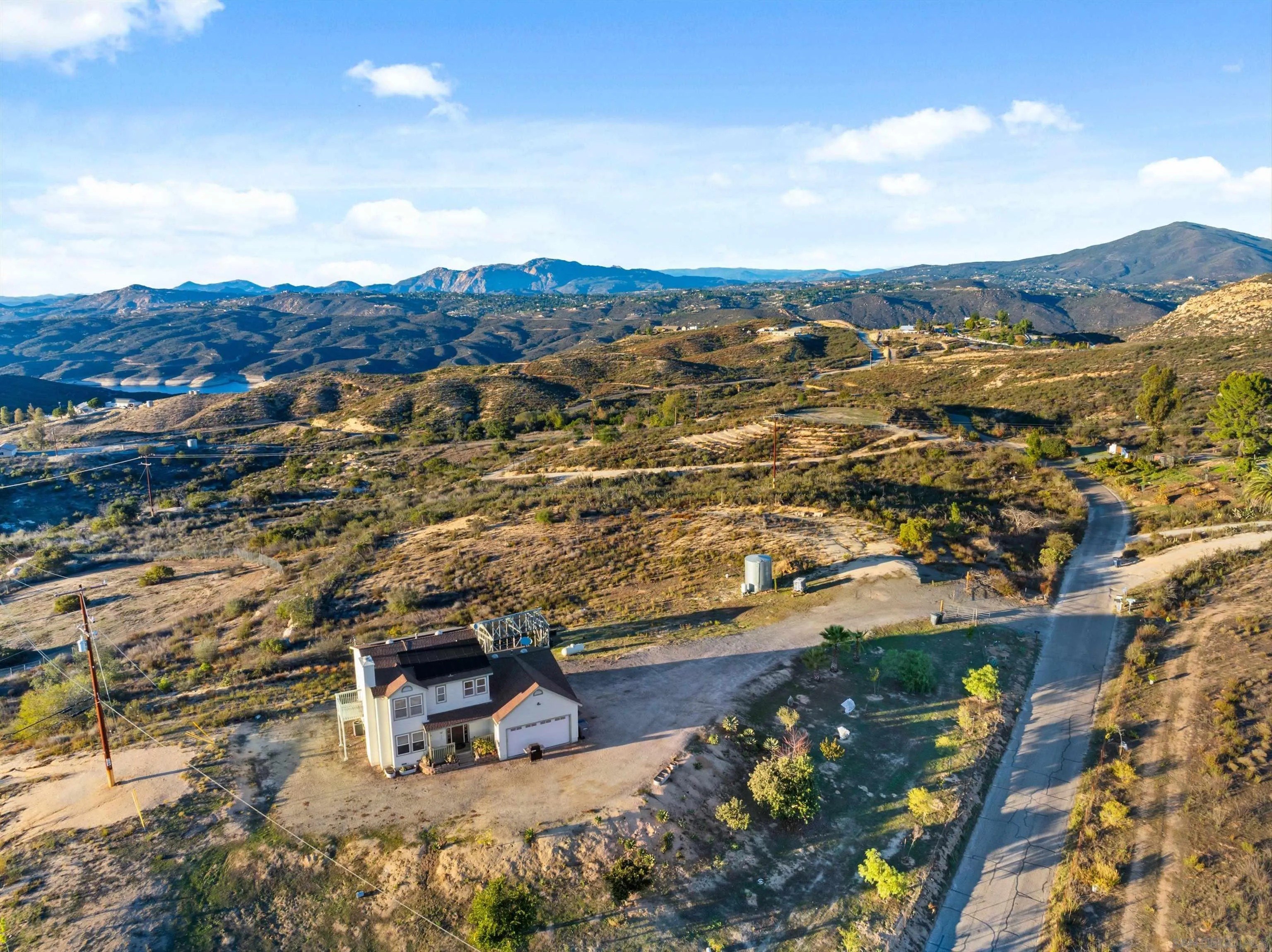 Discover peaceful country living in this beautifully updated 4 bedroom, 3 bathroom, 1,900 square foot, two story home in Jamul. Set on an expansive 9.26 acres, this property offers incredible space and truly breathtaking panoramic views stretching across San Diego. Inside, natural light fills the thoughtfully designed floor plan, featuring comfortable living spaces, a well appointed kitchen, and spacious bedrooms perfect for family, guests, or a home office. Owned solar panels provide energy efficiency and long-term savings, adding to the home's exceptional value. Whether you're enjoying morning coffee overlooking the rolling hills or winding down with stunning sunset views, this property delivers the best of serene rural living with the beauty of San Diego as your backdrop. A rare opportunity to own acreage, views, and comfort all in one!