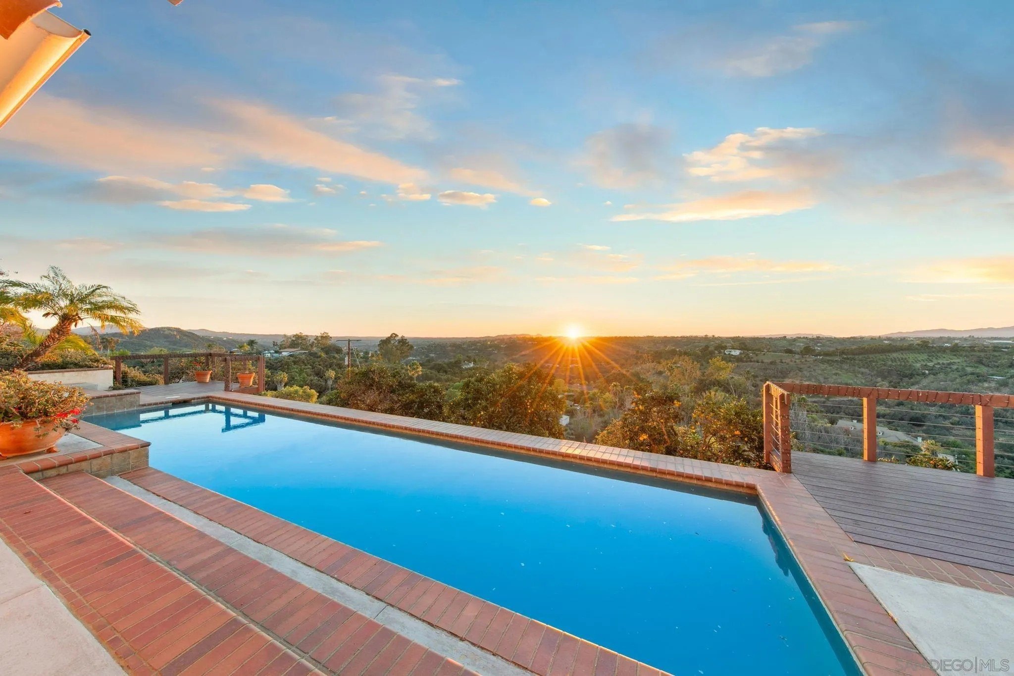 Perched on a scenic ridgeline with sweeping sunset views, this private Mediterranean-style estate offers luxury living at an aggressively priced, below-market value. Nearly 5 acres across two legal parcels provide rare flexibility for expansion, guest home, hobby vineyard, or agricultural use. The 4,173 SF interior features vaulted ceilings, exposed beams, a grand living room with stone fireplace, and a gourmet chef's kitchen with natural stone counters, center island, and indoor-outdoor flow. The spacious primary suite includes its own view balcony and retreat area. Outdoors, enjoy a resort-style pool overlooking panoramic hills, mature landscaping, terraced pathways, and exceptional privacy. A unique opportunity to secure a view estate with land, amenities, and long-term potential-priced to sell quickly.
