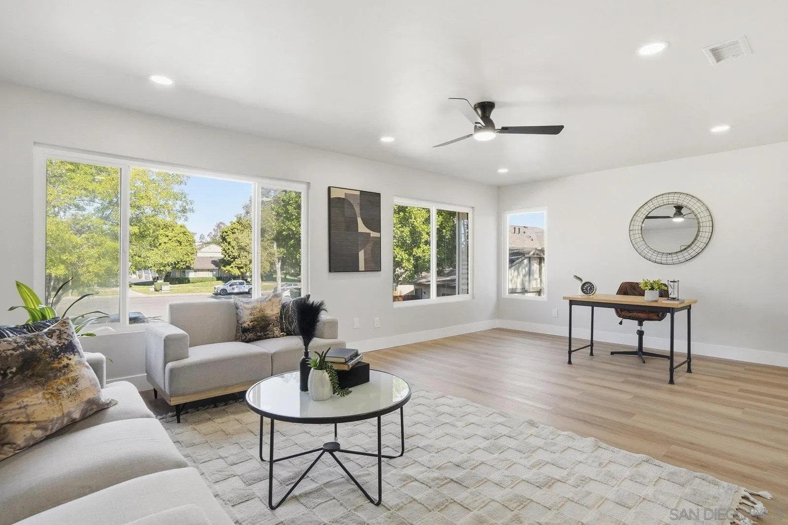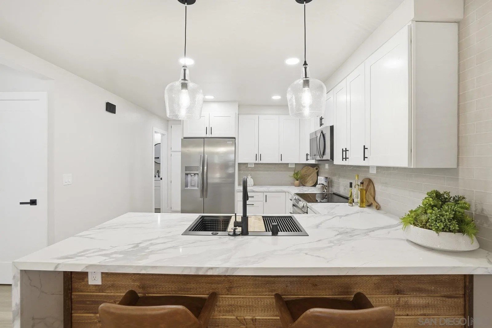 Experience affluent comfort within the reimagined space of this well-appointed townhome. Waterfall quartz counter tops, luxury vinyl plank flooring, and timeless soft-close shaker cabinetry are showcased throughout every section of this thoughtfully designed delight. Detailed aesthetic continuity is encompassed in the recessed & pendant lighting, smart plumbing fixtures, sharp tile work, acoustic wood slat & shiplap accent walls, and stainless appliances. Dual pane windows frame views of rolling green open space, and a private, fenced outdoor patio with exclusive use. A two car attached garage with direct access, and full-sized laundry area add convenience to your life. The entire exterior was painted last week, and the HOA has confirmed a new roof is scheduled for installation in March 2026.