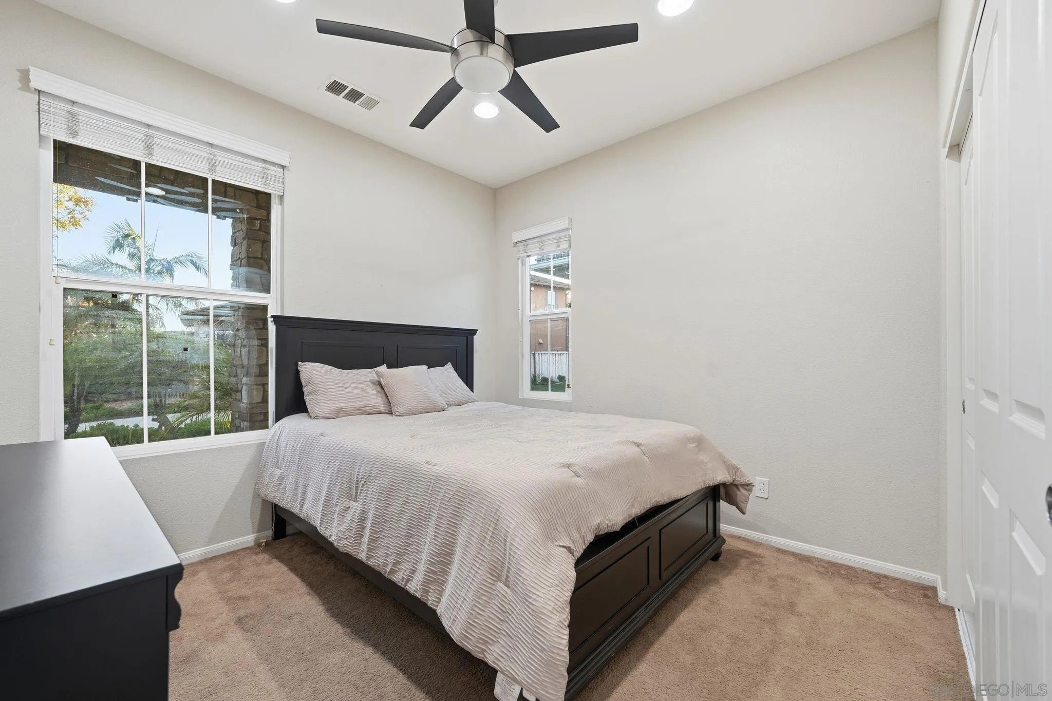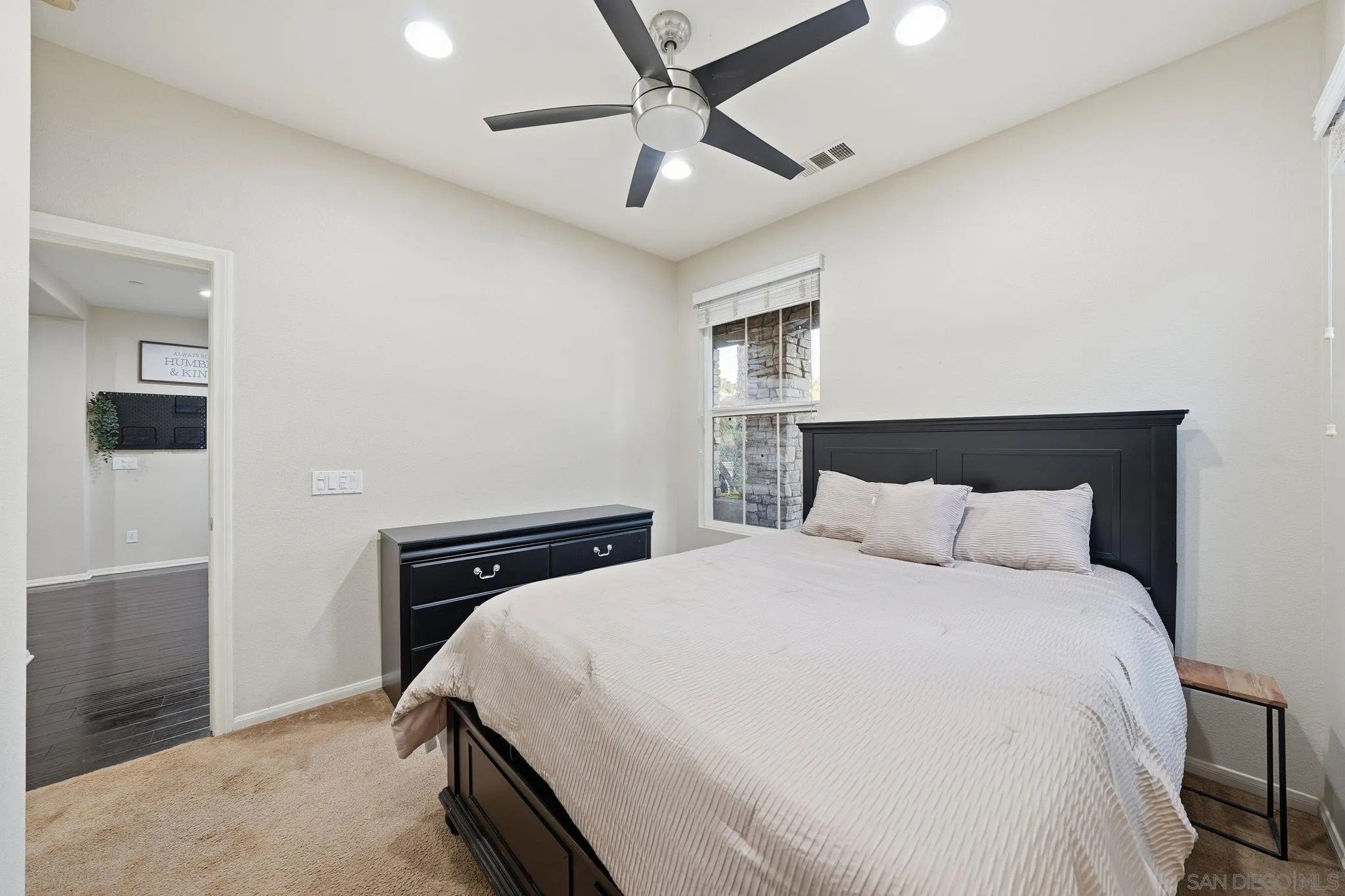 Welcome to this spacious 5-bedroom home in a desirable Escondido neighborhood, offering comfort, versatility, and a thoughtfully designed floor plan. The property features two bedrooms on the main level, ideal for guests, multigenerational living, a home office, or added flexibility to suit your needs. The home is equipped with owned solar, providing energy efficiency and lower monthly utility costs. Inside, you'll find generous living spaces with natural light throughout and an easy flow between the kitchen, dining, and family areas. Upstairs includes additional well-sized bedrooms and a private primary suite with ample closet space. Step into the large, private backyard, offering plenty of room for entertaining, gardening, play areas, or future customization. The home is situated in a community known for its friendly, well-established neighbors, adding to the comfortable and welcoming environment. Conveniently located near parks, schools, shopping, and dining, this property combines space, functionality, and a peaceful suburban setting.