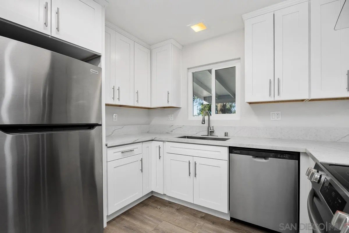 This freshly updated Vista home offers 3 bedrooms, 2 baths, and has space for an optional 4th bedroom and office. It's ideally situated on a peaceful cul-de-sac and features beautiful views that enhance its serene atmosphere. Inside, you'll find a bright and modern living space featuring LVP flooring throughout, fresh neutral paint, and a cozy fireplace that creates a warm focal point in the living room. The stylish kitchen stands out with sleek stainless-steel appliances, bright white cabinetry, a spacious island, and a striking stainless-steel hood -- the perfect blend of function and contemporary design. Step outside to the large deck, an ideal spot for relaxing, entertaining, and taking in the scenic views. Below, the spacious backyard-filled with mature trees-offers privacy, shade, and incredible potential. Whether you envision a garden, play area, outdoor living expansion, or simply a peaceful retreat, this yard provides a beautiful natural canvas. Conveniently located near Vista's parks, restaurants, shopping, and freeway access, this home delivers modern updates, flexible living space, and an inviting outdoor setting. Move-in ready, thoughtfully upgraded, and framed by nature and views - this Vista gem is one you won't want to miss!