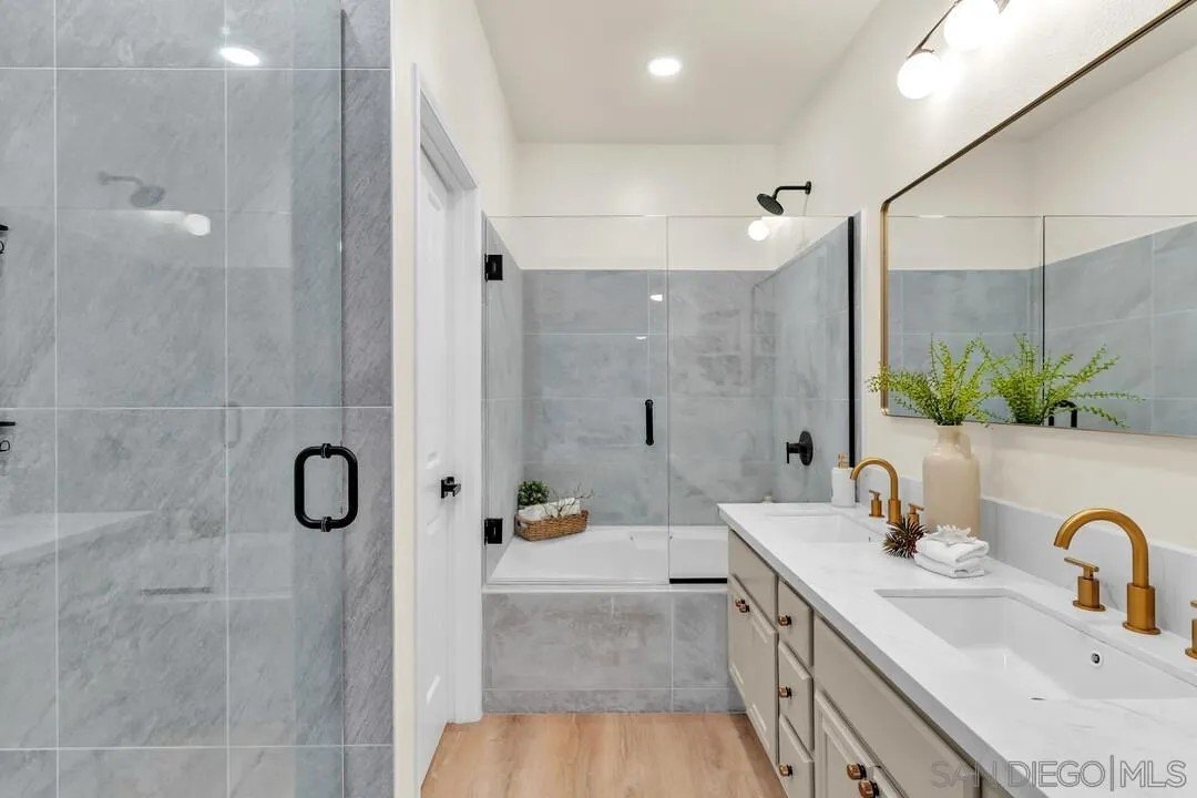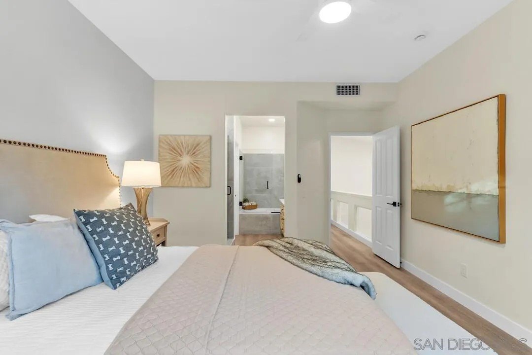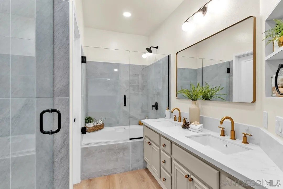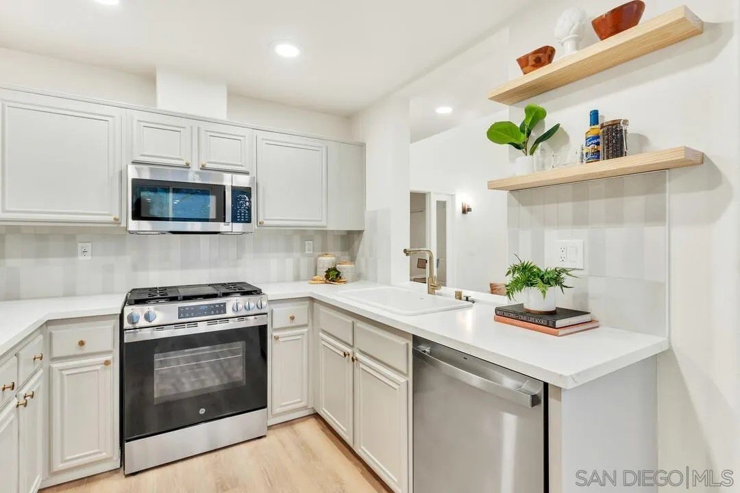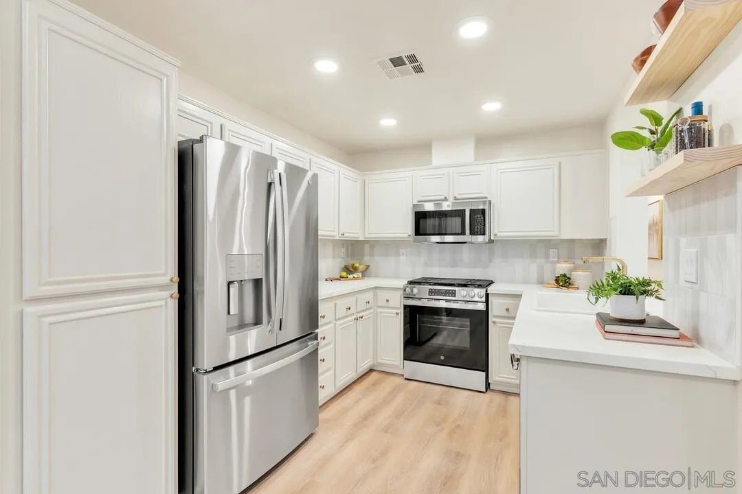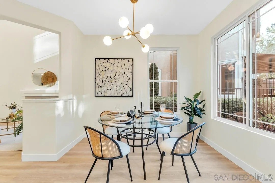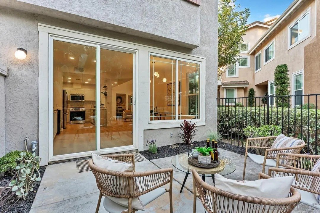 Location, Location, Location! Welcome home to the highly sought-after Windham community, perfectly situated in the heart of Carmel Mountain Ranch. Opportunities here are rarely available, with the last sale occurring over a year ago. Talk about walkability! You are under half a mile from the Carmel Mountain Plaza, placing bakeries, Trader Joe's, major grocery stores, shops, restaurants, and Costco within easy reach, with the local library just a short distance further. This exquisitely and gorgeously renovated townhome offers an unparalleled blend of quaint living, central convenience, and stylish upgrades, leaving no portion of the home untouched. Step inside to an inviting open-concept living area where heightened ceilings and abundant natural light highlight stylish LVP white oak flooring throughout. The focal point of the living space is a newly tiled fireplace, perfect for cozy evenings.