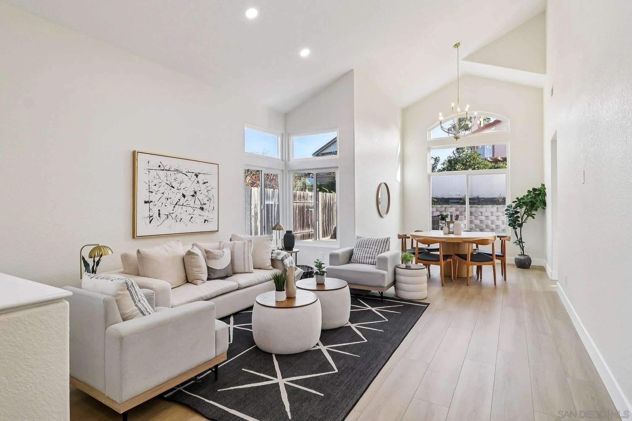 Beautifully remodeled and truly move-in ready, this stunning Chula Vista home offers modern finishes, thoughtful upgrades, and an ideal location close to it all. Featuring a rare 3-car garage, this home provides ample space for parking, storage, or hobbies. Inside, enjoy a bright, clean aesthetic with crisp white walls, oversized white baseboards, and gorgeous new vinyl wood flooring throughout. The fully updated kitchen is a showstopper, featuring bright white cabinetry, white quartz countertops, brand-new stainless steel appliances, and a large center island with elegant brushed gold fixtures, perfectly open to the living space for effortless entertaining. The main level also features a sought-after downstairs bedroom, offering the perfect setup for a home office, guest room, or multi-generational living. The adjacent living room is warm and inviting with a beautiful fireplace, while the completely remodeled bathrooms feature white vanities, brushed gold finishes, and neutral, spa-inspired tile work. Step outside to a private backyard, ideal for hosting gatherings or enjoying quiet evenings at home. Conveniently located near popular shopping centers, dining, parks, and schools, with easy access to major freeways for a smooth commute throughout San Diego County. This turnkey home combines style, comfort, and location-an opportunity not to be missed.