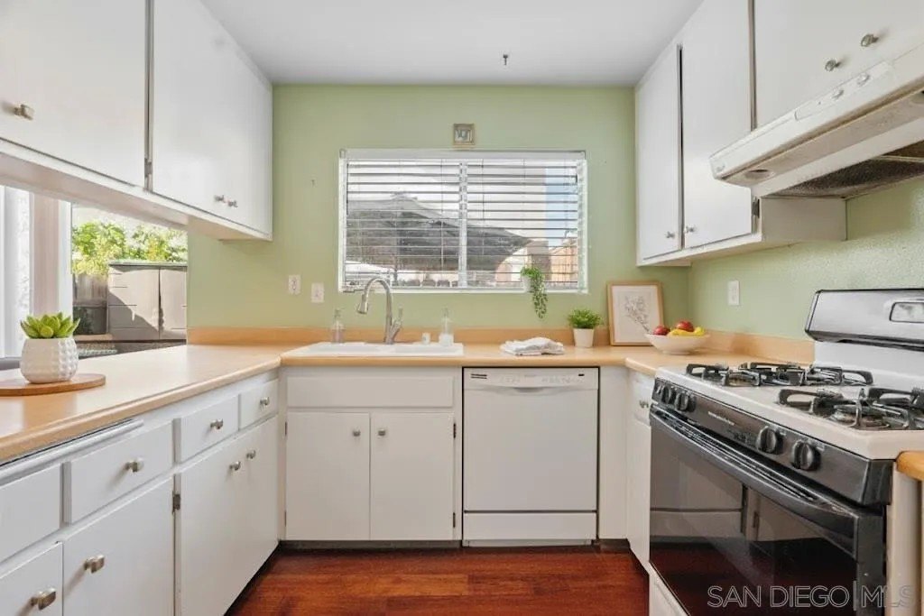 Welcome to this inviting 2-bedroom, 1.5-bath condo offering 928 sq. ft. of comfortable living space. The kitchen includes ample cabinet space with easy access to the private patio - ideal for morning coffee or evening gatherings. Upstairs, you'll find two spacious bedrooms and a full bath, providing plenty of room to unwind. TWO PARKING SPACES, one under carport with storage, IN-UNIT laundry, and close access to the community pool and spa for year-round relaxation. Located in a well-maintained community close to shopping, dining, and commuter routes, this home combines comfort and convenience in one great package. Perfect for first-time buyers or investors - don't miss this one! *Virtual Staging* *Storage on patio to convey with property*