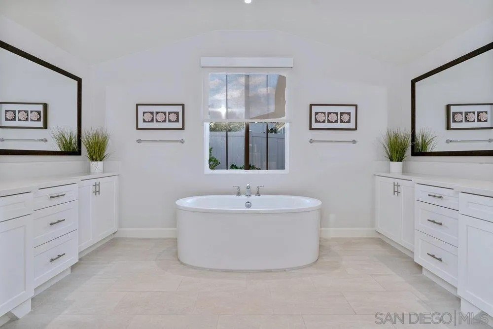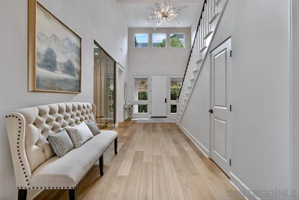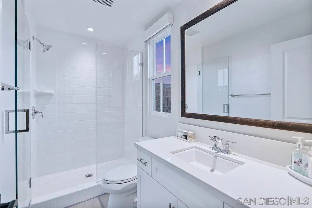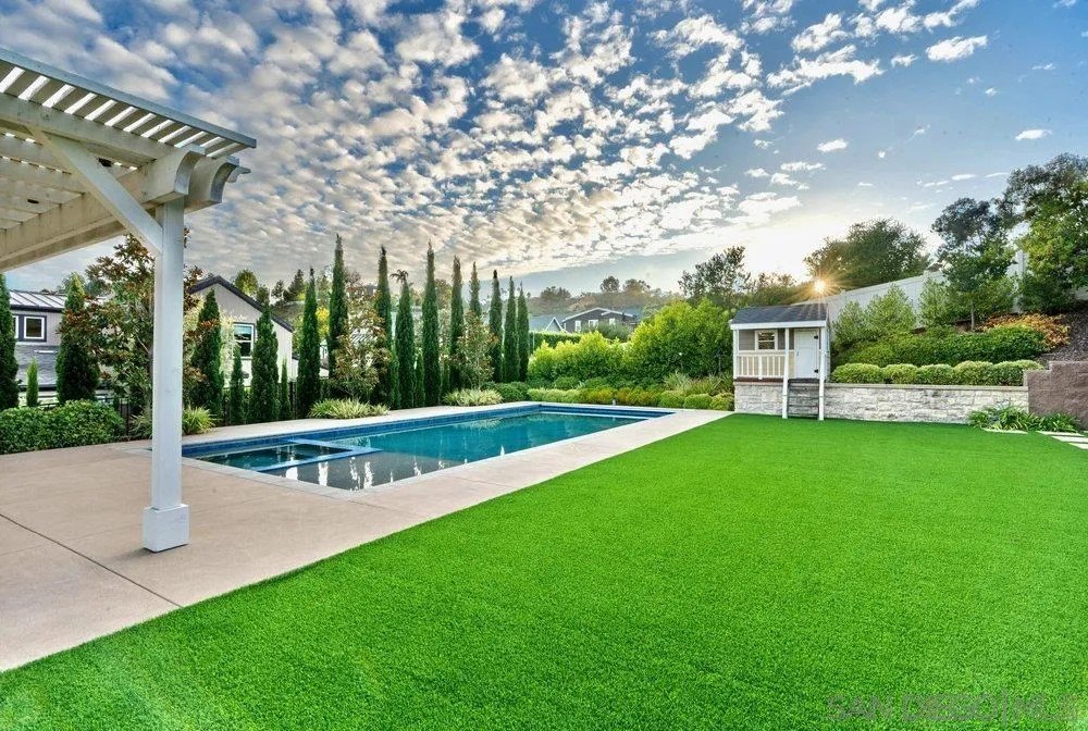 Welcome to 1259 Berryman, a modern coastal retreat in The Enclave, a private community of only 19 distinguished homes in Encinitas. Ideally located minutes to beaches, downtown, shopping, and dining, this property offers privacy and convenience. Set on a flat, 0.51-acre lot, the home features seamless indoor/outdoor living with a south-facing backyard that includes a pool & spa with automatic cover, putting green, outdoor shower, covered kitchen with BBQ + Green Egg grill, fireplace, TV, and a charming playhouse. The 5BR/5.5BA floor plan lives like a single level with dual primary suites-one on the main level and another upstairs-plus an attached ADU with private entry, kitchen, bedroom, and family room. Interiors are enhanced with over $175K in custom lighting, a La Cantina screen door, temperature-controlled wine room, and designer finishes throughout. Additional upgrades include Thermador appliances, Lutron lighting controls, motorized shades, custom drapery, soundproof windows, epoxy garage with EV rough-in, owned solar, and full smart-home integration. A rare blend of coastal convenience, thoughtful design, and resort-style amenities.