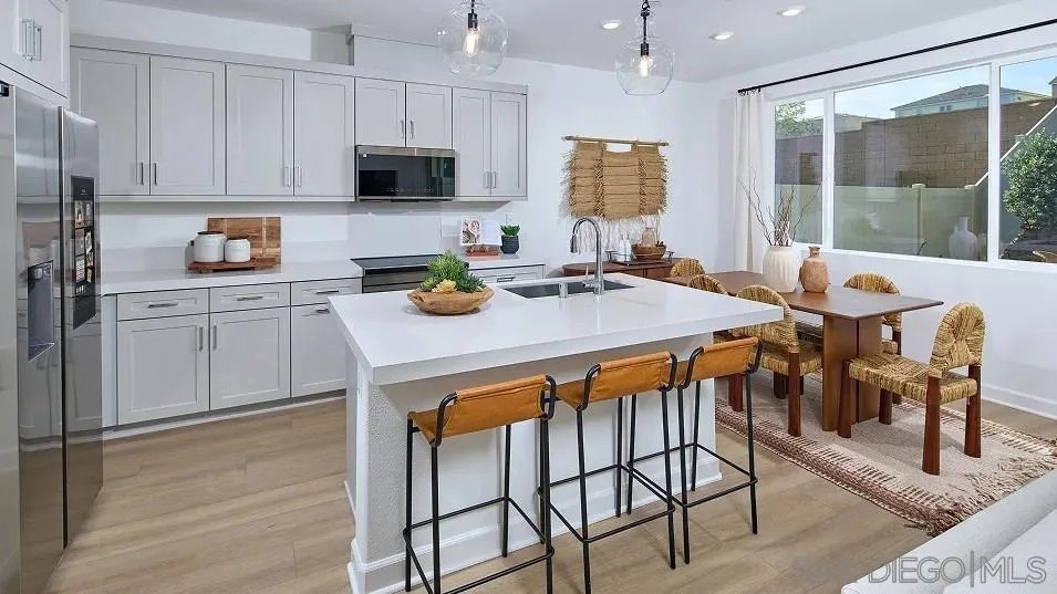 This new two-story paired home boasts a modern layout with an inviting open-concept floorplan on the first level, helping to simplify everyday transitions and multitasking. A nearby patio offers seamless outdoor entertainment and leisure. Four bedrooms make up the second floor, including the luxurious owner's suite with a spa-inspired bathroom and walk-in closet. A two-bay garage completes the home. Anden at Escaya is a new community offering brand-new paired homes for sale, coming soon to Chula Vista, CA. The community offers onsite amenities, including a relaxing swimming pool, park, clubhouse and more.